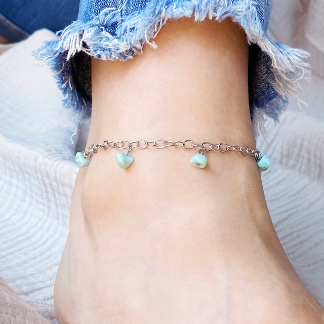〈サージカルステンレス〉天然石 ラリマー アンクレット