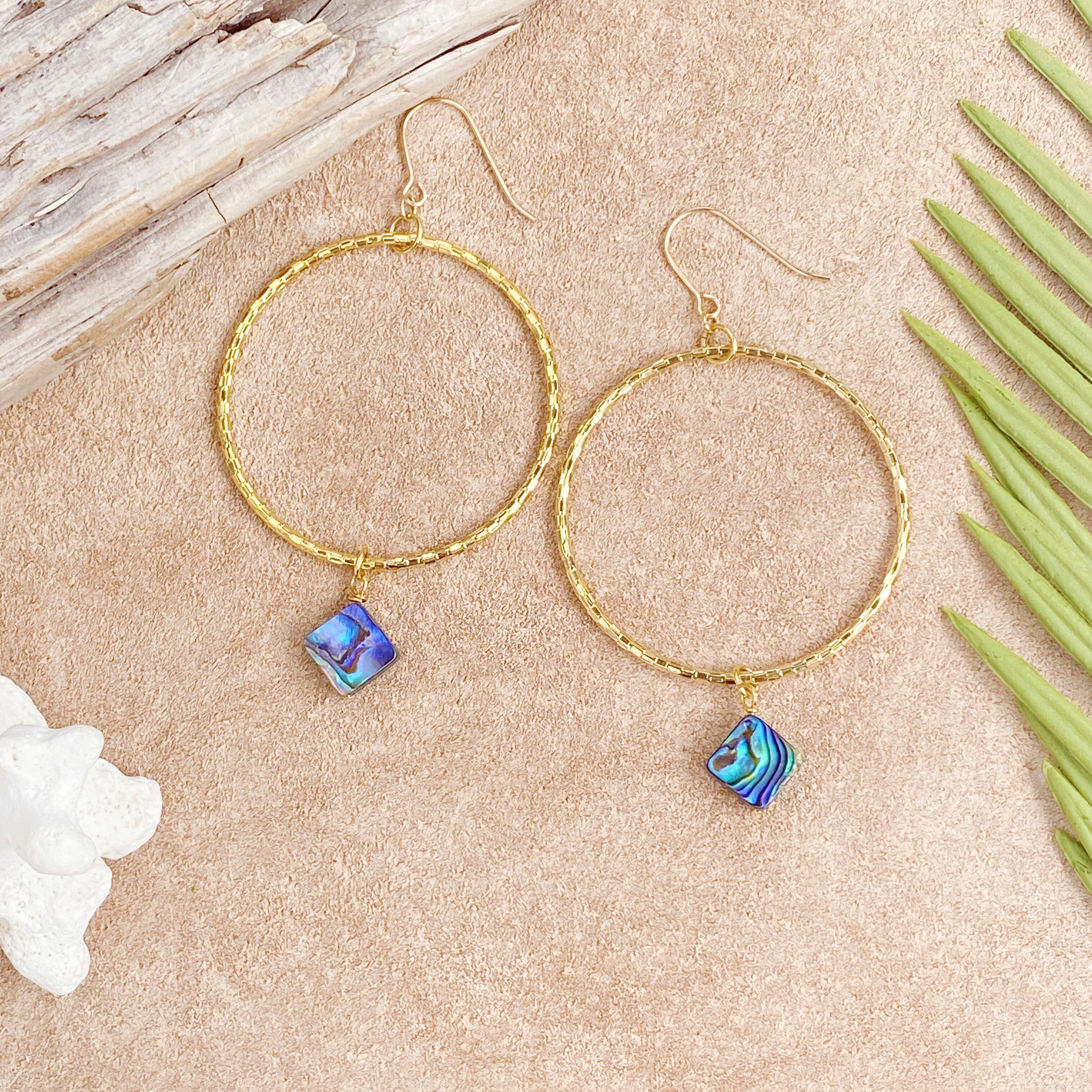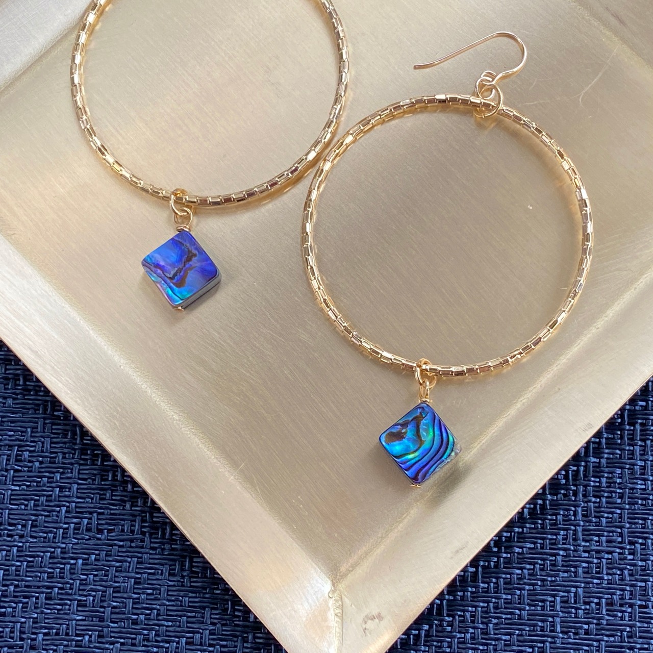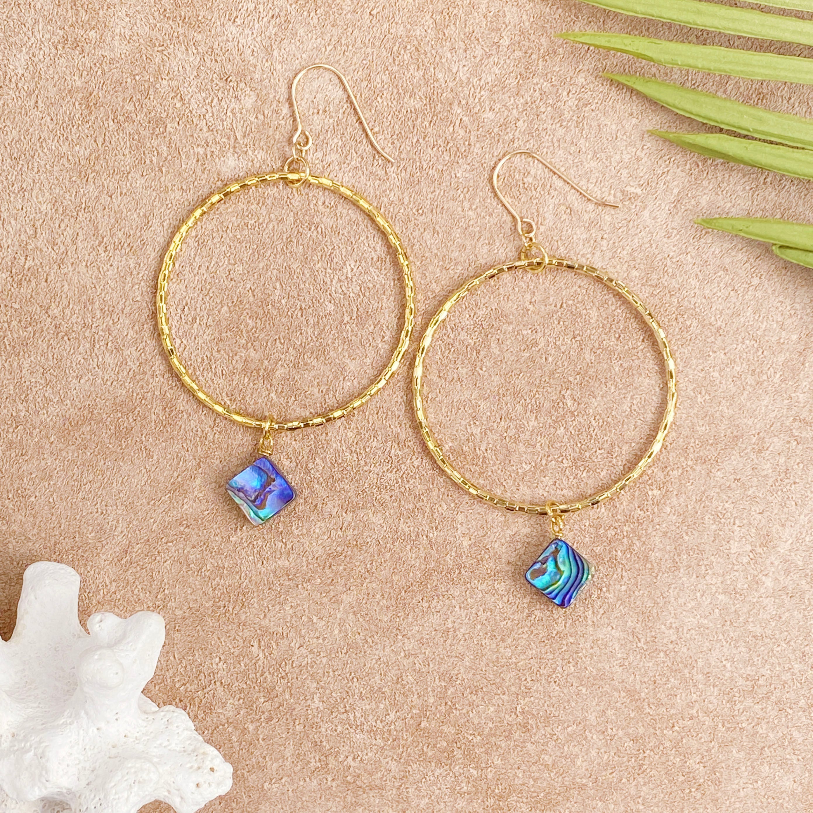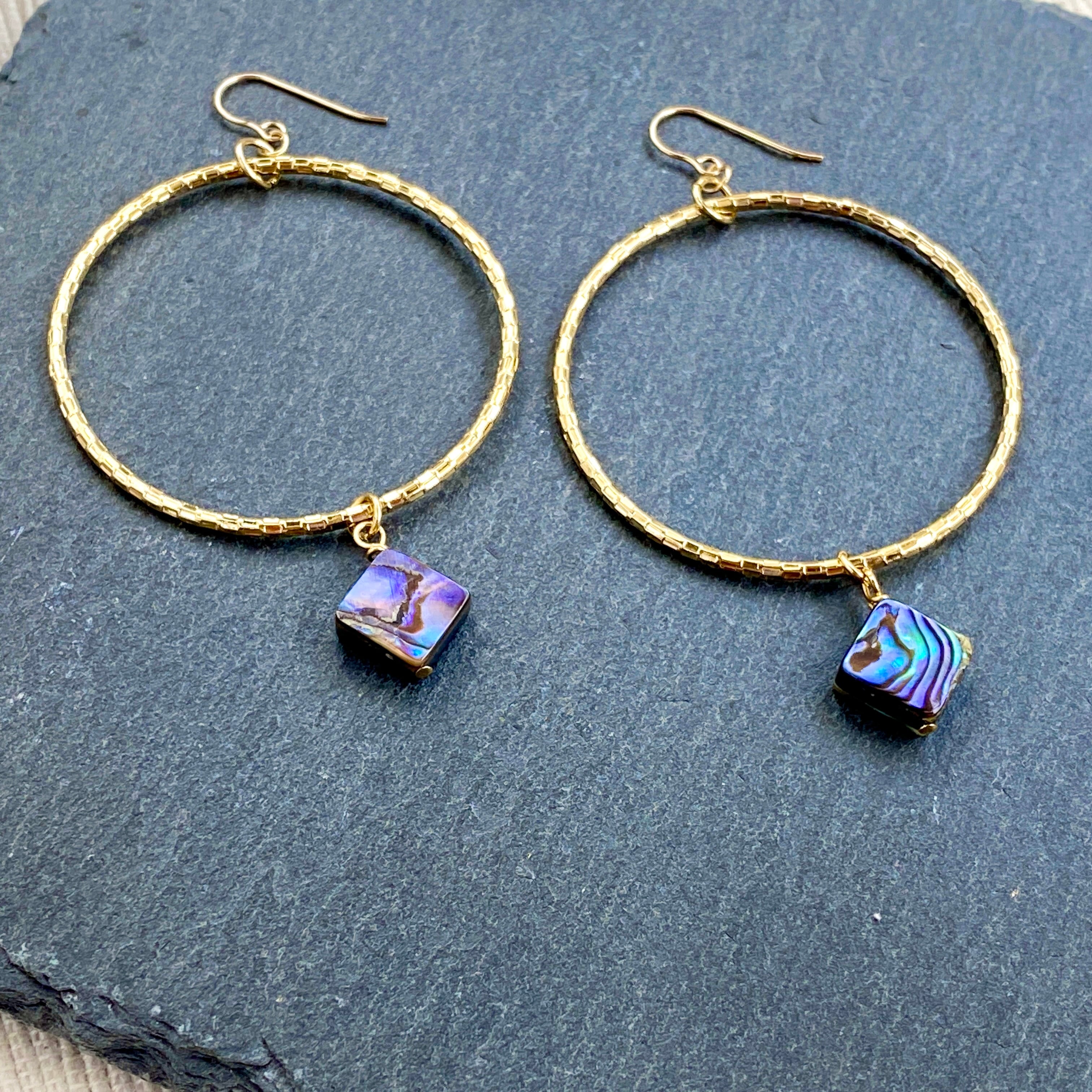 アバロンシェル(パウア貝)と大きめデザインフープのピアス