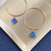 光を拾うデザインフープと七色に輝くシェルの組み合わせで、シンプルなデザインの中にも華やかさがあります。