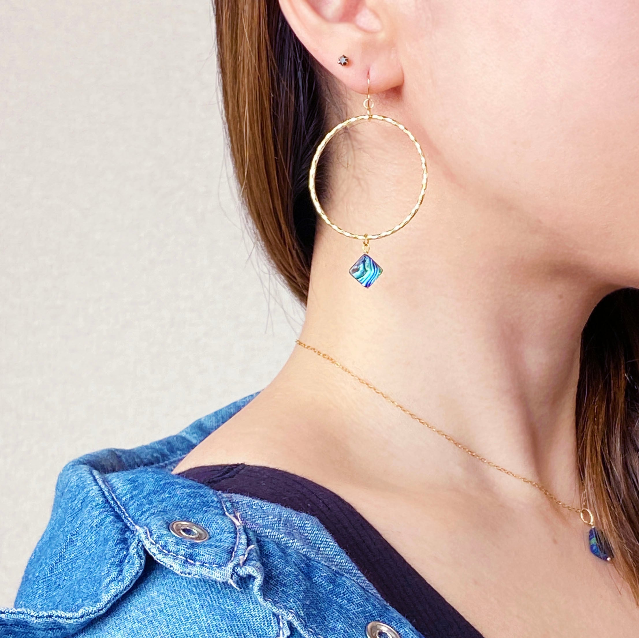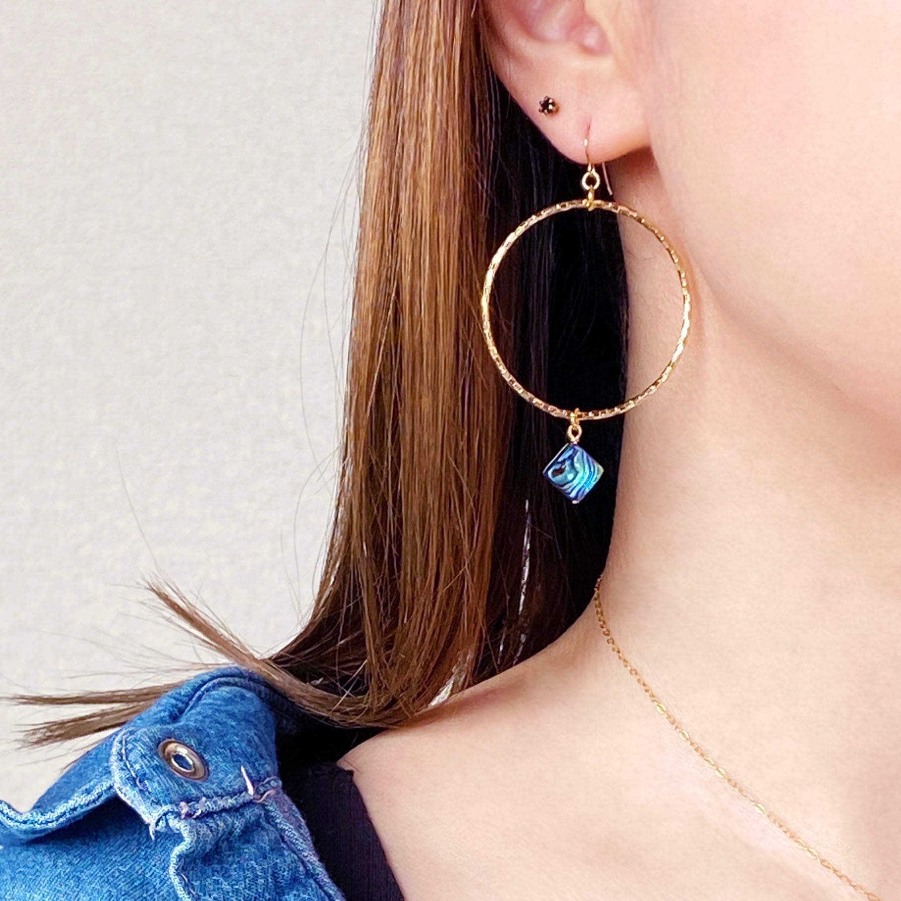14kgf アバロンシェル × デザインフープ (ピアス / イヤリング)