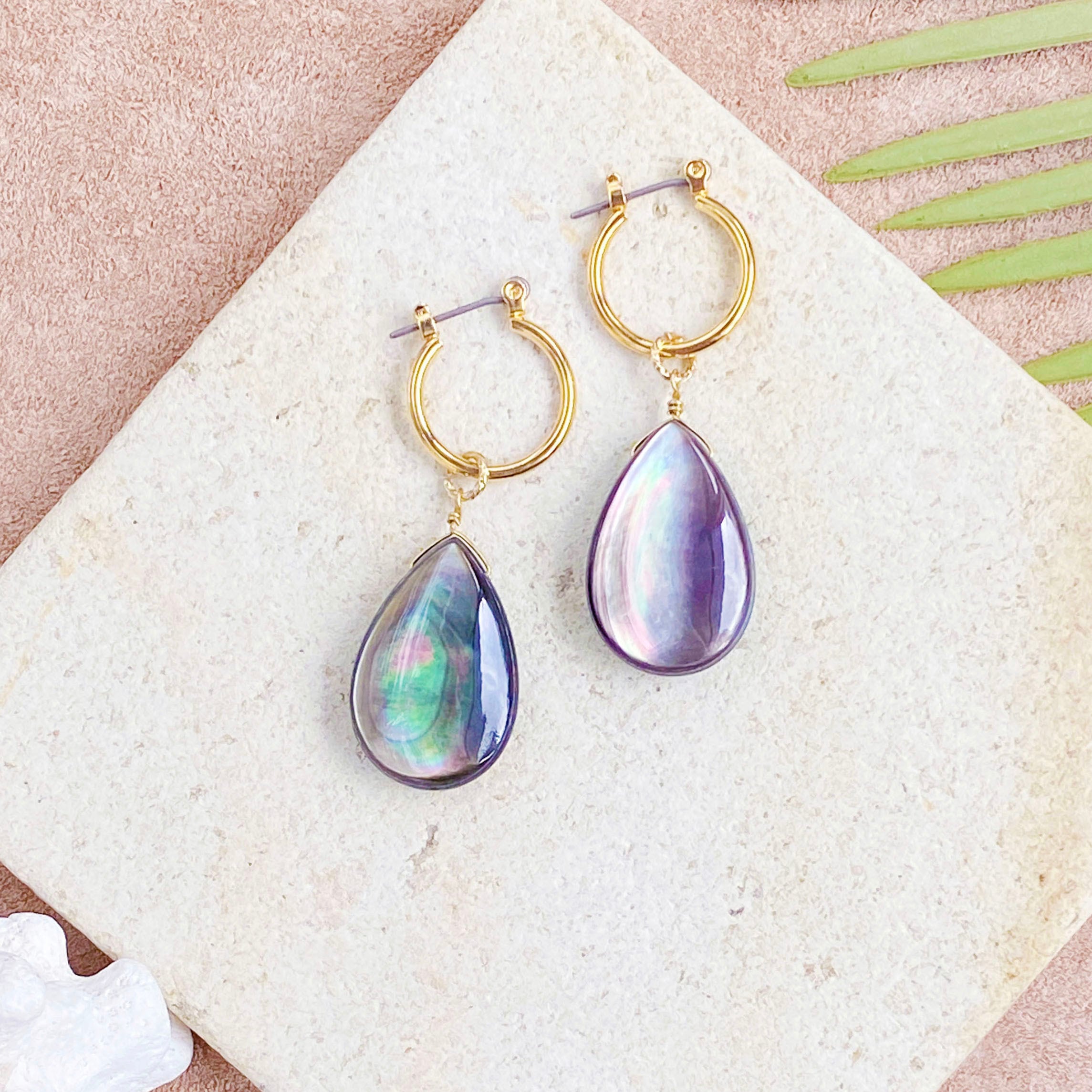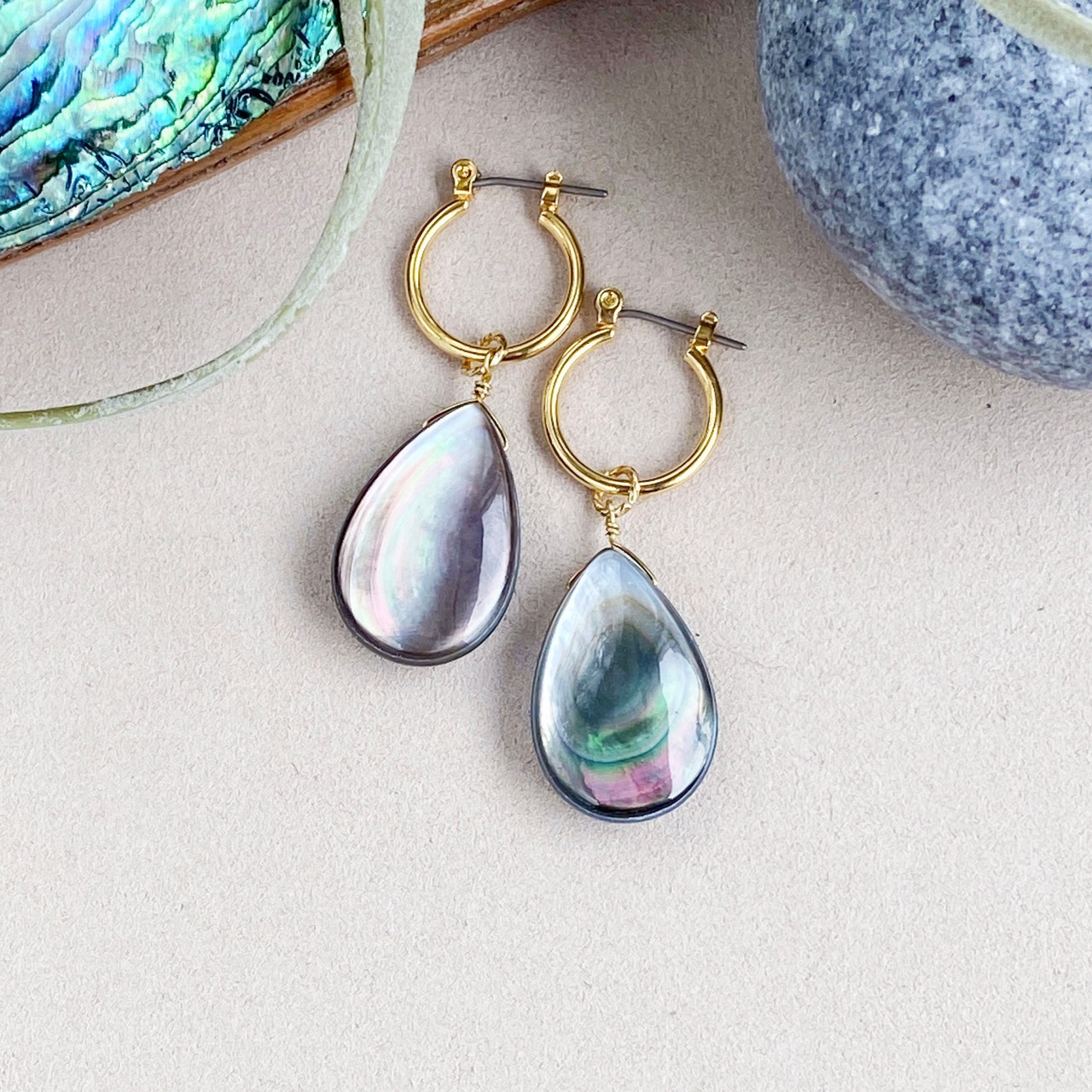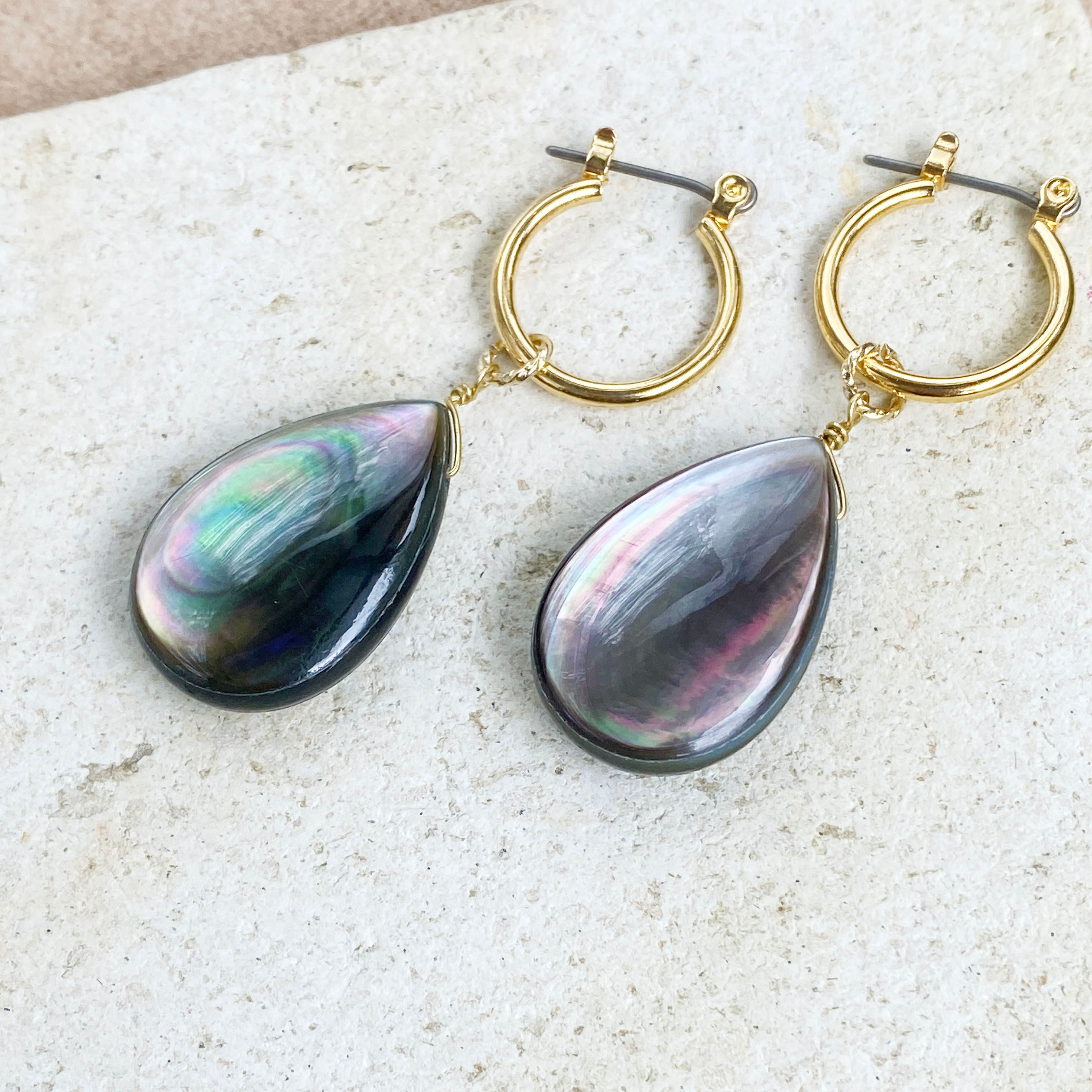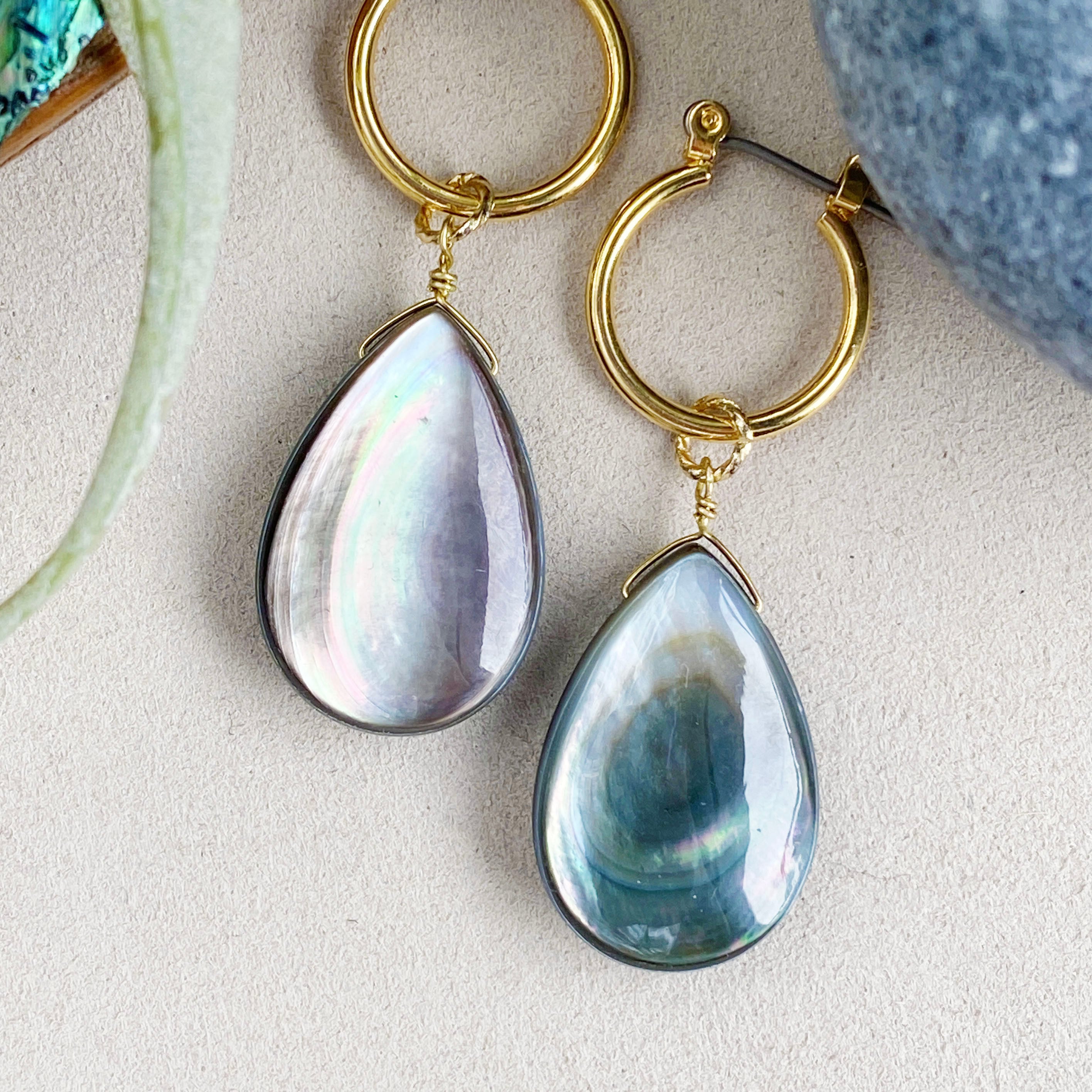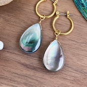 大粒ブラックシェル(黒蝶貝)のフープピアス / イヤリング