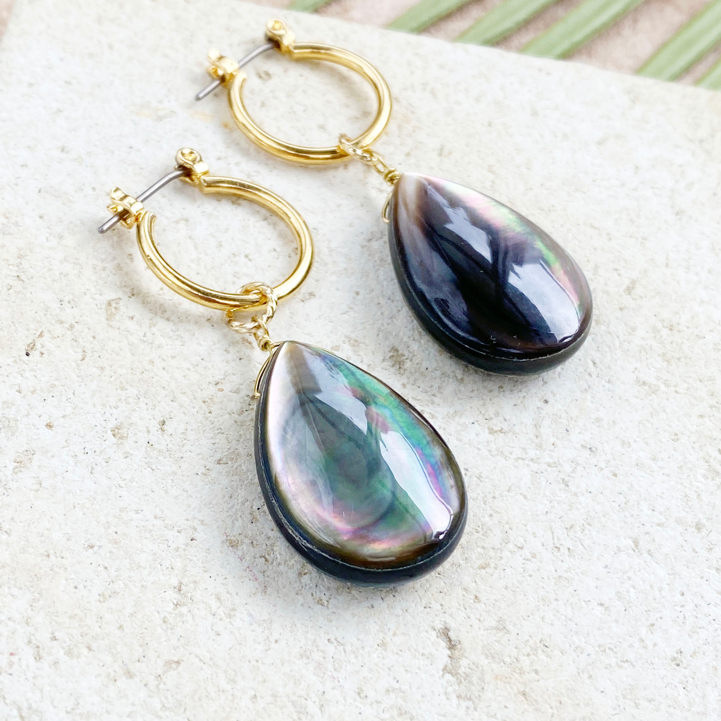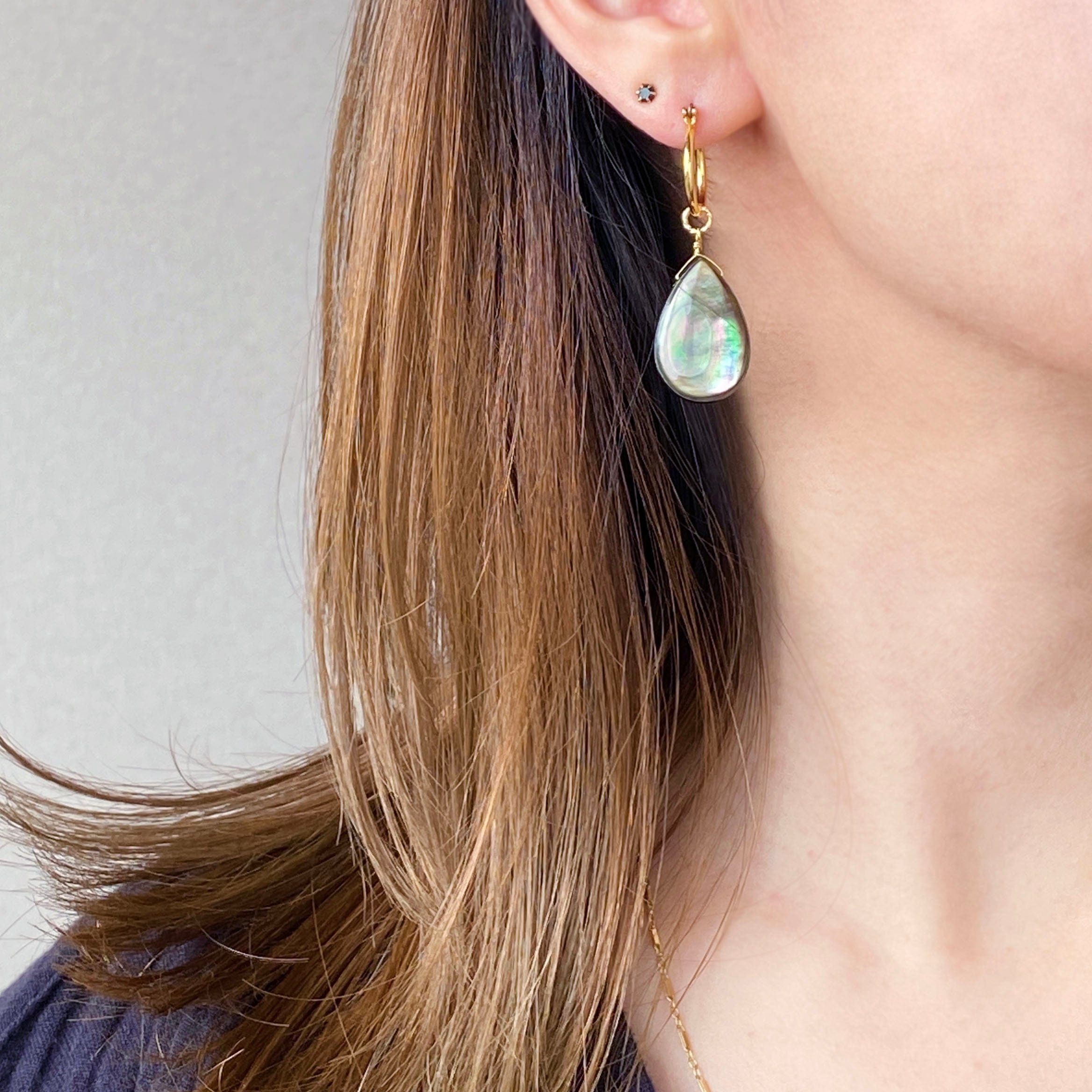 高級ブラックシェル(黒蝶貝)のティアドロップ型 ピアス / イヤリングです。