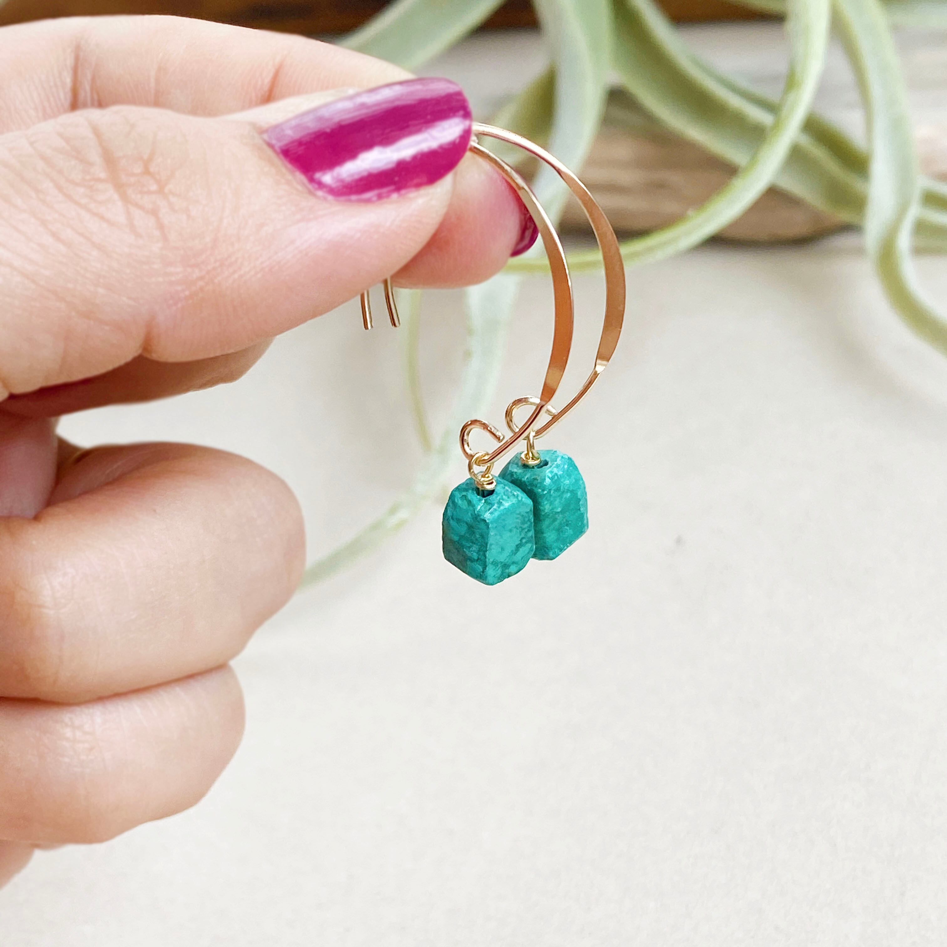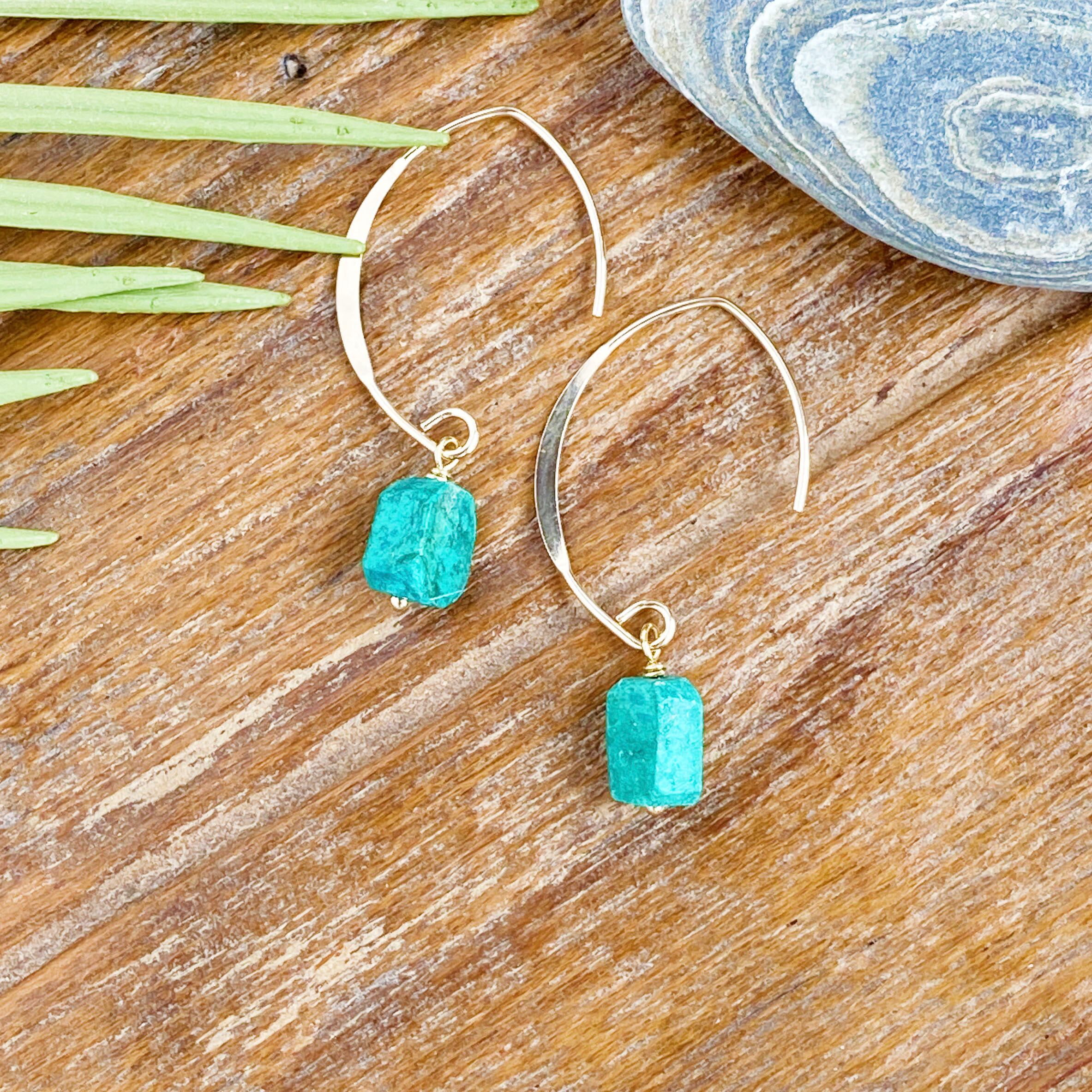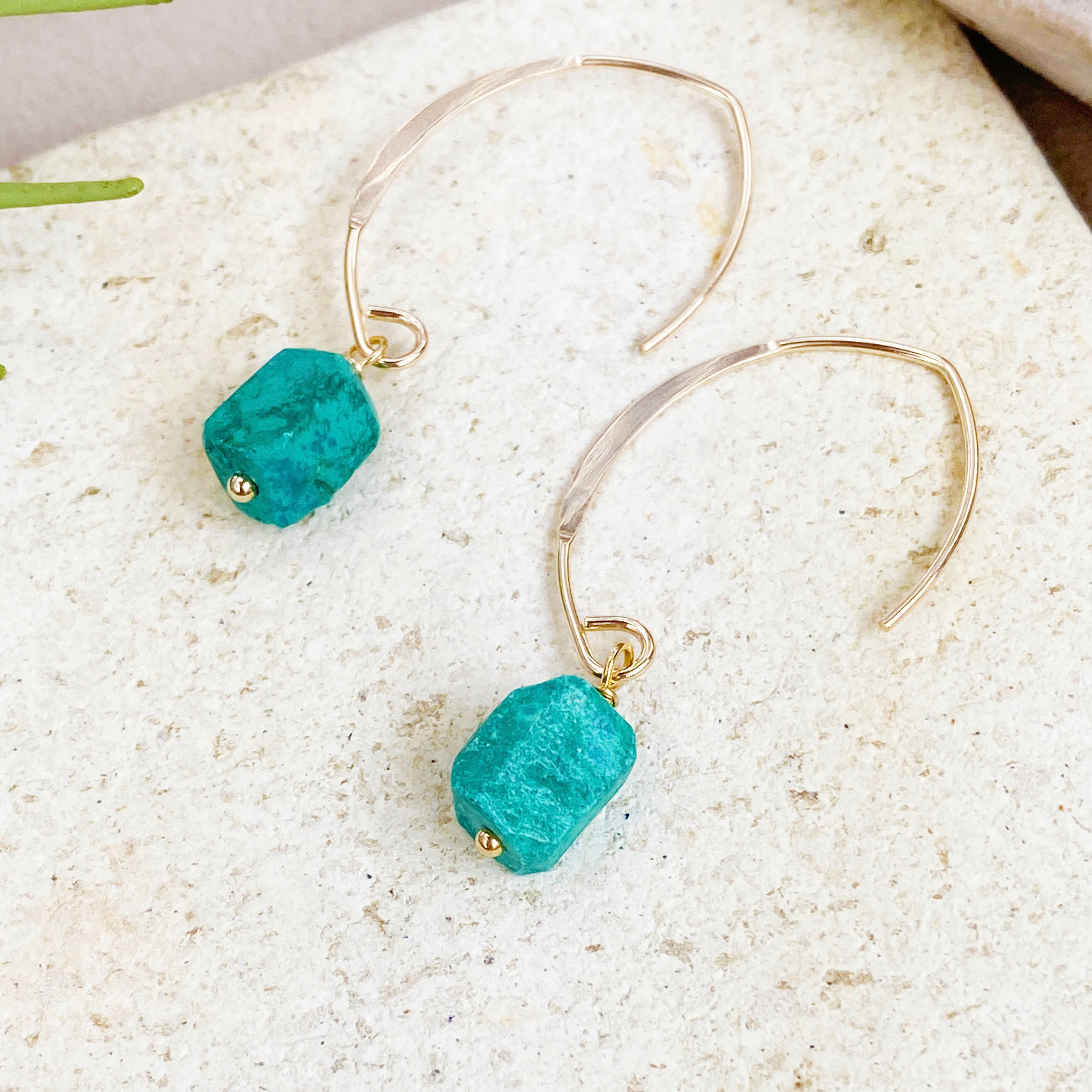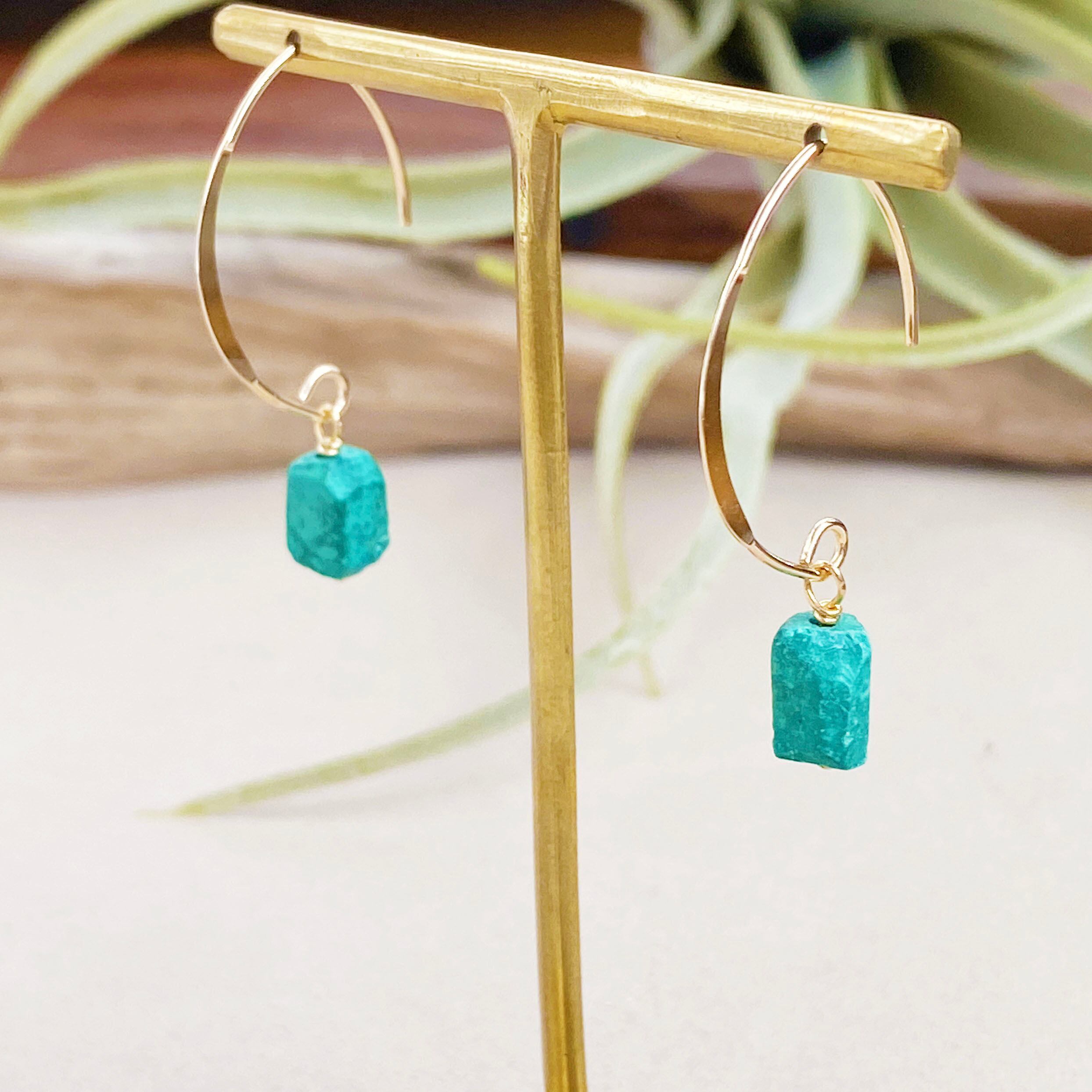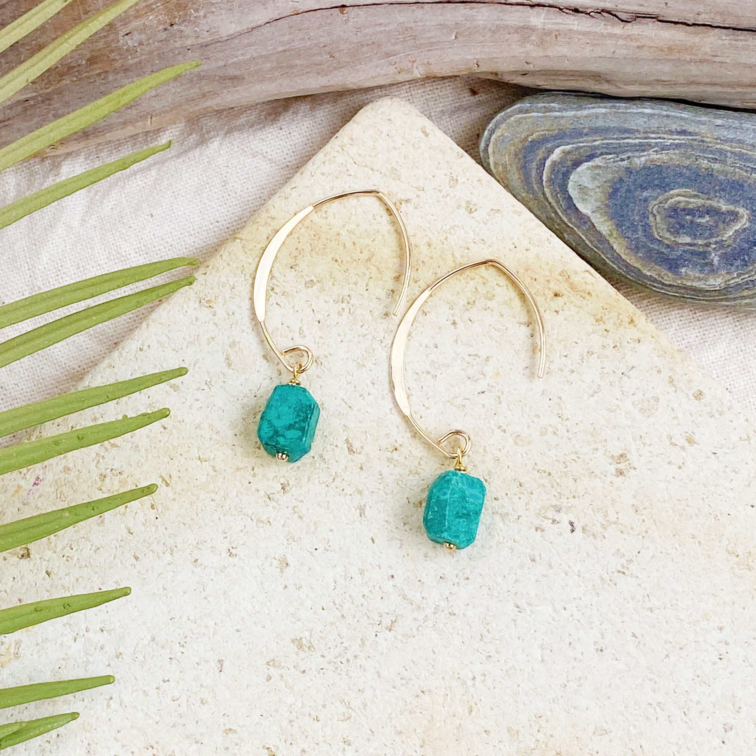 ペルー産クリソコラと縦長シルエットが美しいマーキスピアスフックの組み合わせです。