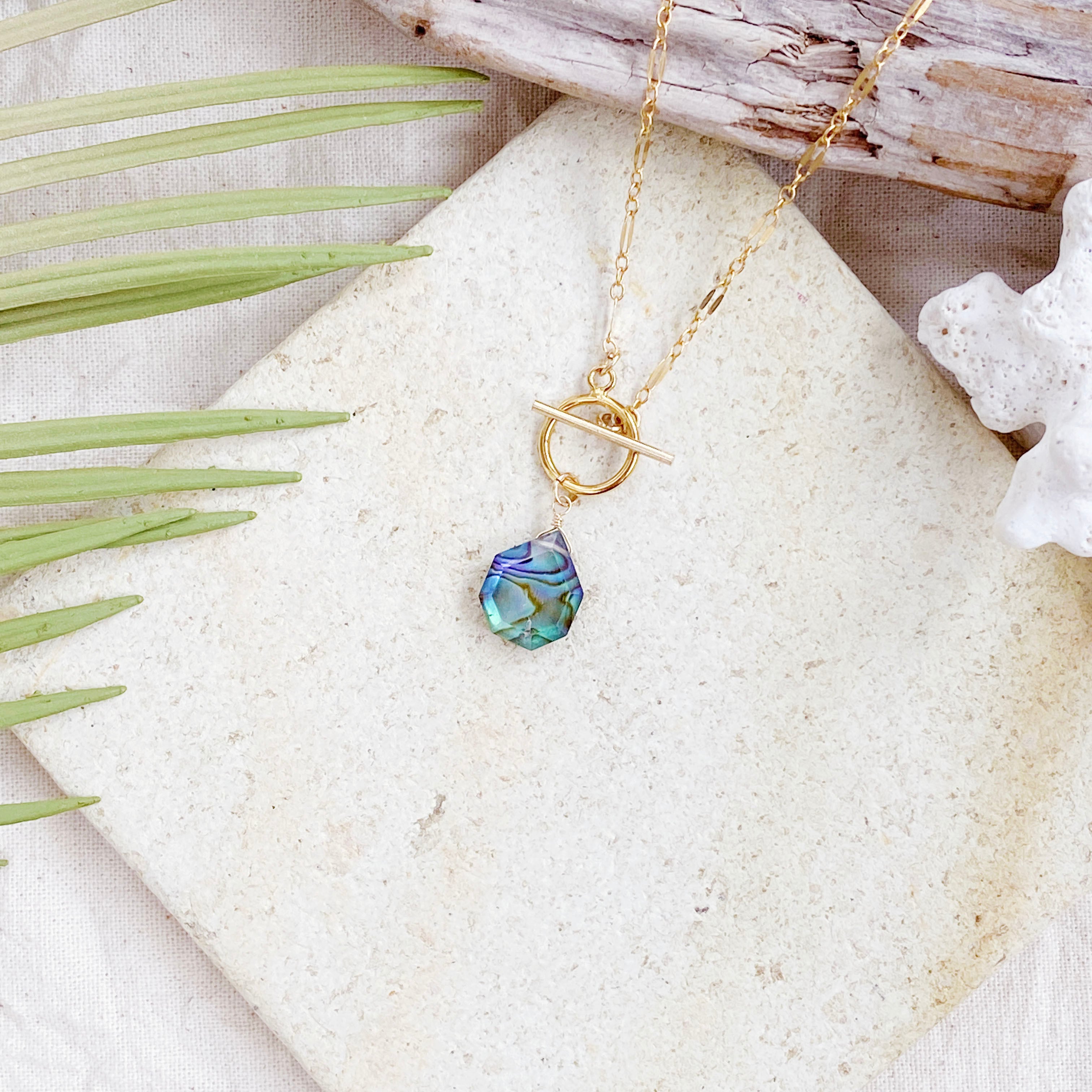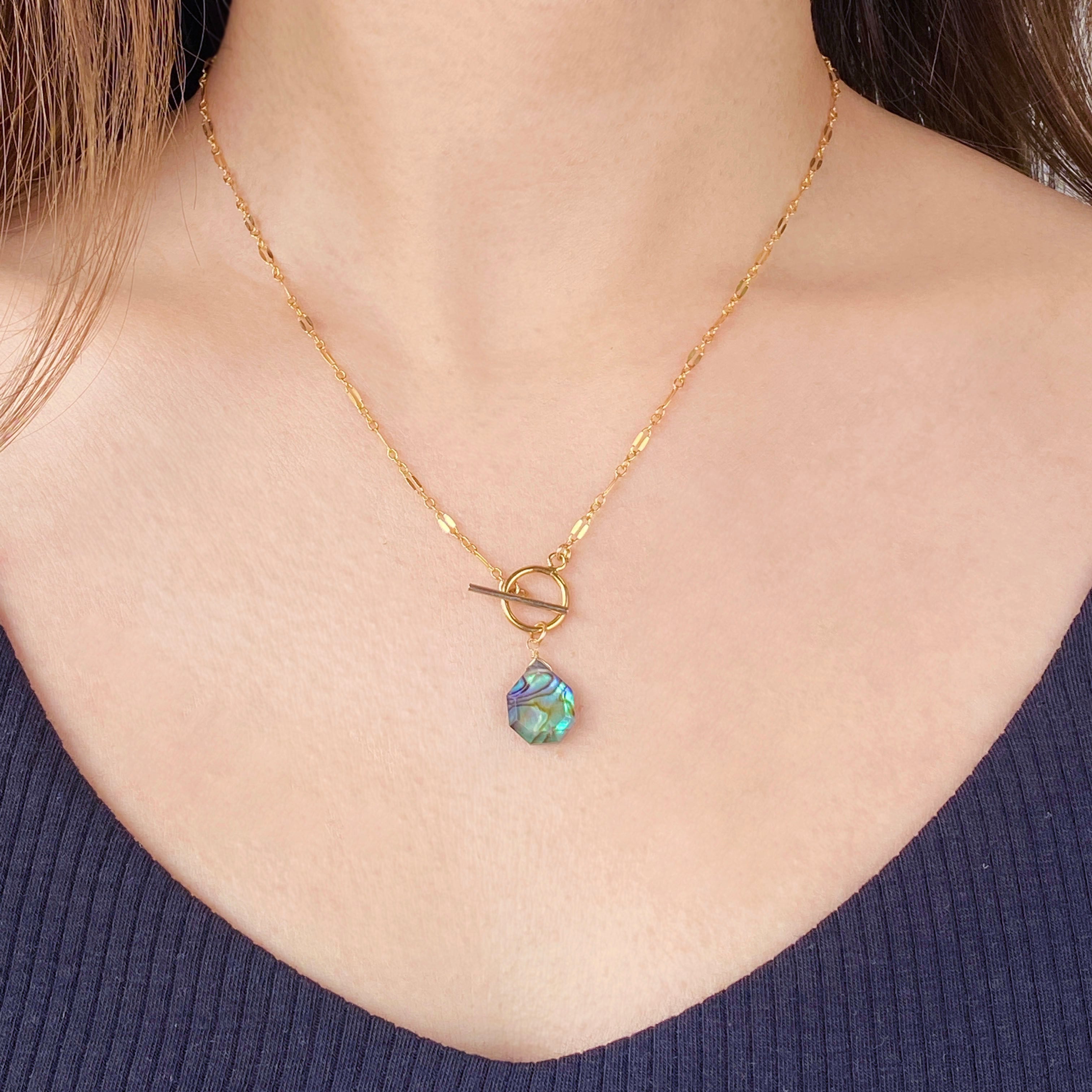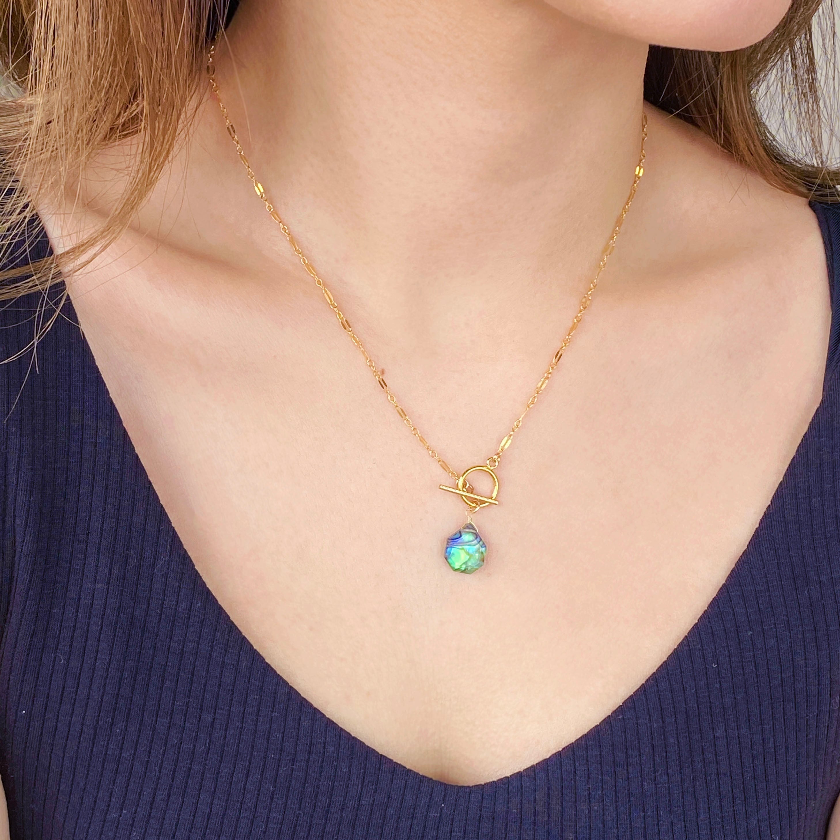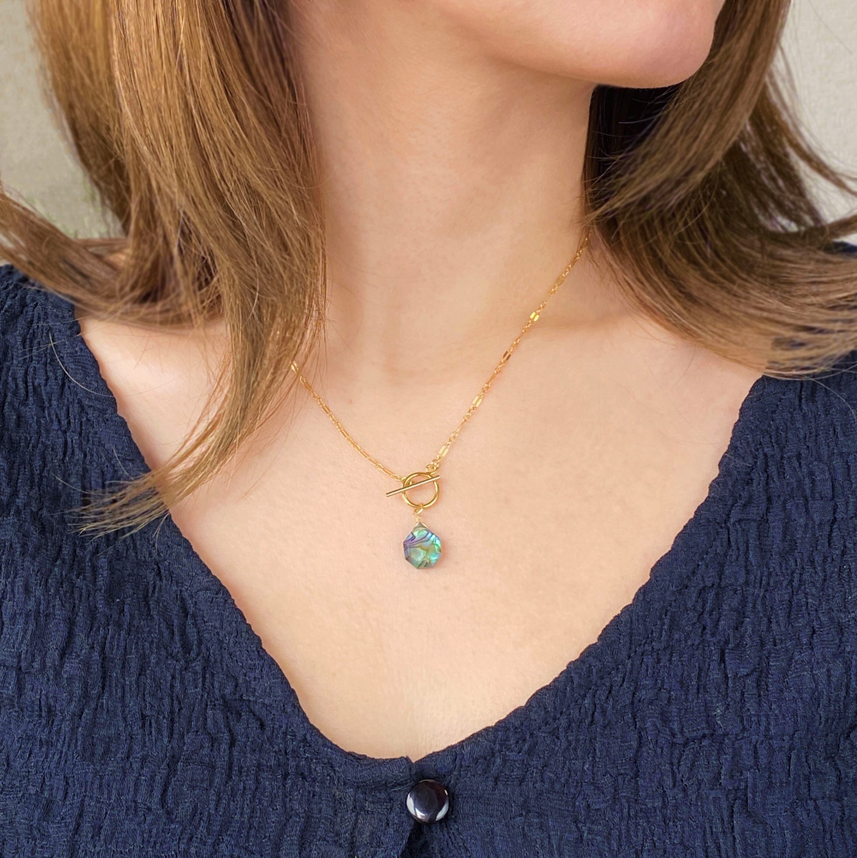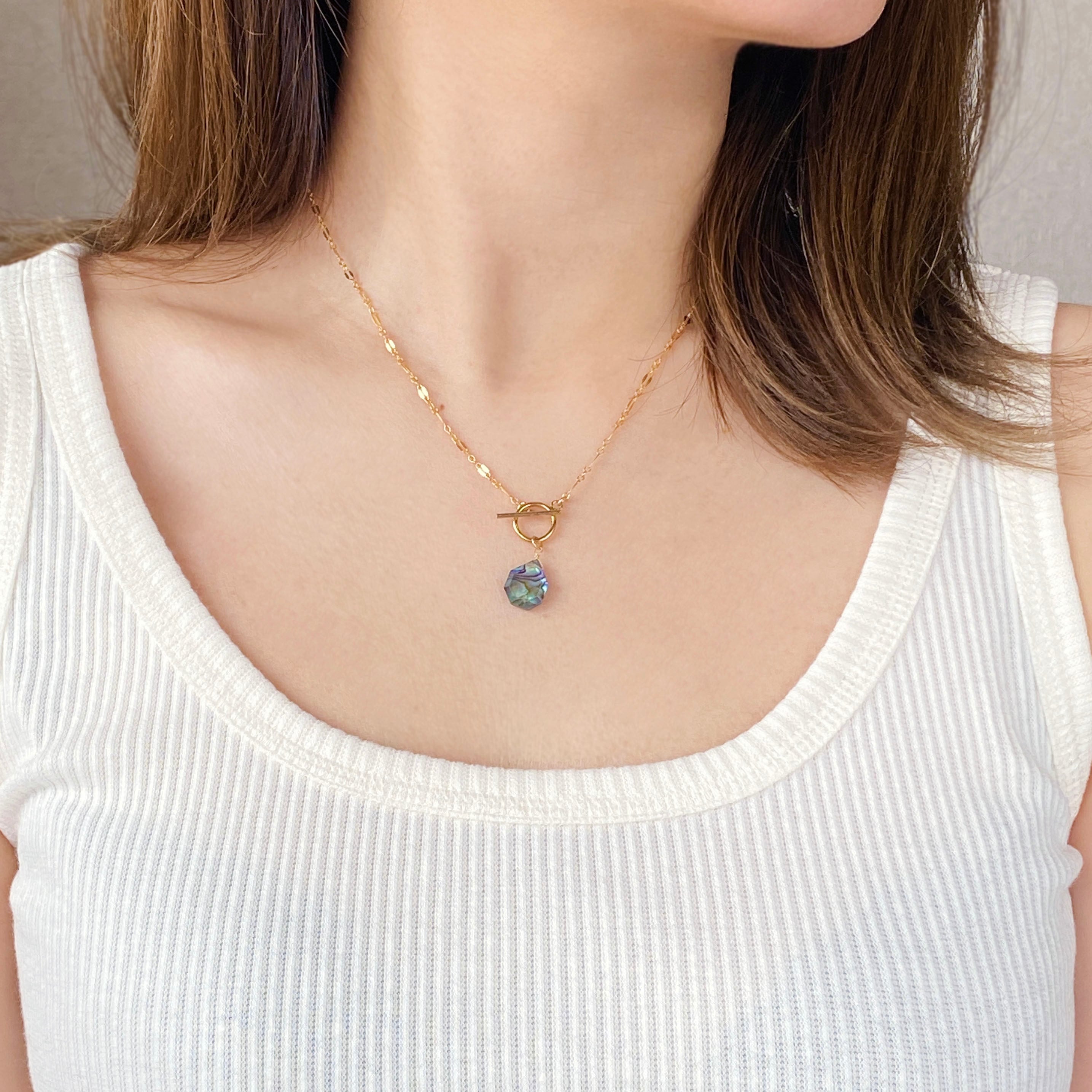 14kgf アバロンシェル × クリスタル マンテルネックレス
