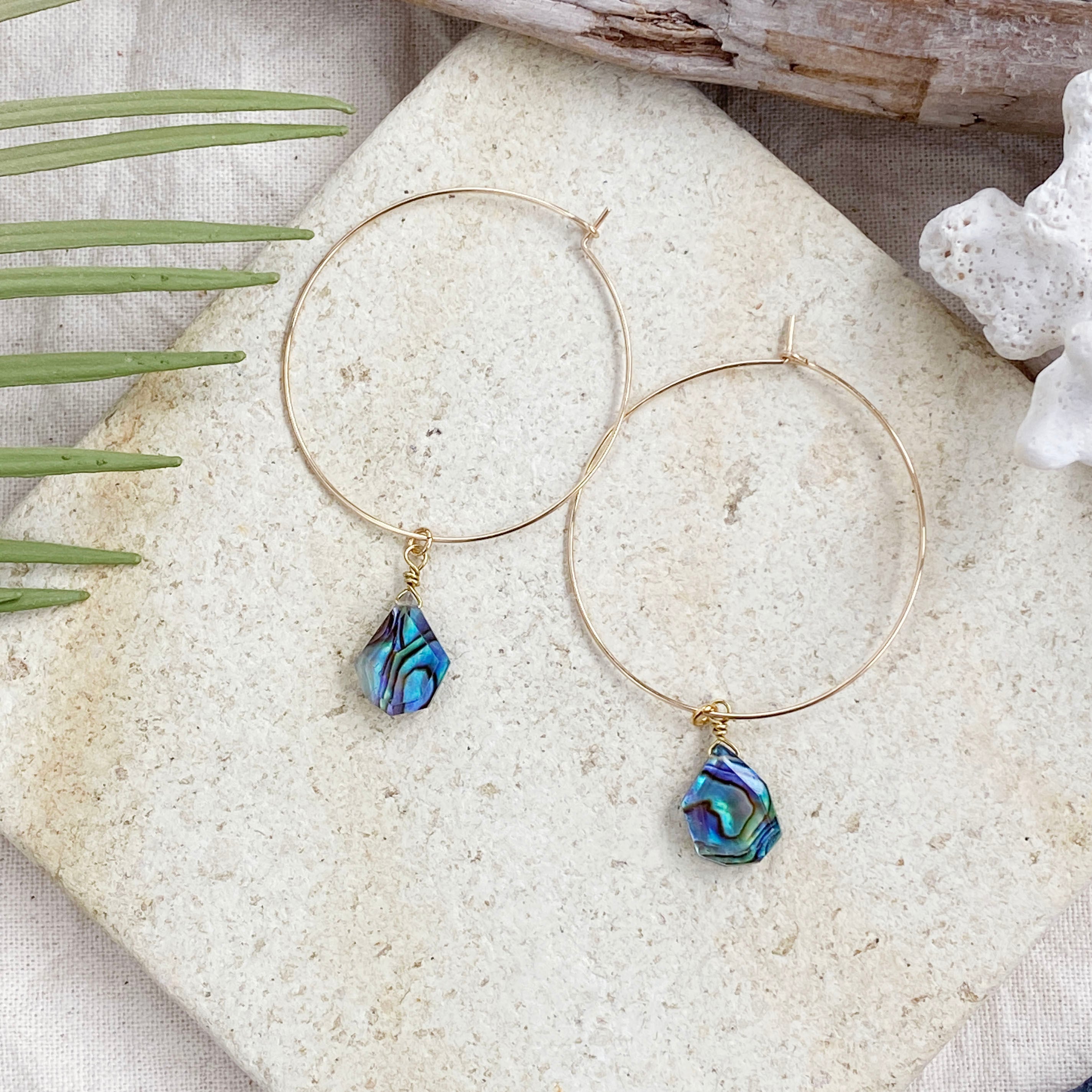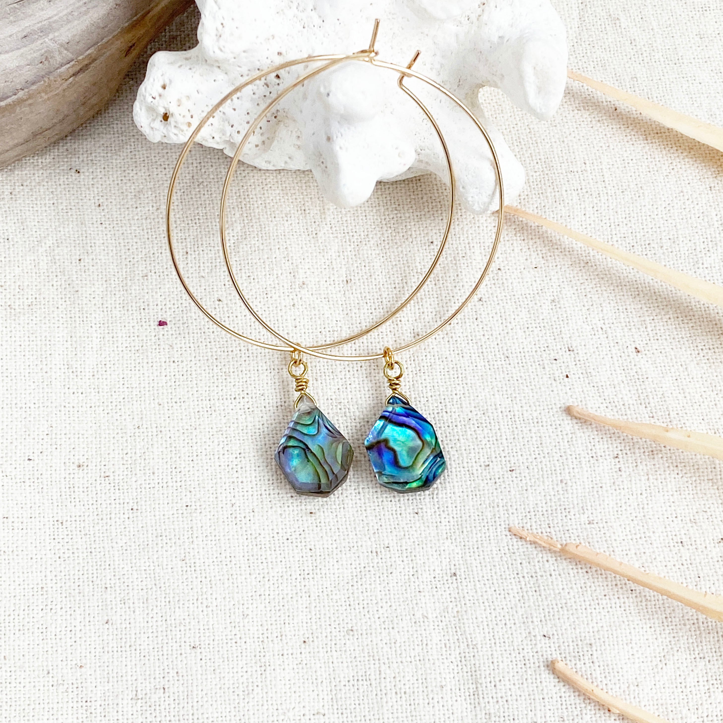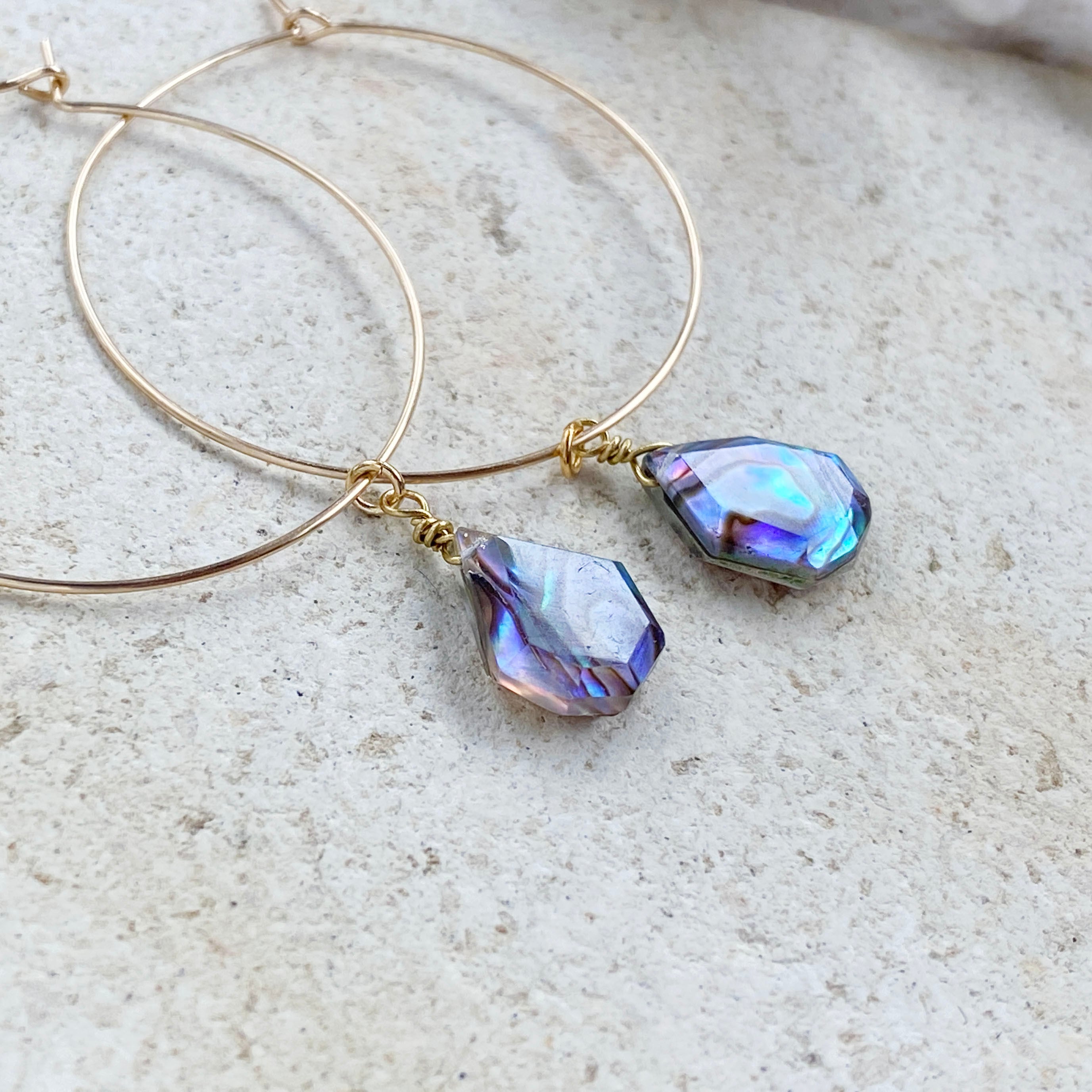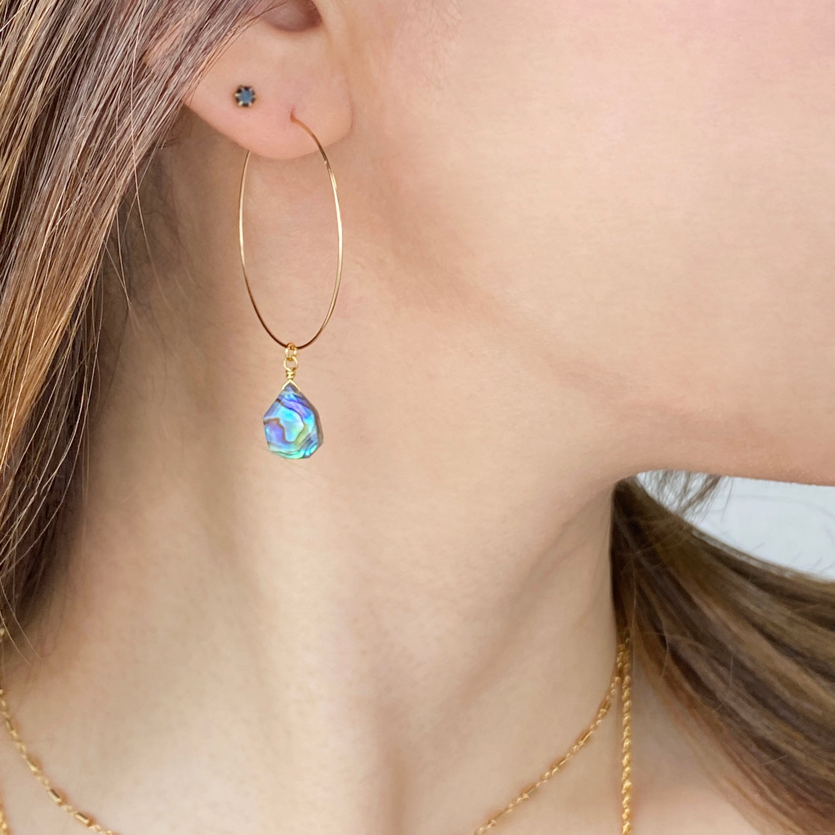 14kgf アバロンシェル × クリスタル フープピアス / イヤリング