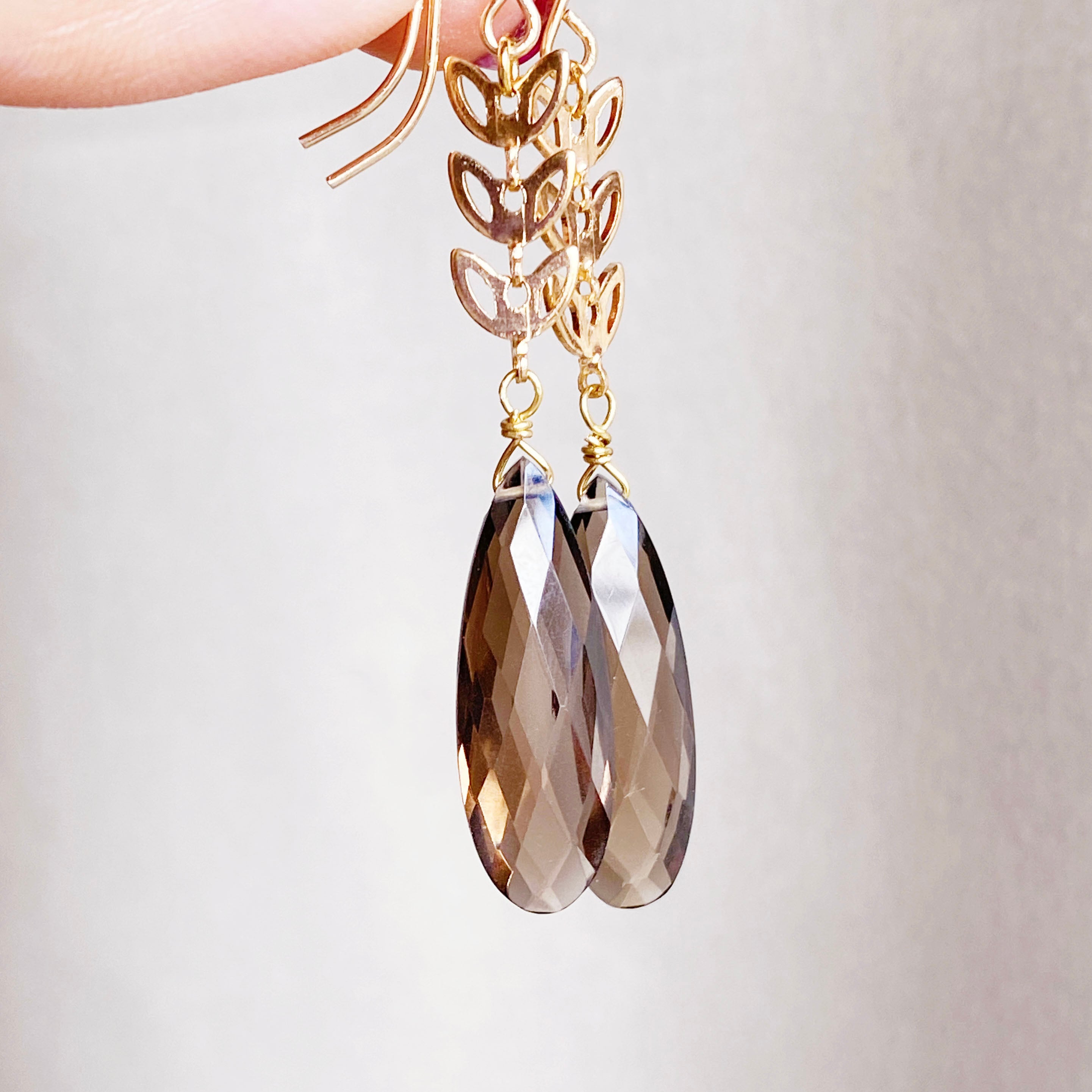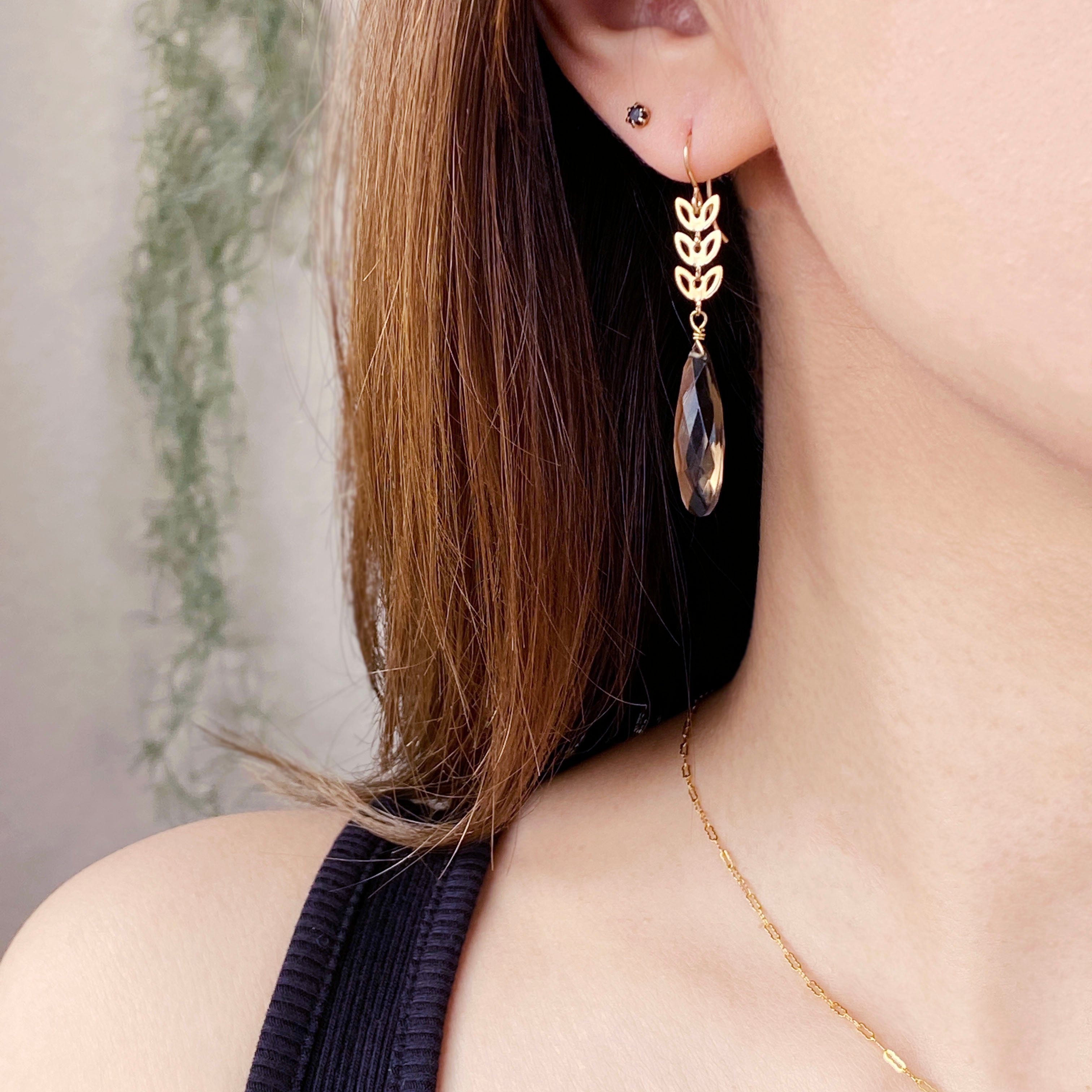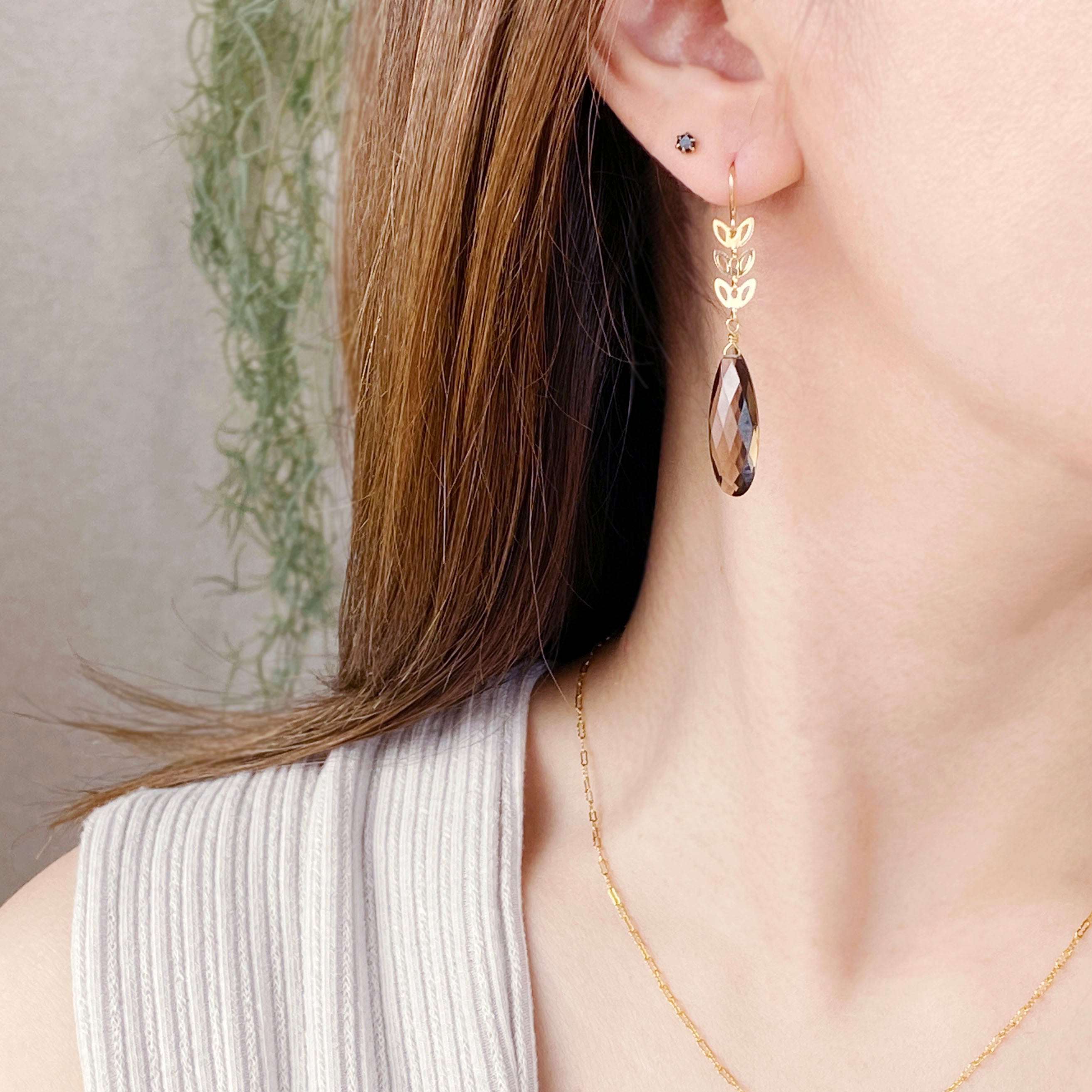 14kgf 天然石 スモーキークォーツ ロングペアシェイプ (ピアス / イヤリング)