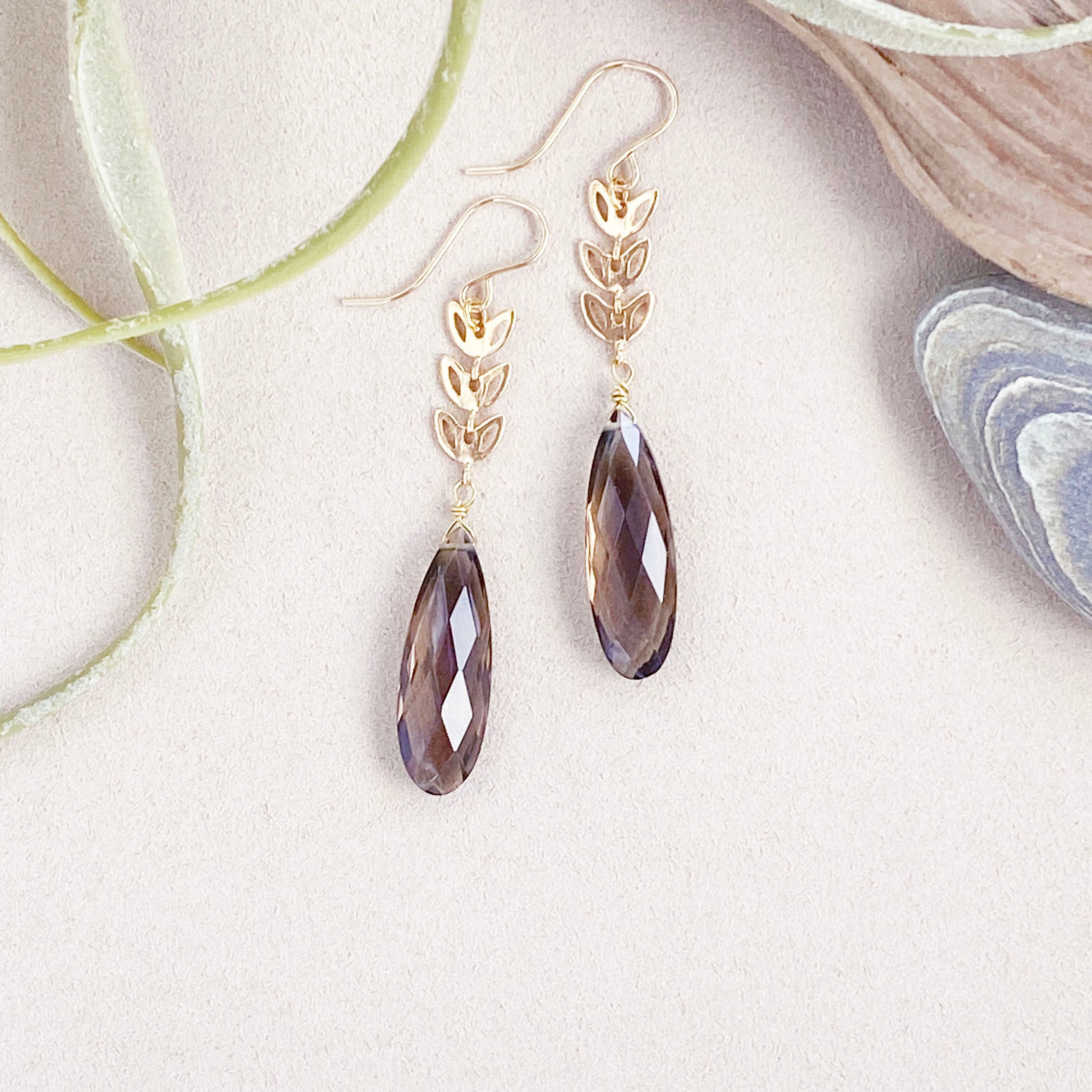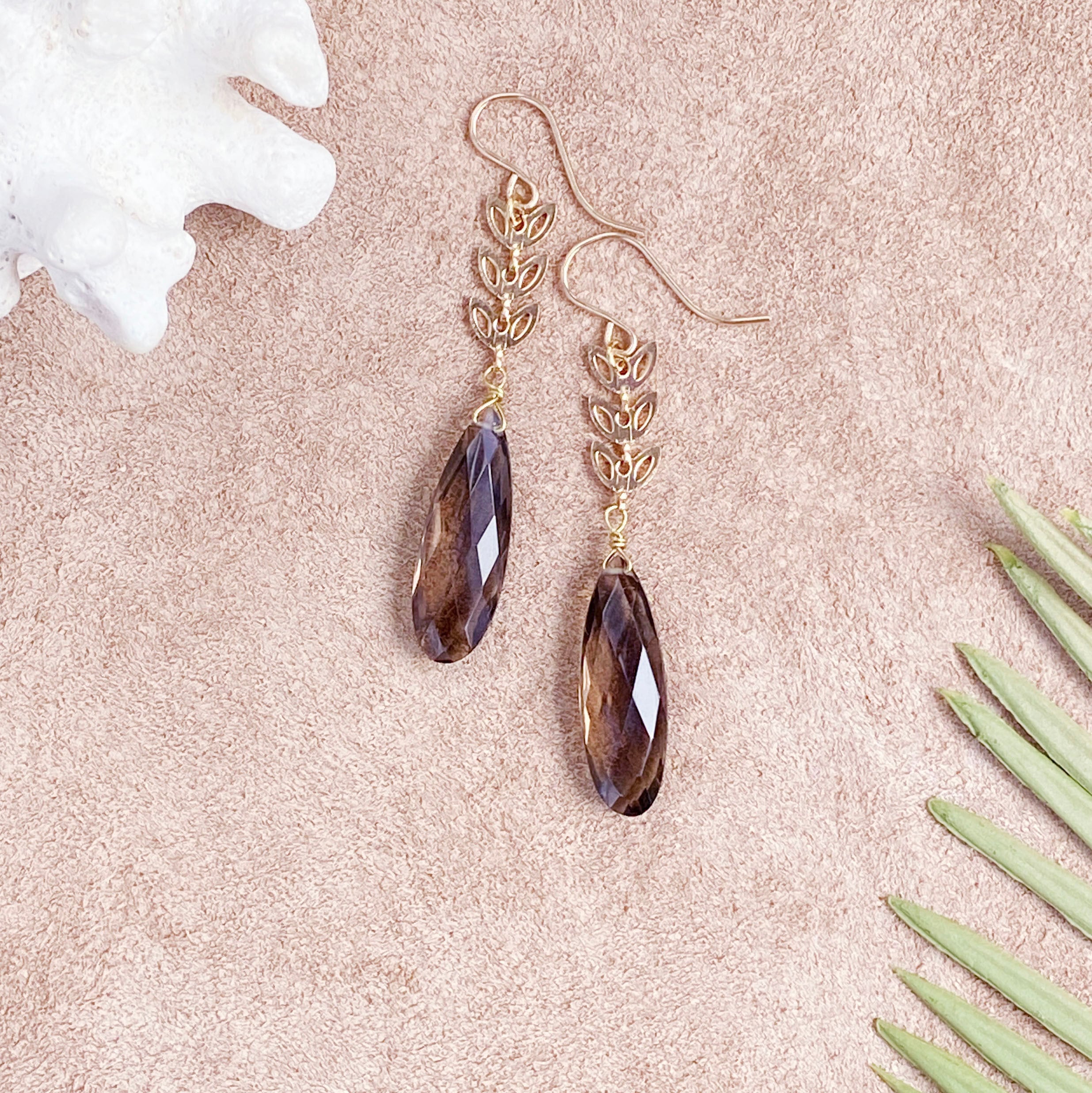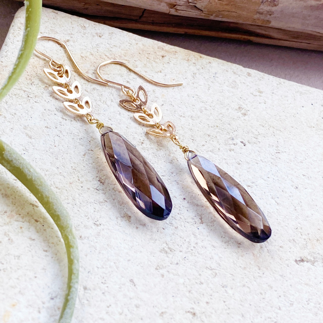 14kgf 天然石 スモーキークォーツ ロングペアシェイプ (ピアス / イヤリング)