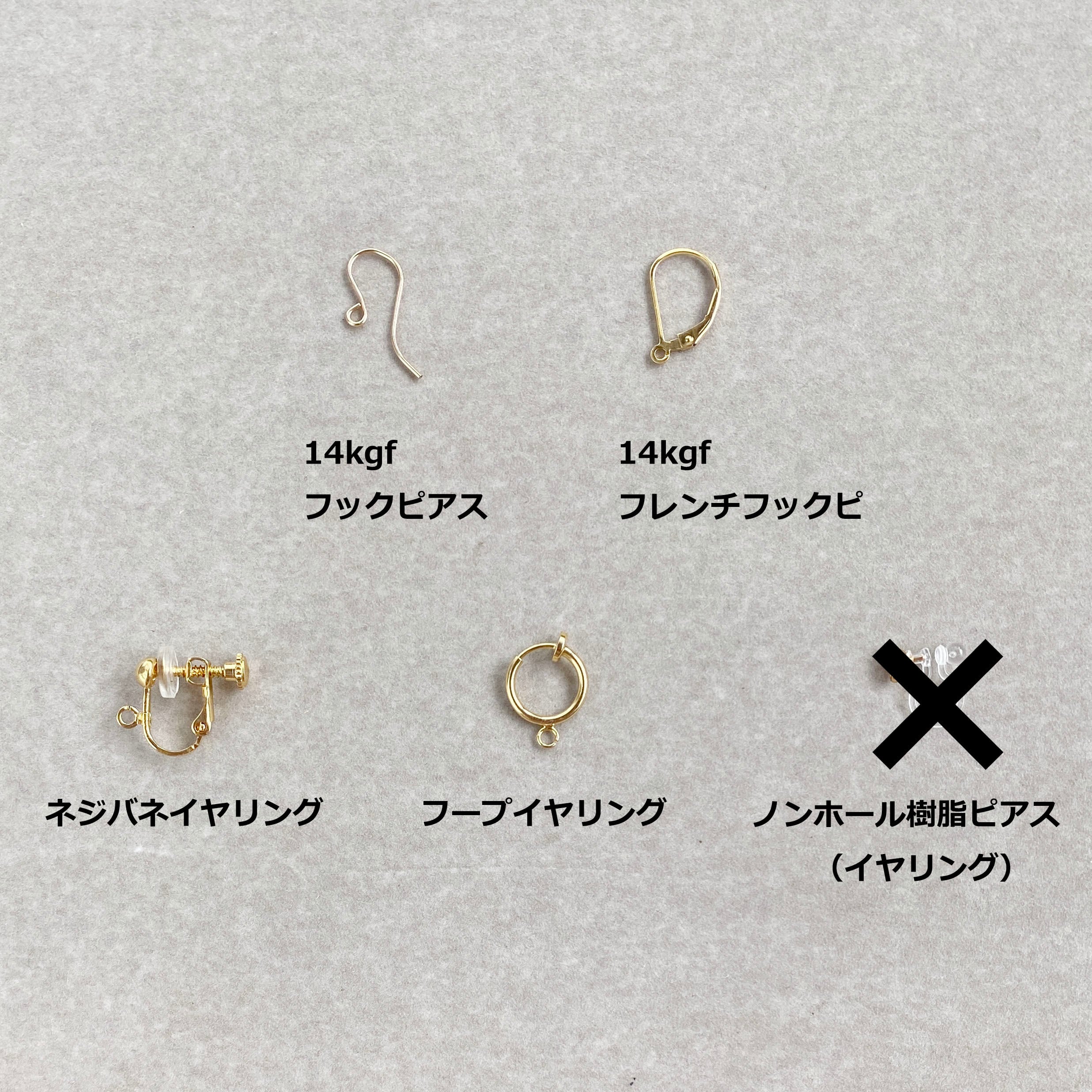 ※ 金具のご指定がない場合、フックピアスでのお届けとなります。イヤリングご希望の方はご注意ください。