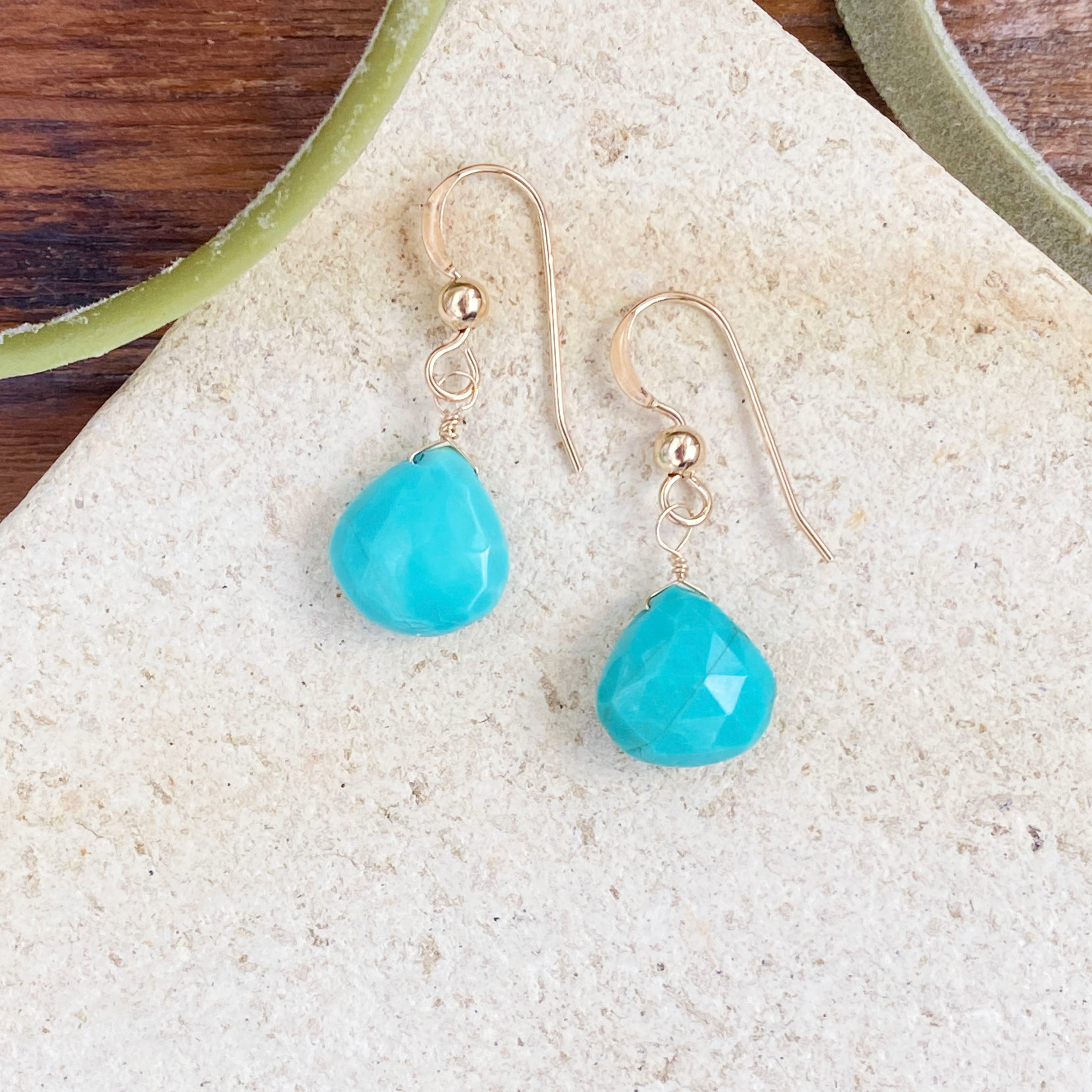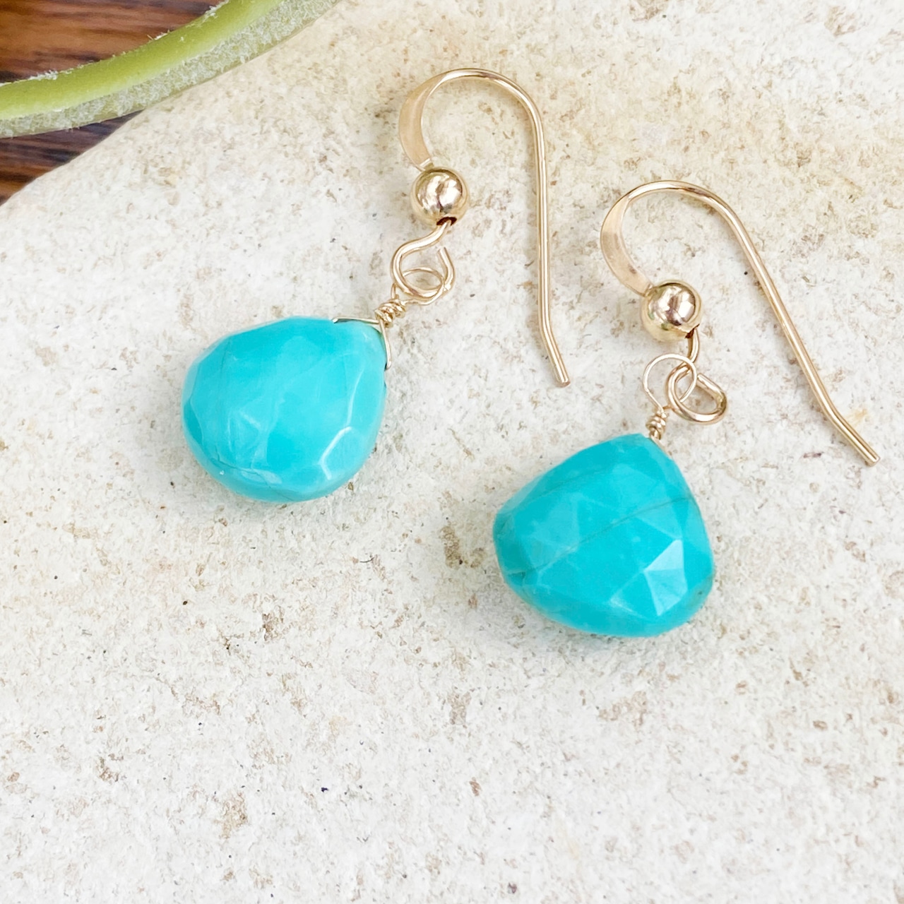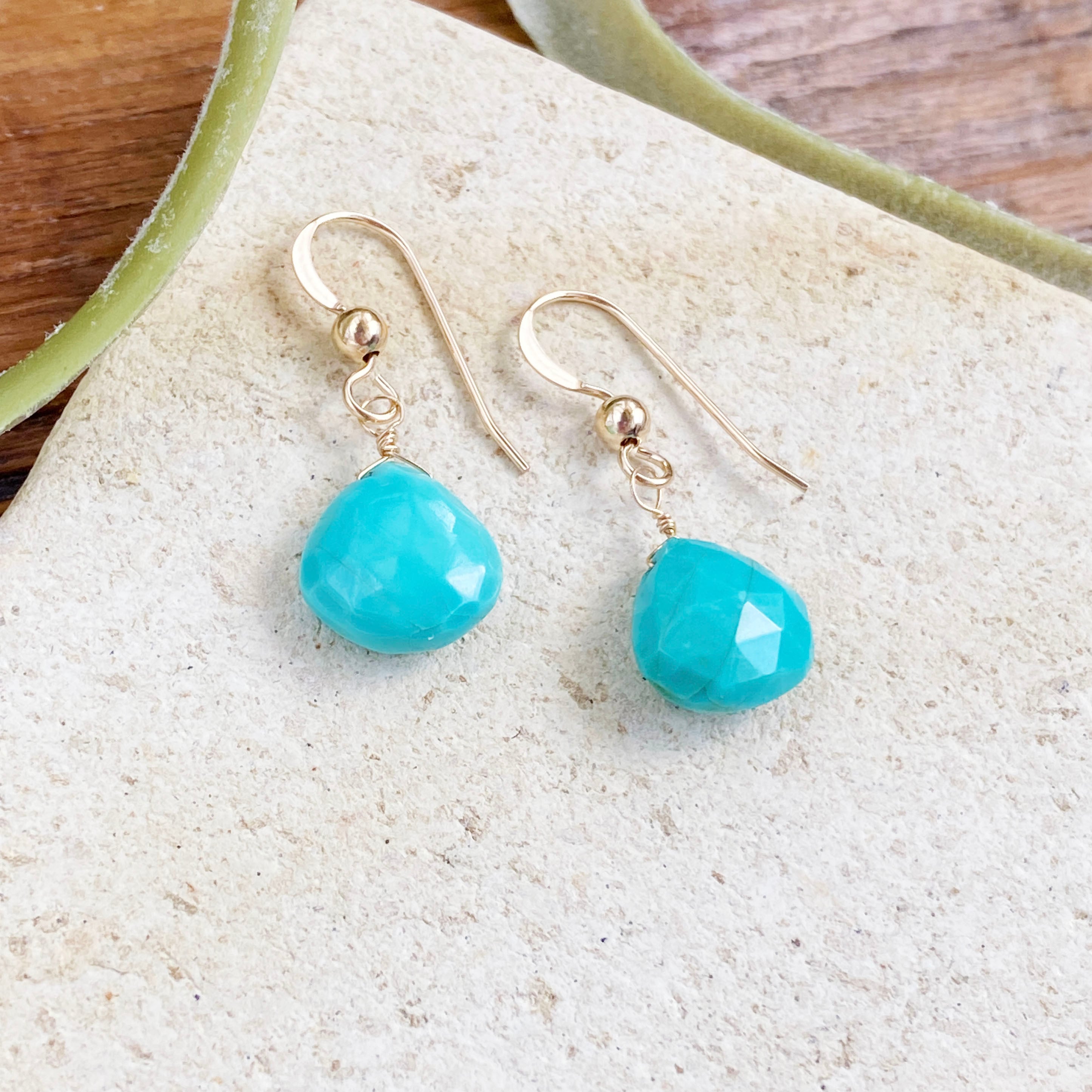 14kgf 天然石 キングマンターコイズ マロンカット (ピアス / イヤリング)