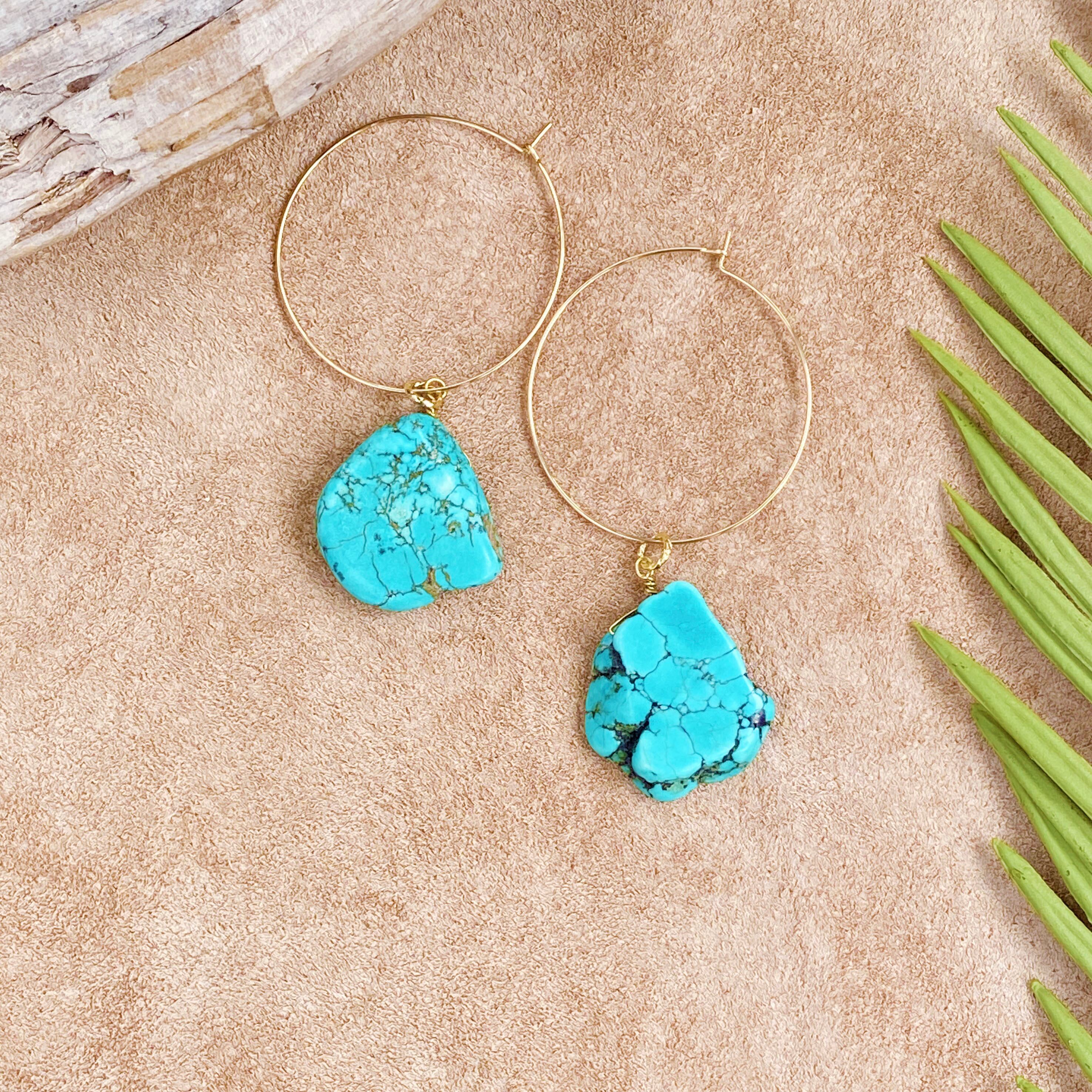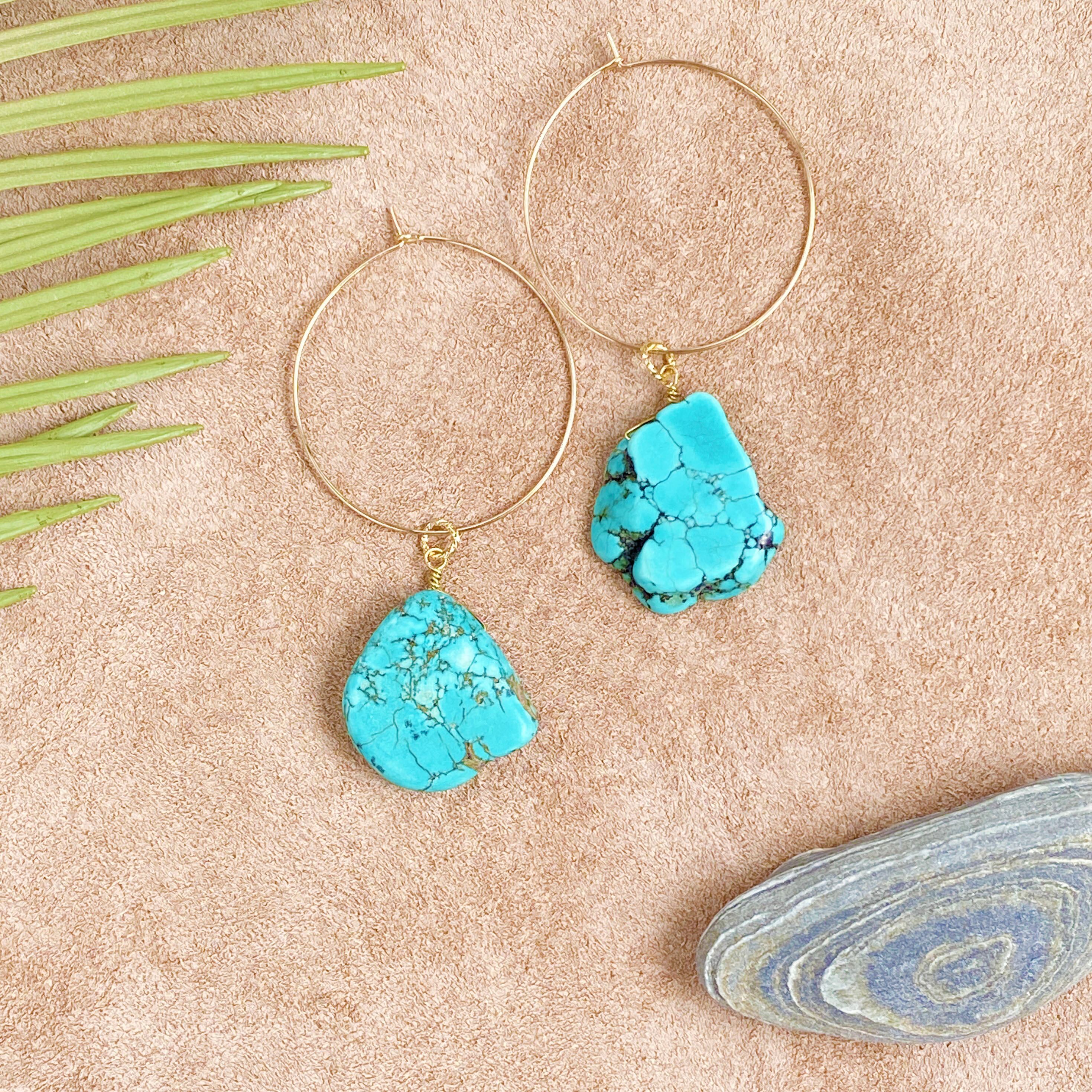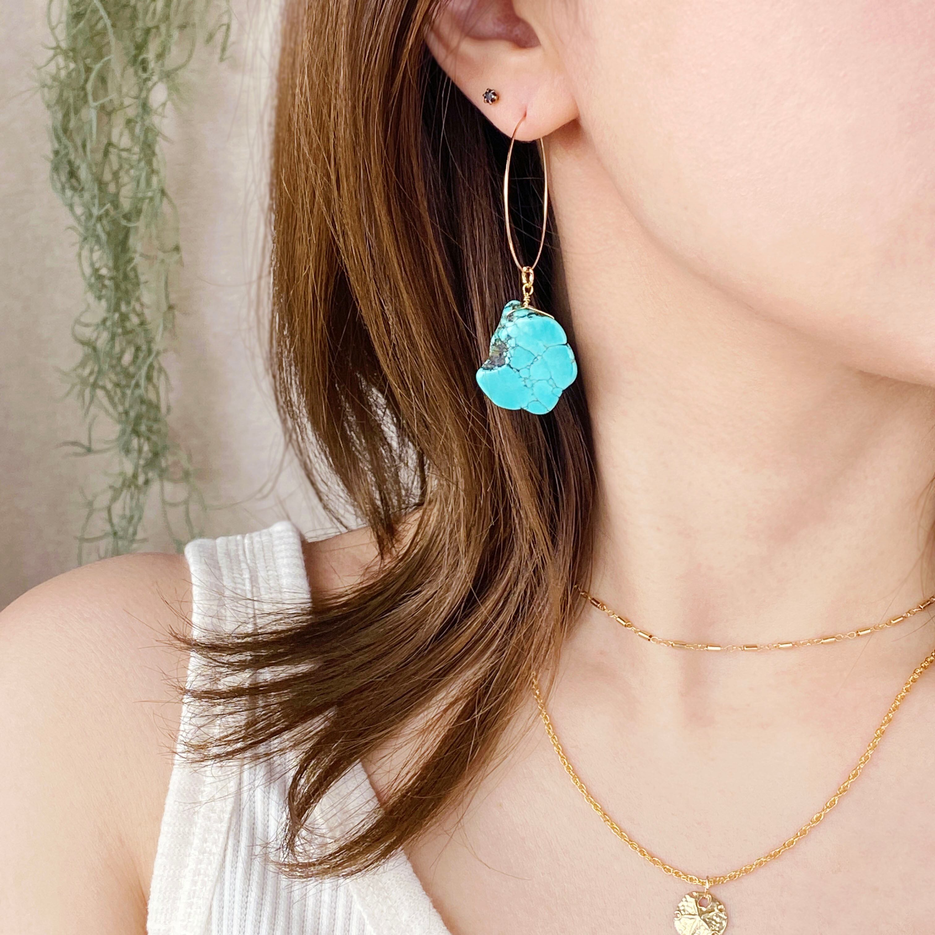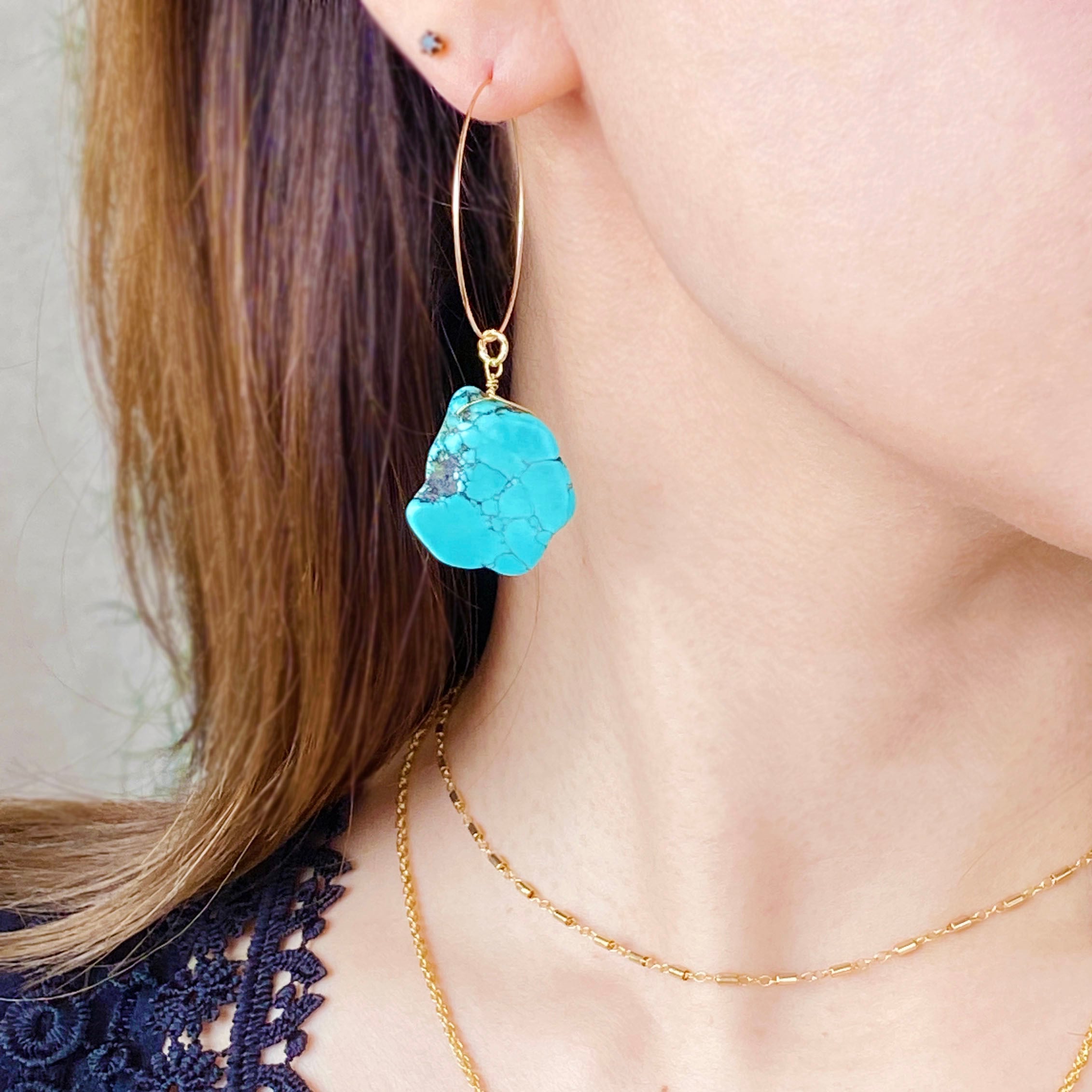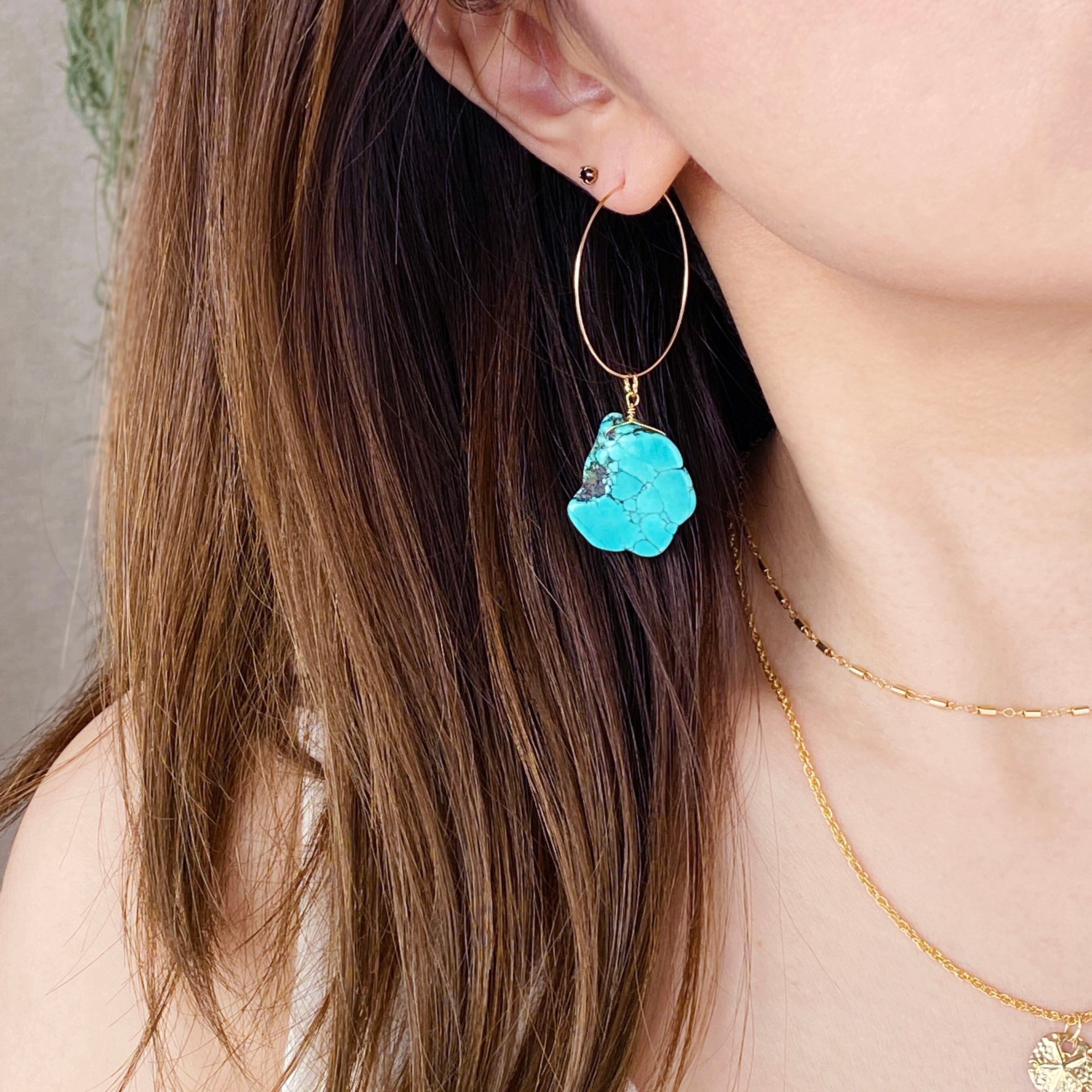 14kgf 大粒マグネサイトターコイズ フープピアス
