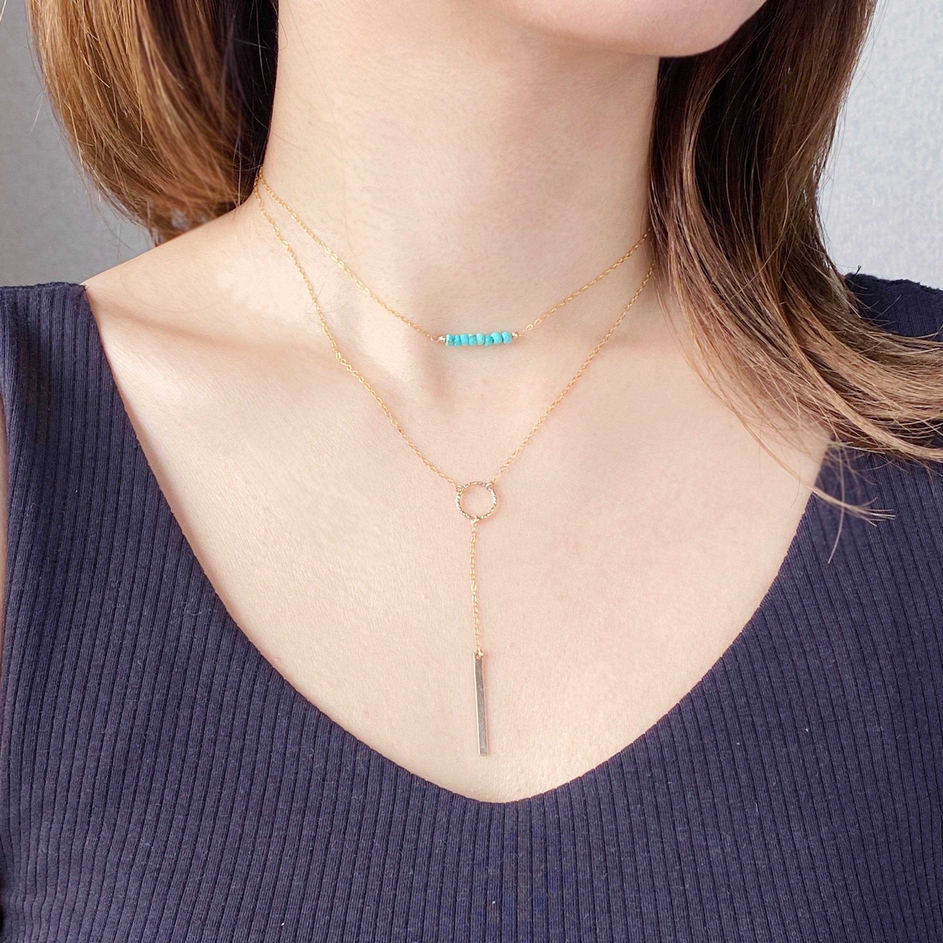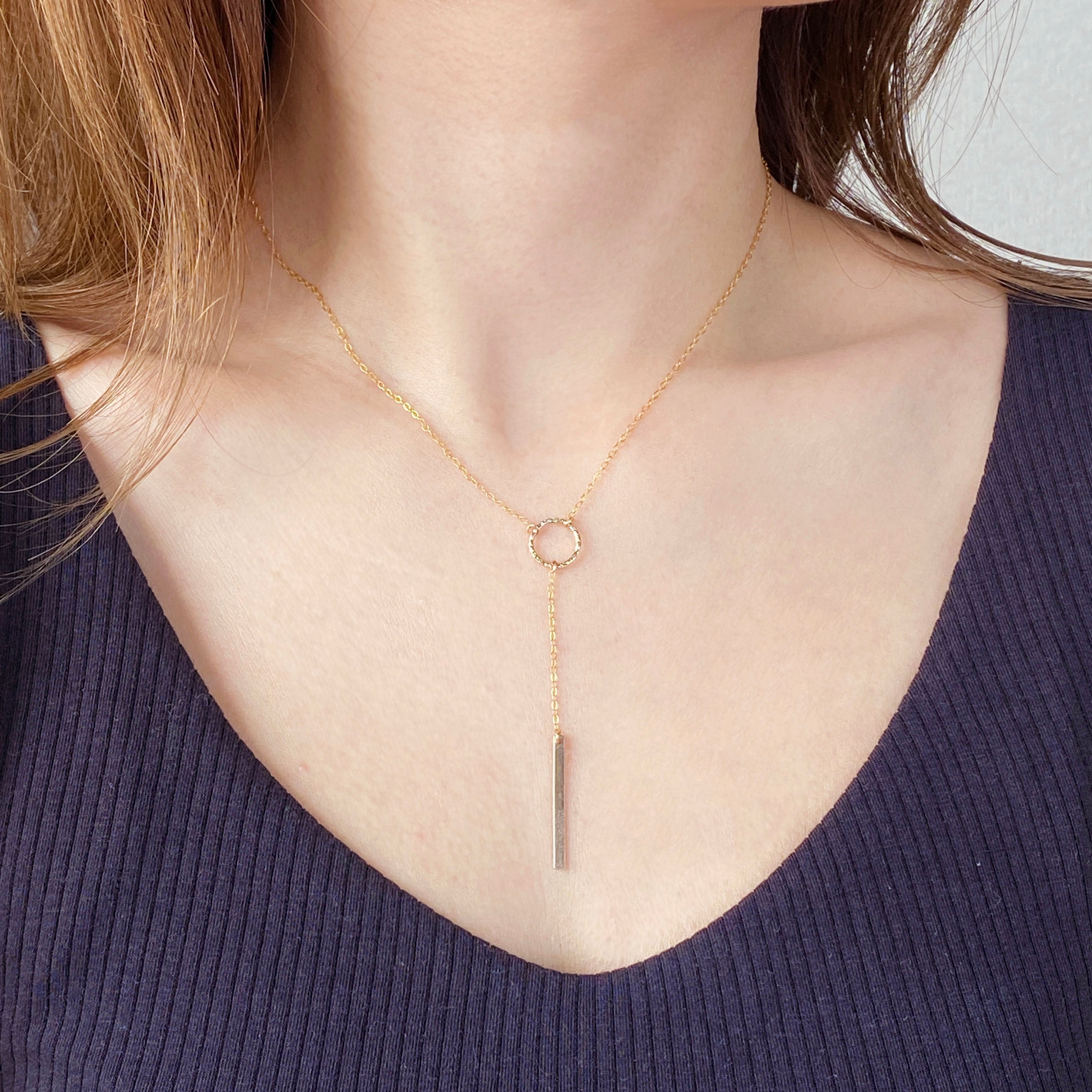 14kgf ring × bar Y字ネックレス