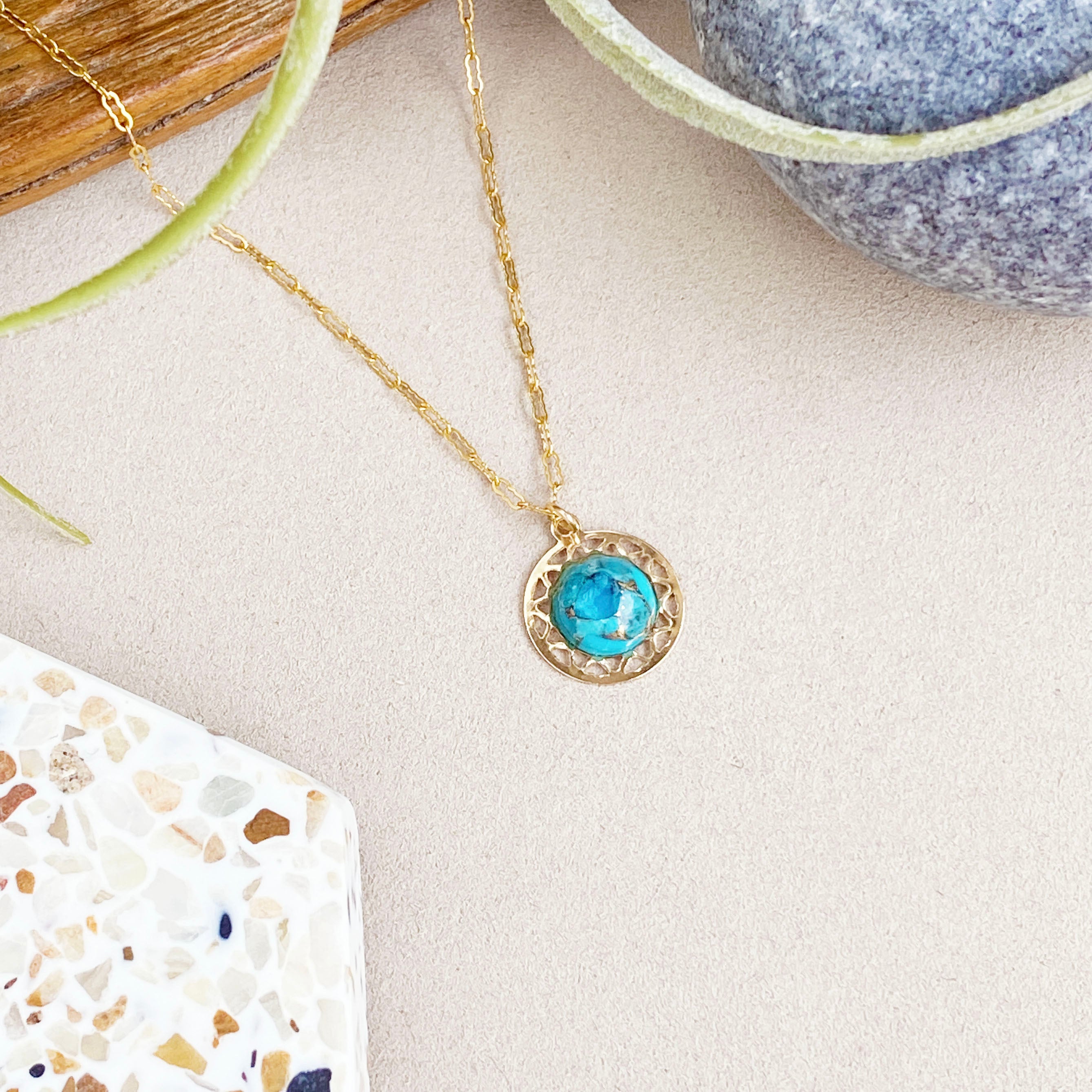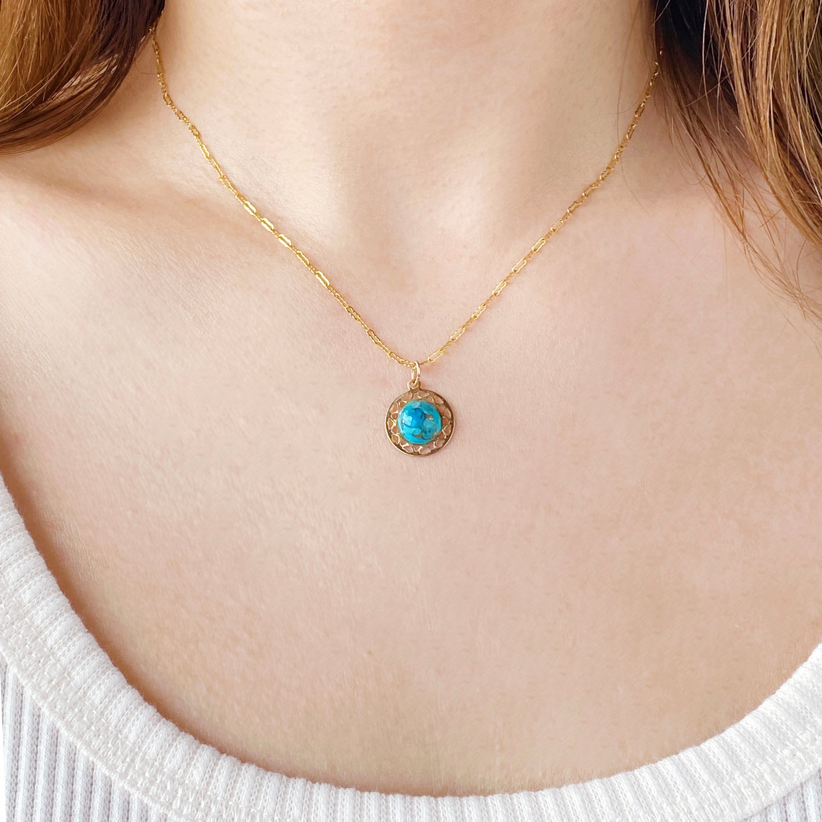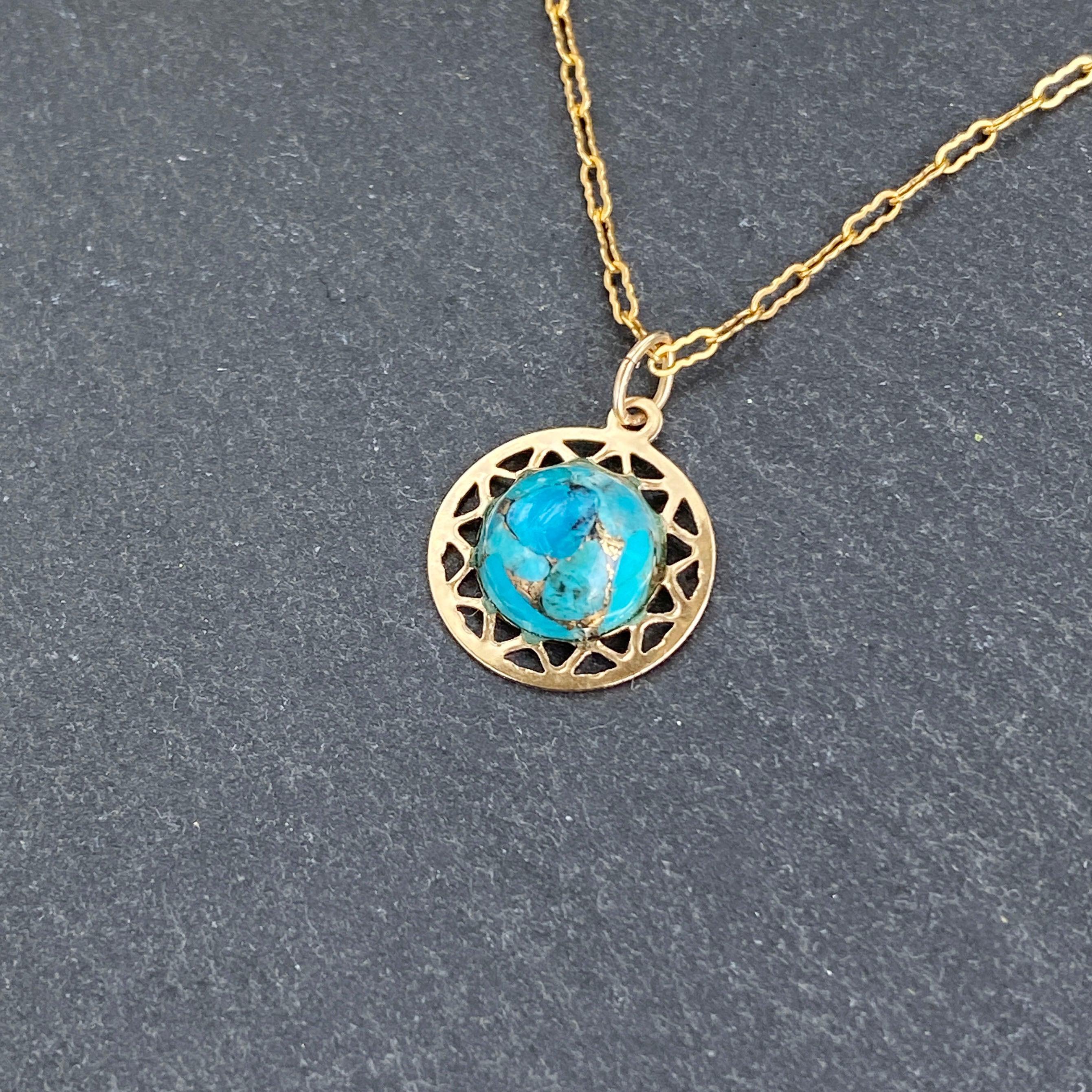 14kgf 天然石 ブルーコッパーターコイズ ネックレス