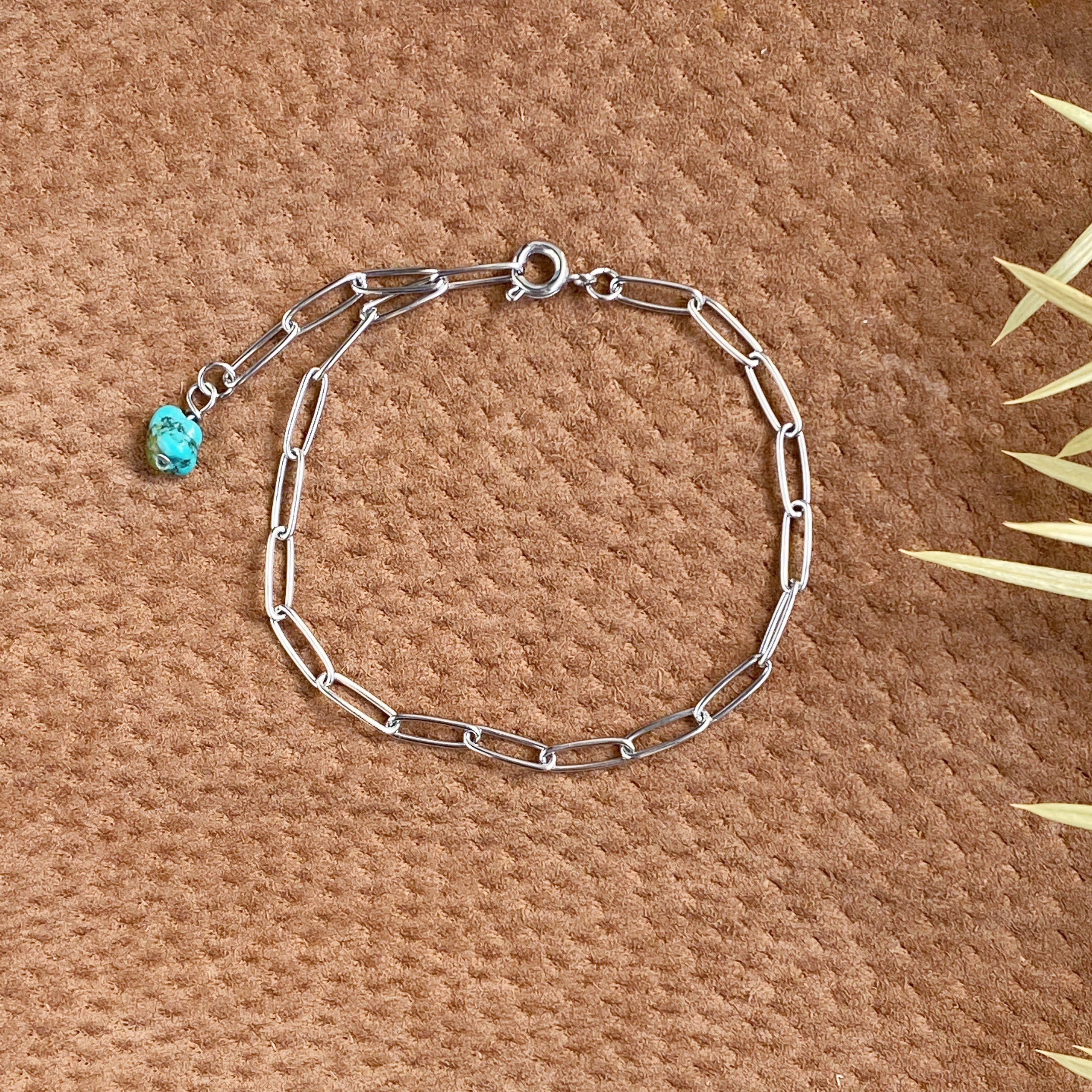 〈サージカルステンレス〉オーバルチェーン × ターコイズ ブレスレット 天然石