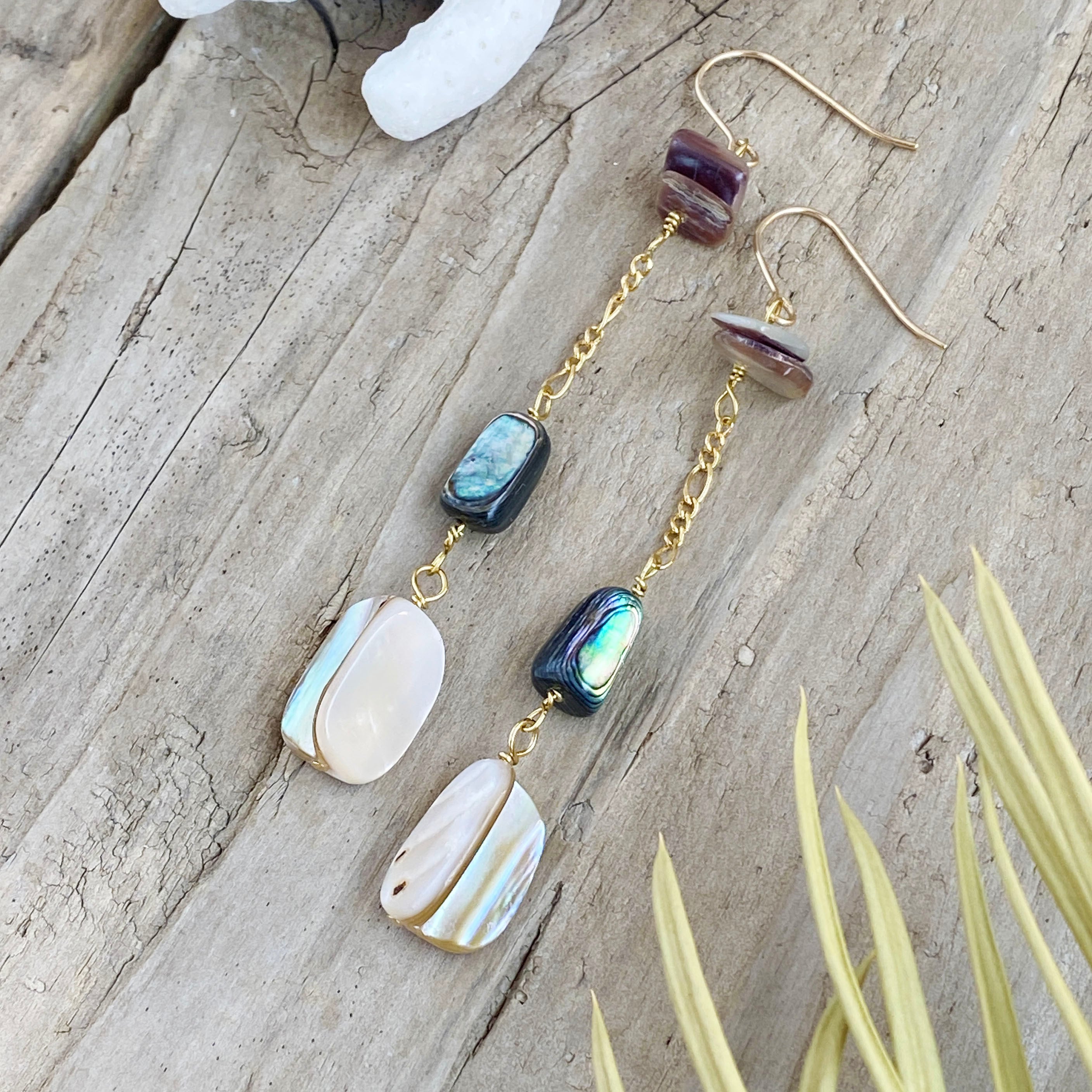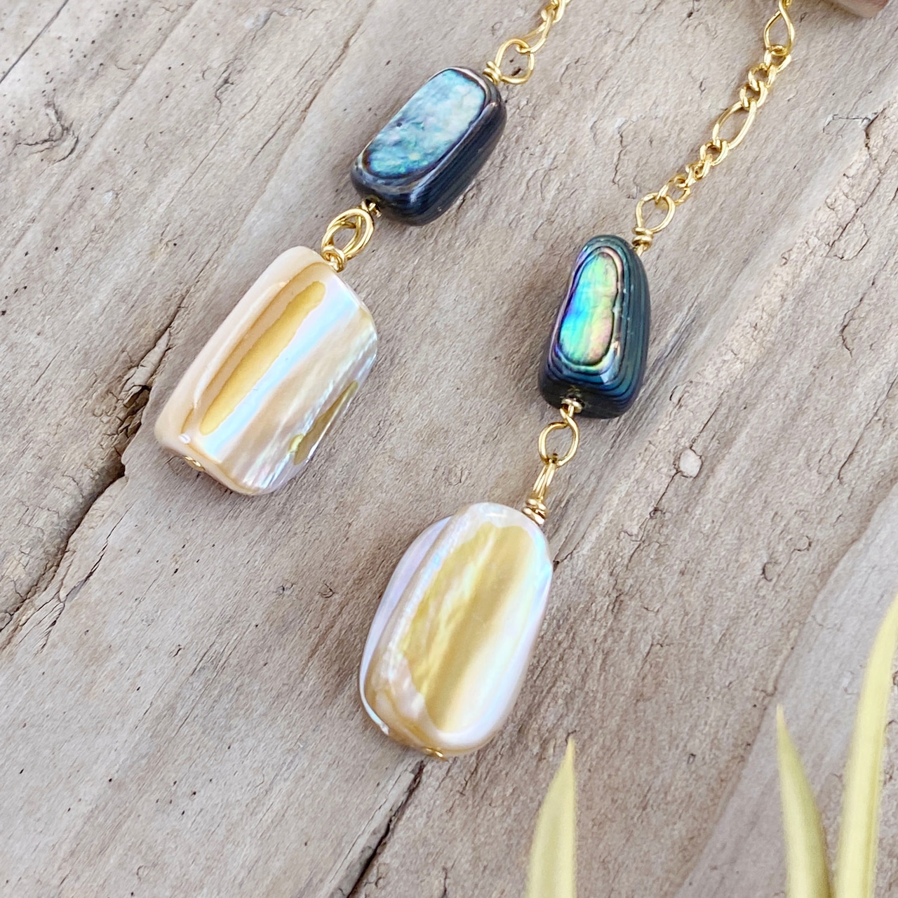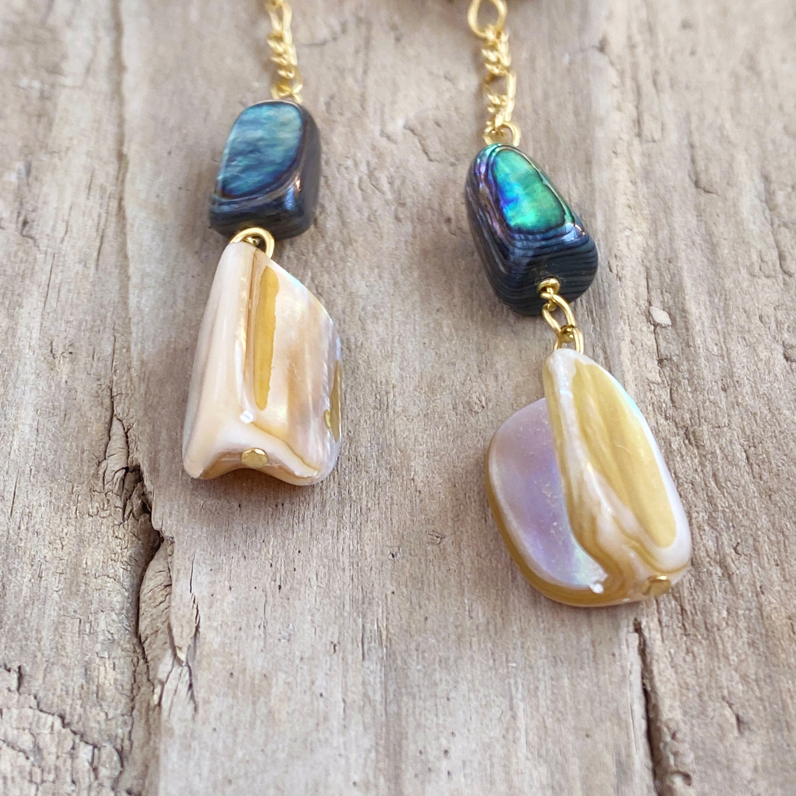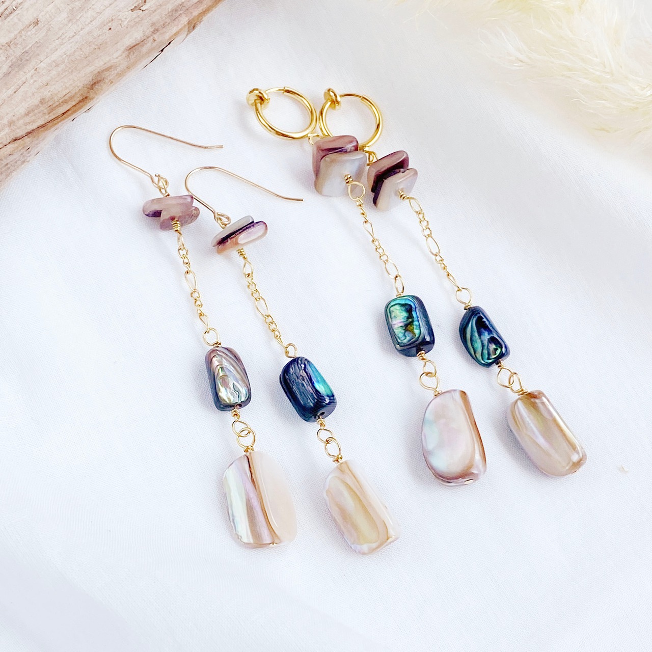 ナチュラルな風合いのmixシェル チェーンピアスです。
