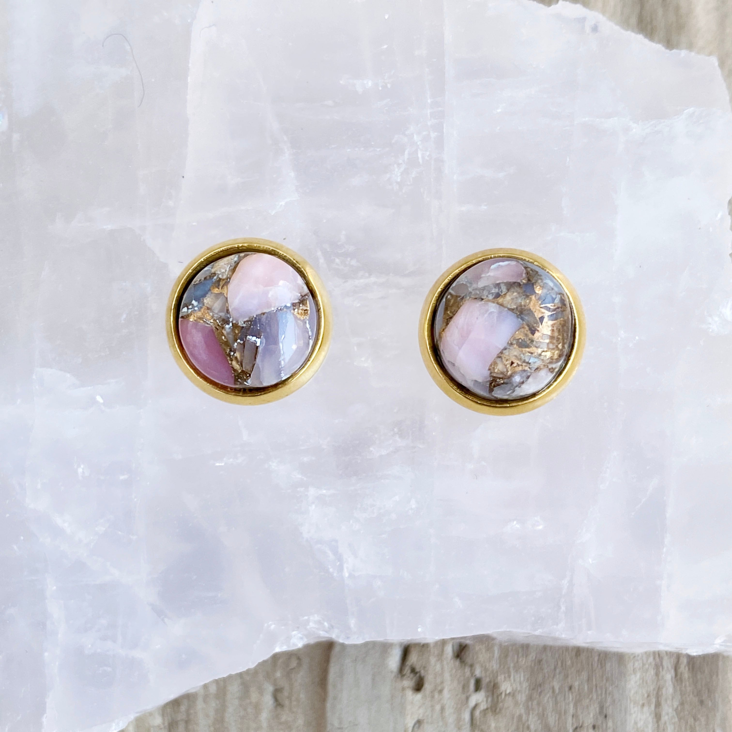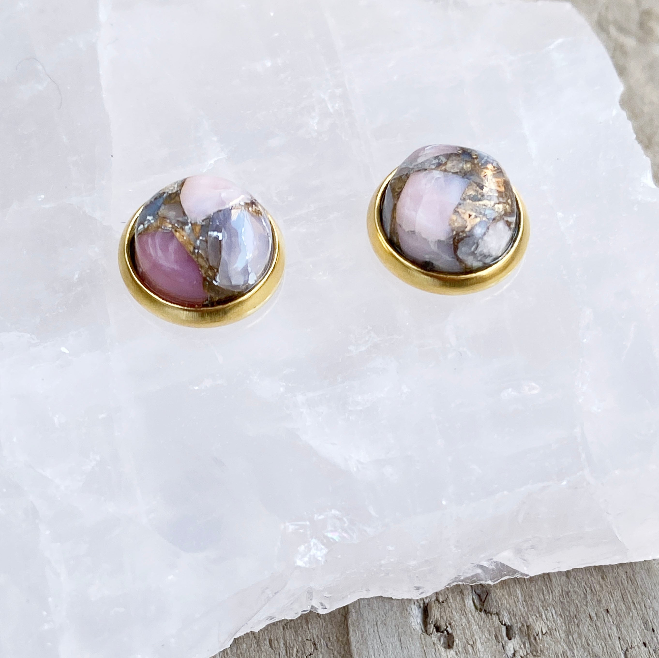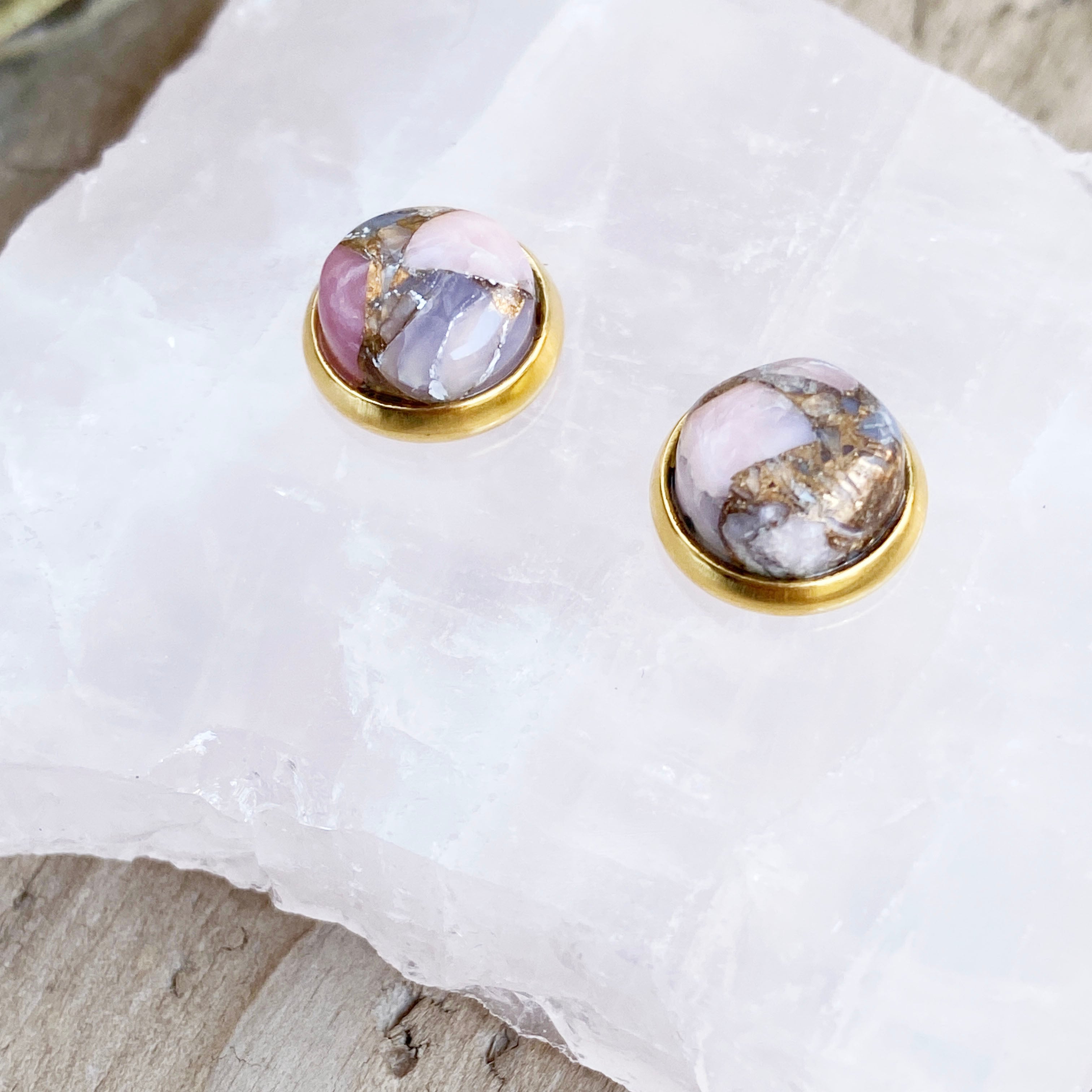 〈天然石〉コッパーピンクオパール スタッドピアス