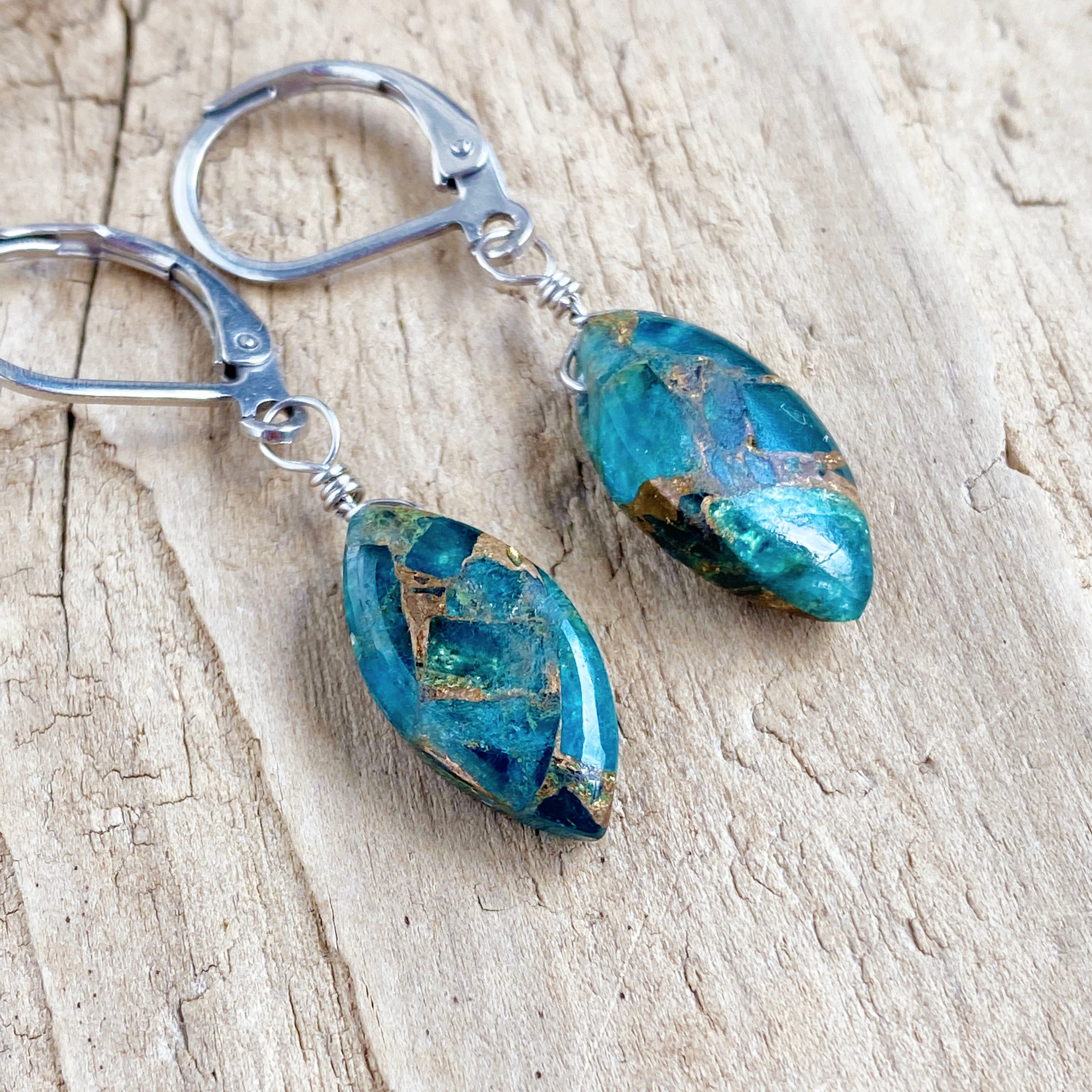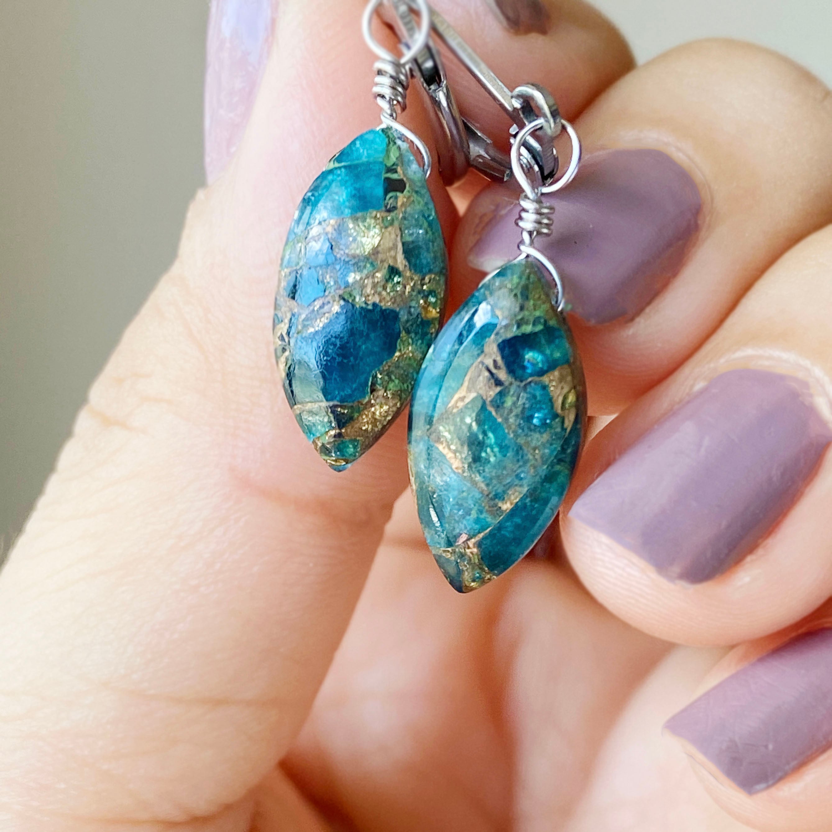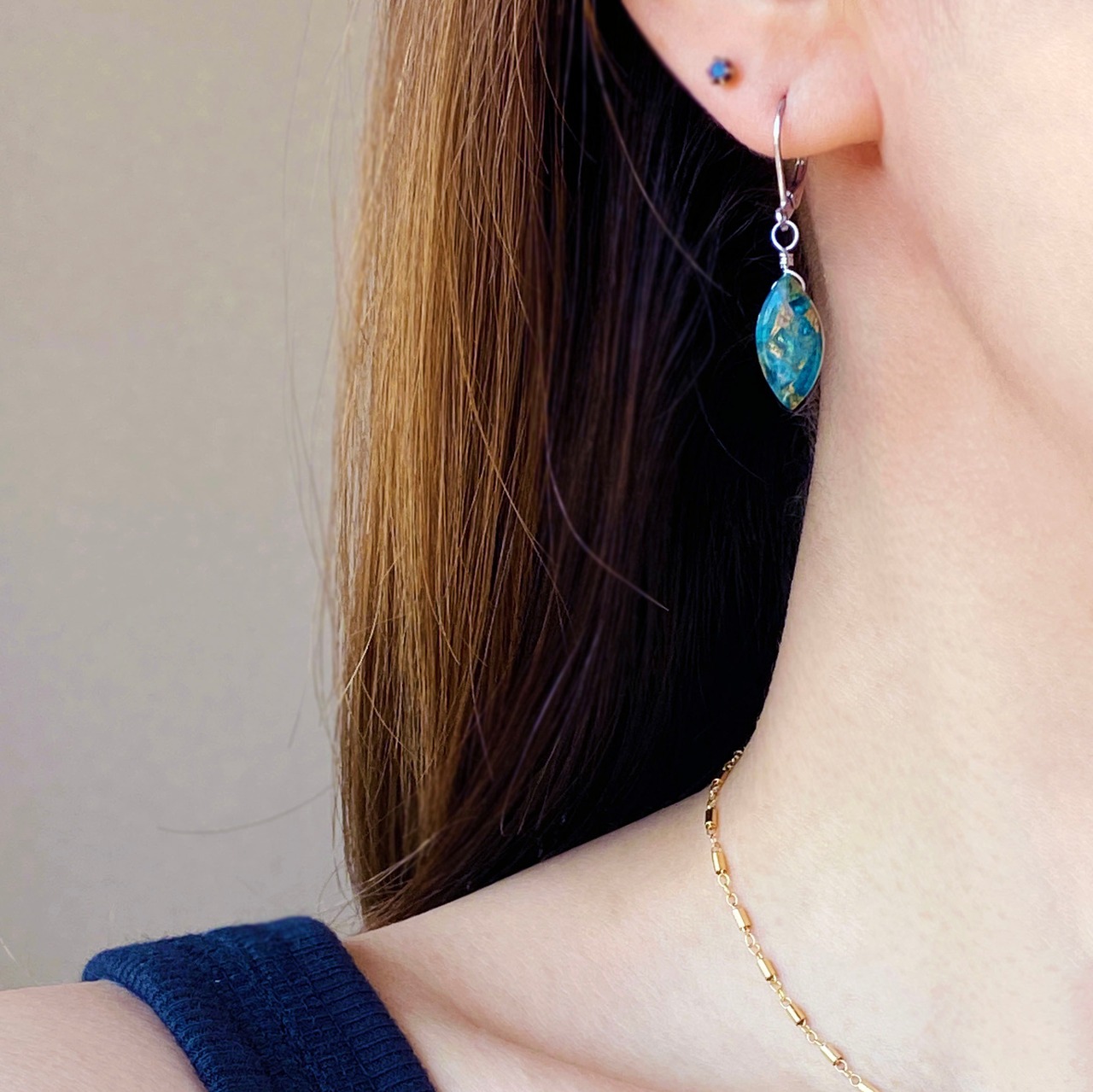 〈✧˖アクティブピアス˖✧〉ネオンブルーアパタイトコッパー/ サージカルステンレス