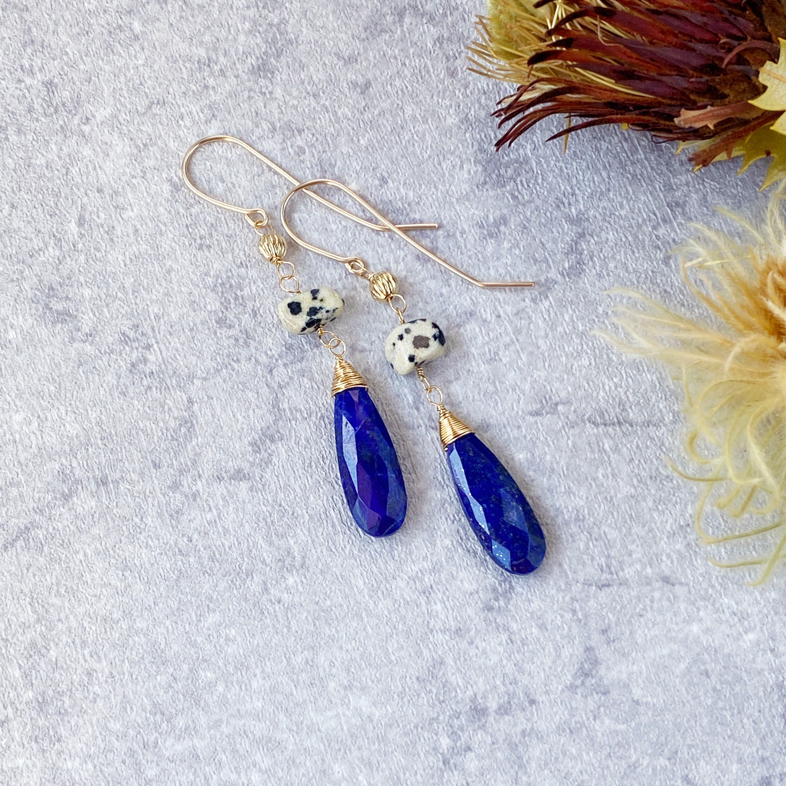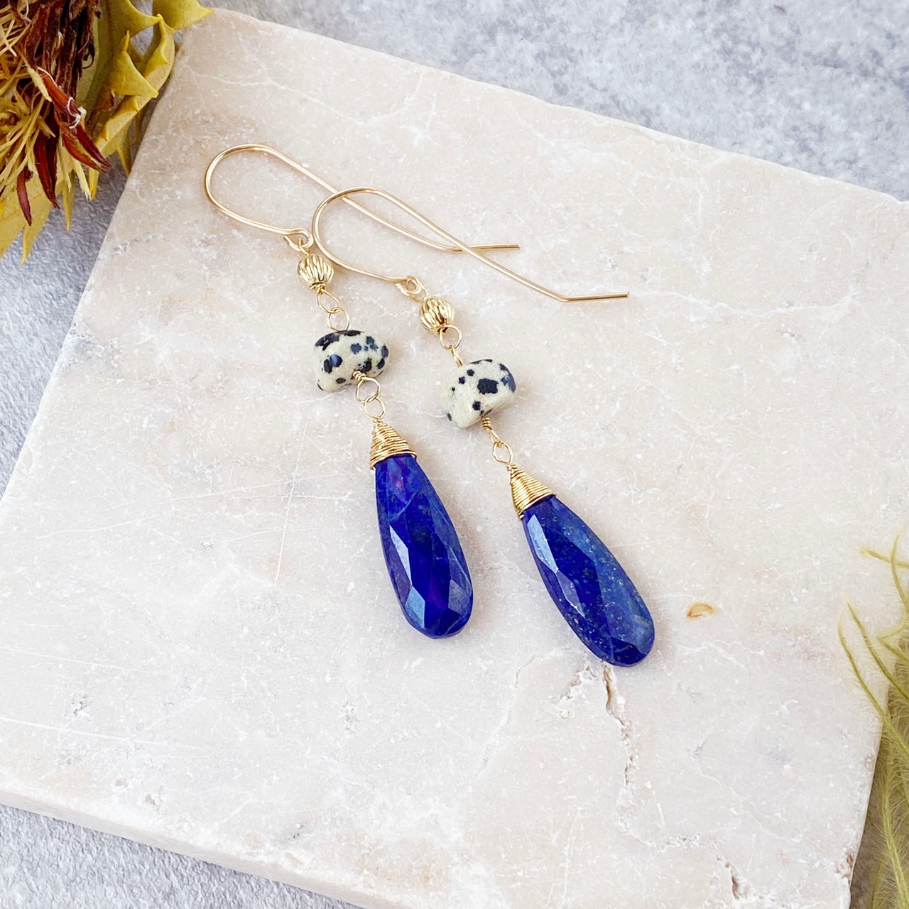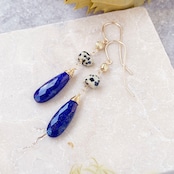 14kgf 天然石 ラピスラズリ × ダルメシアンチャスパー ピアス / イヤリング
