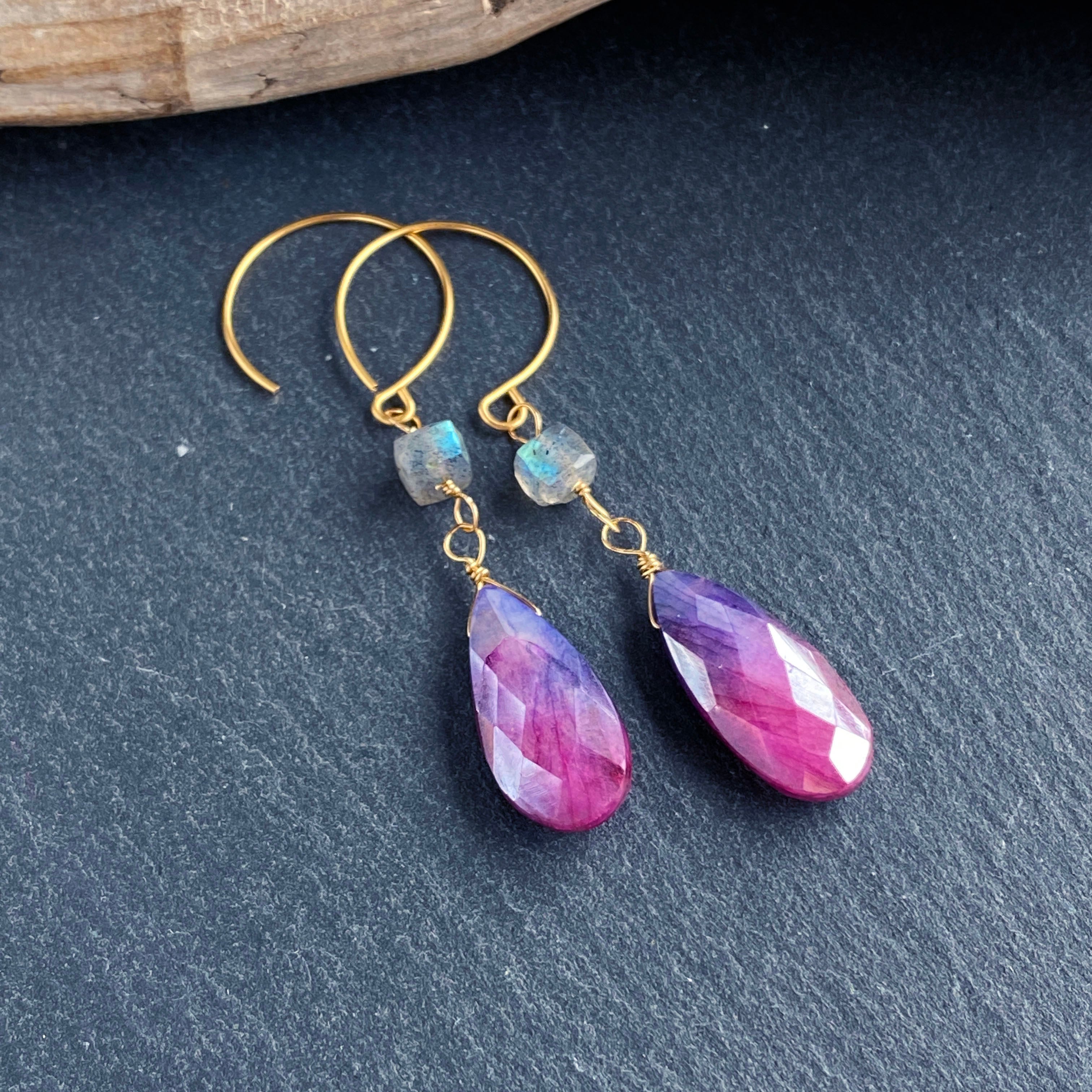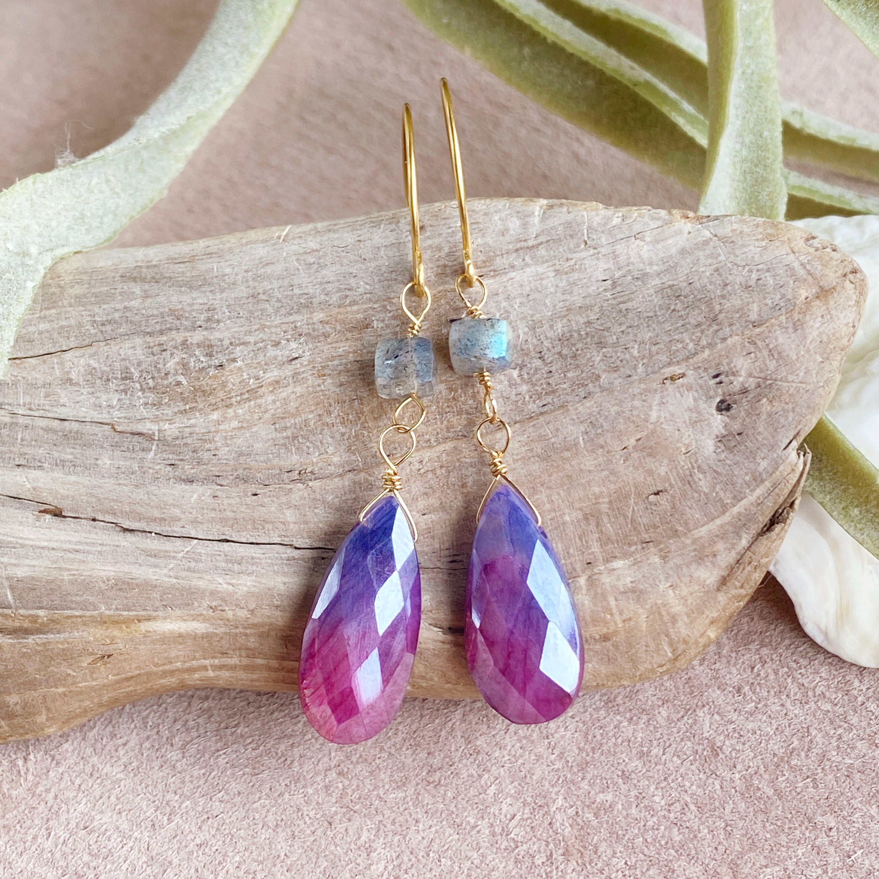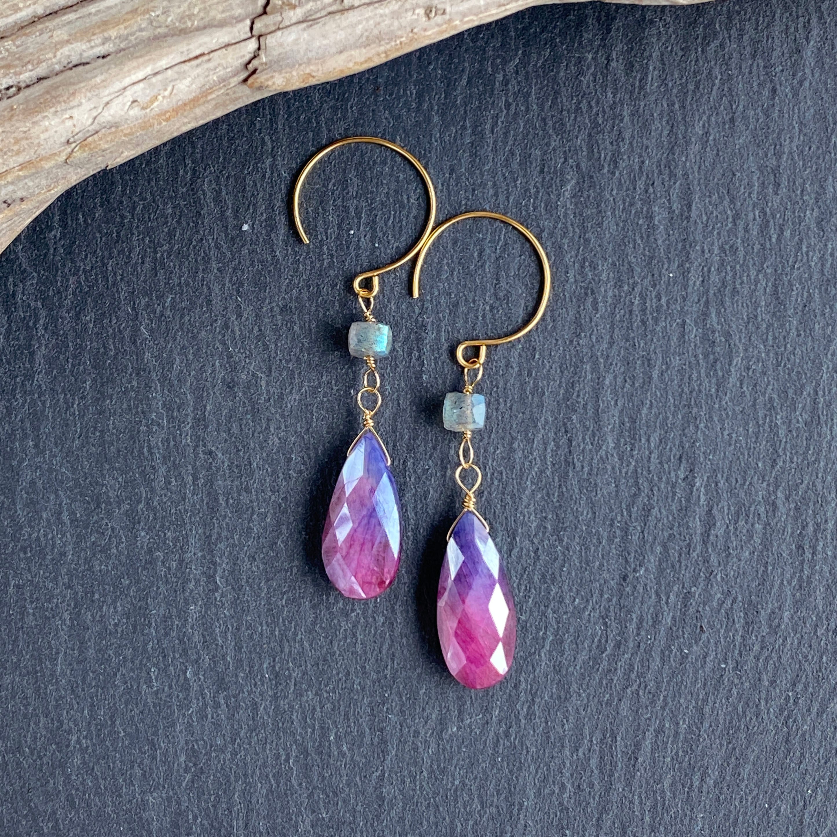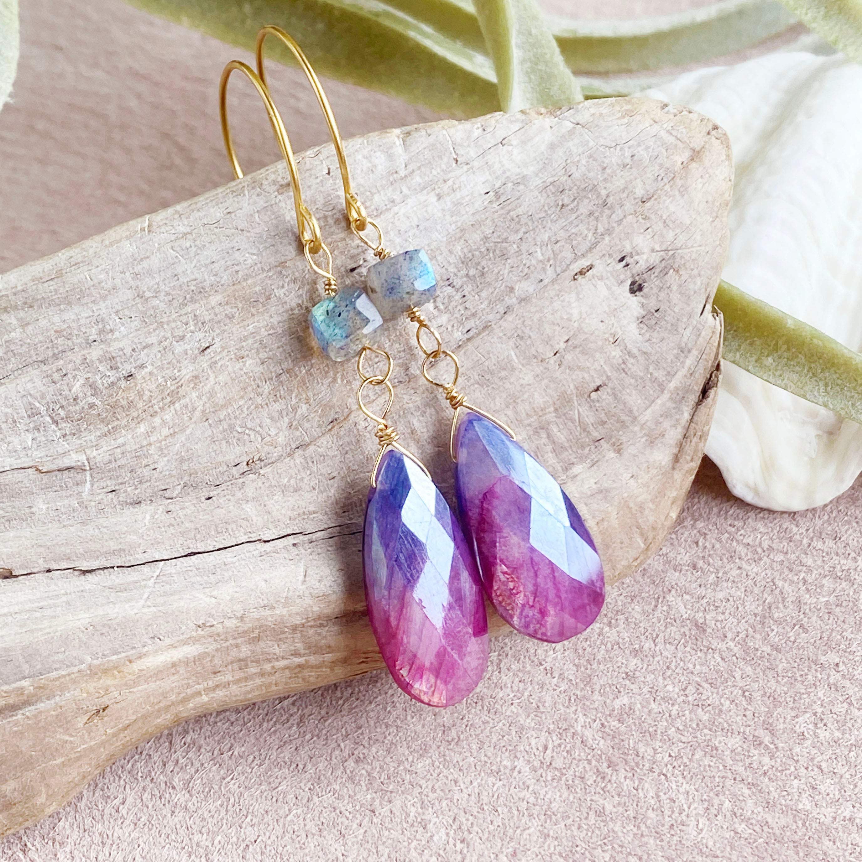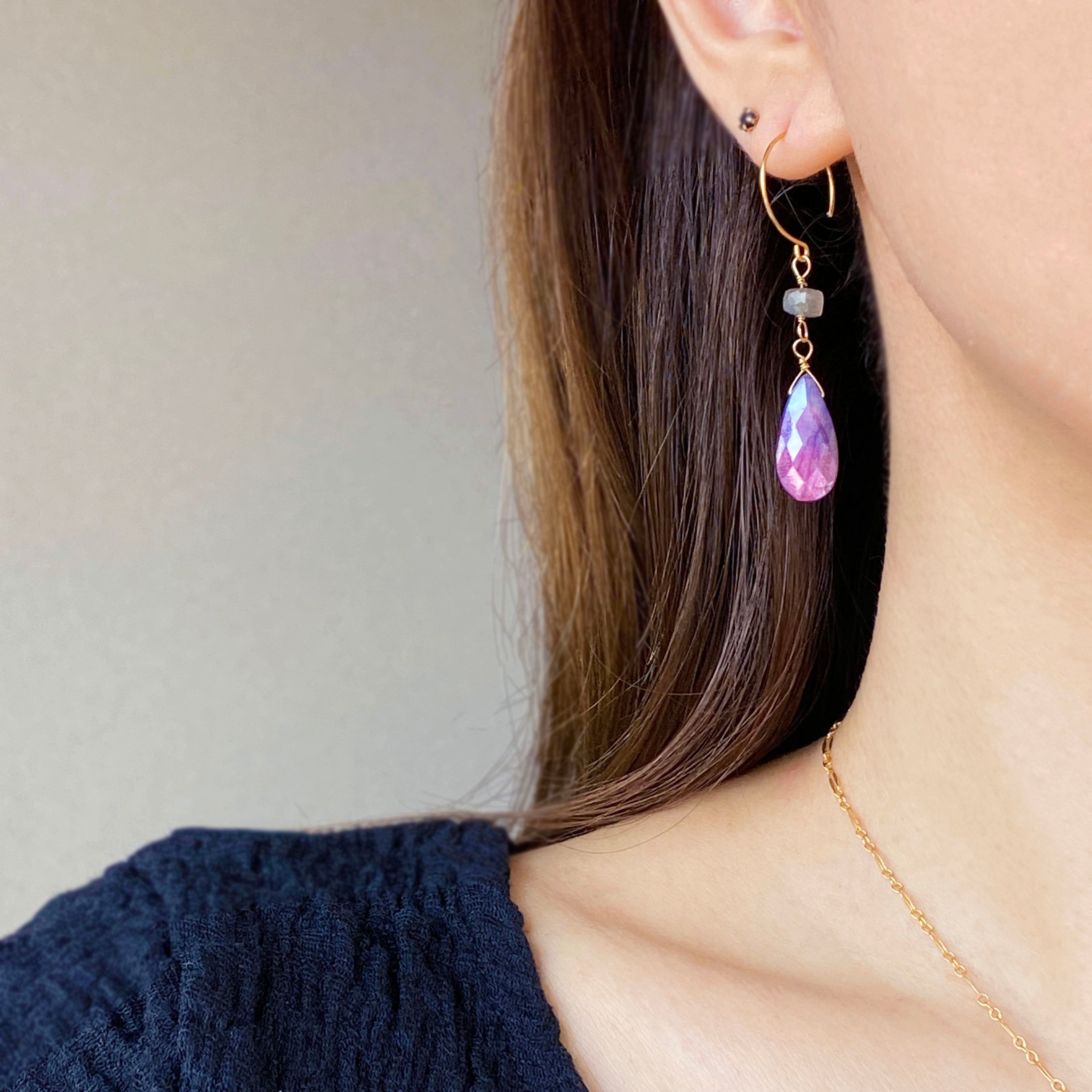 14kgf バイカラームーンストーン(パープル・ピンク)× ラブラドライト ピアス