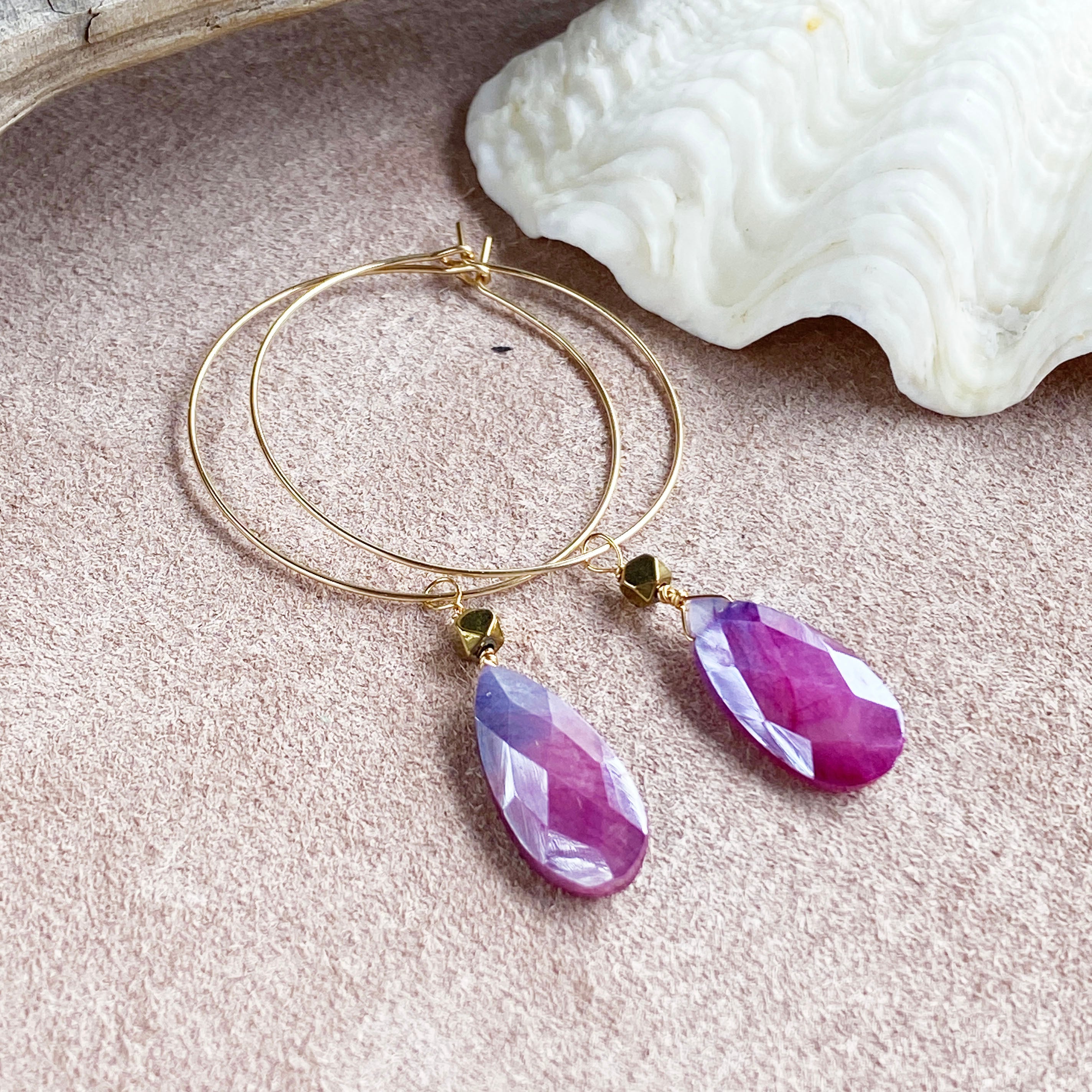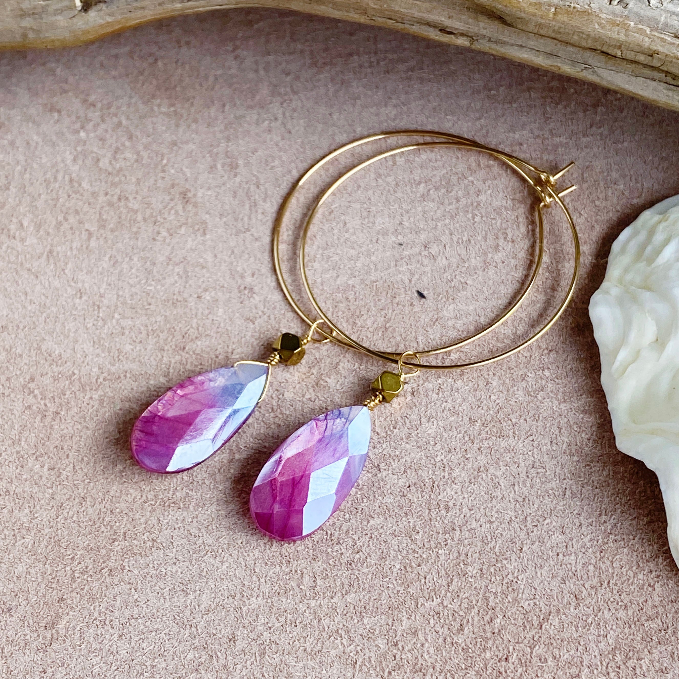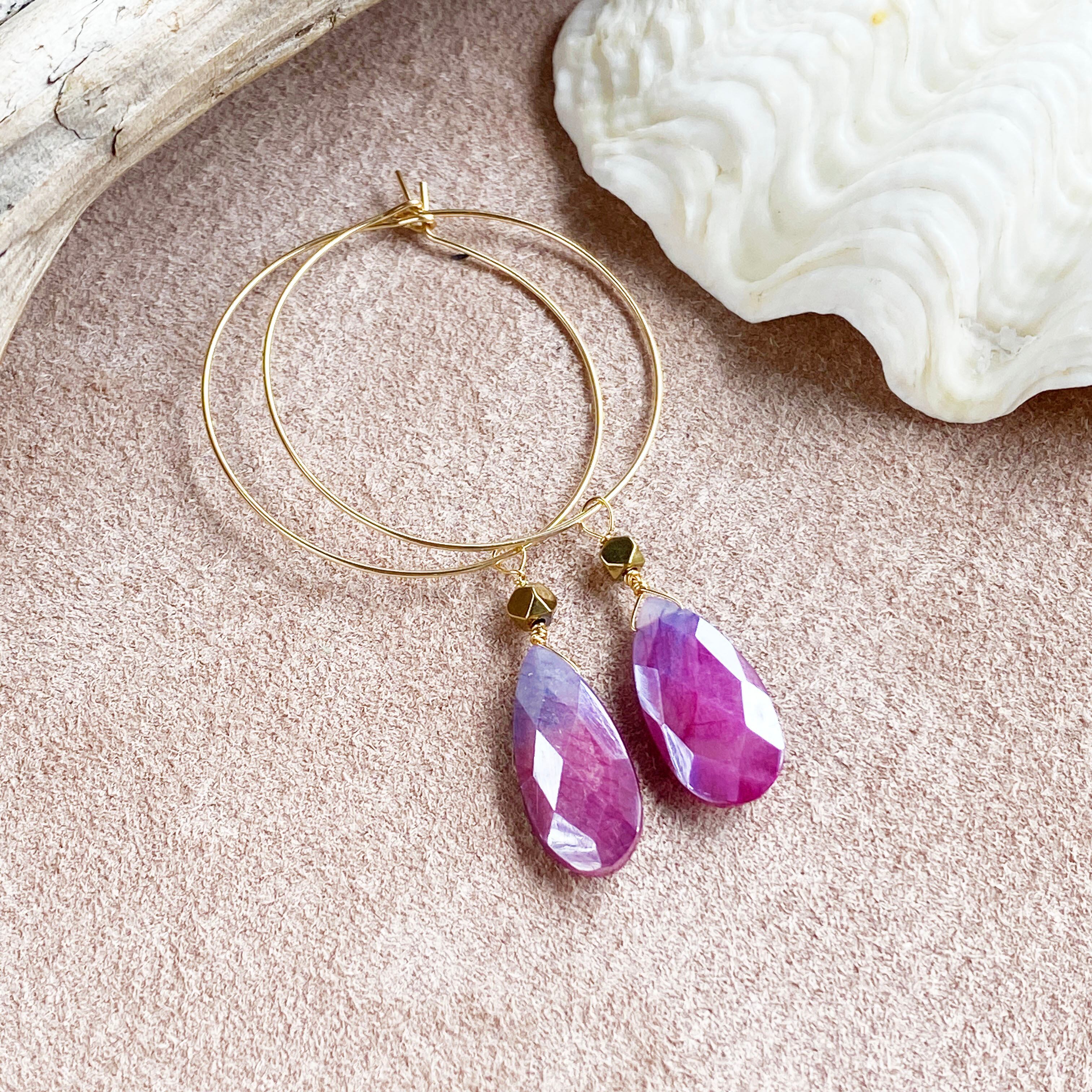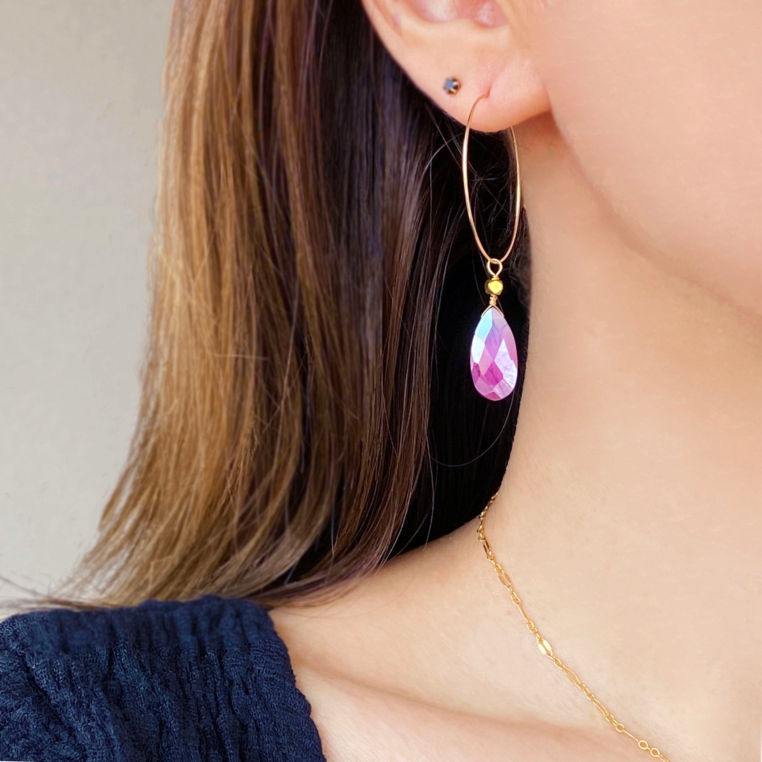 14kgf バイカラームーンストーン(パープル・ピンク) フープピアス