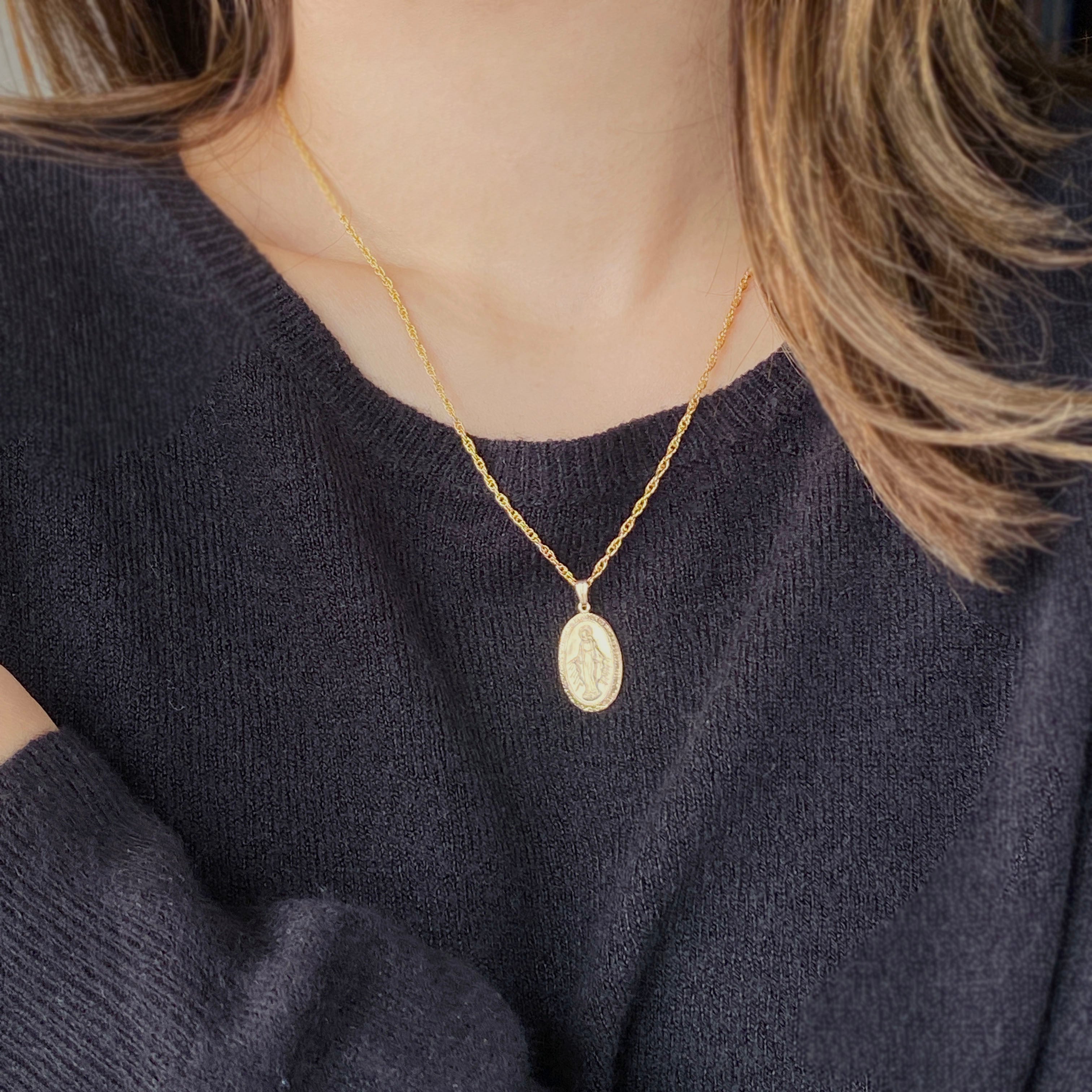オーバルタイプのメダイネックレス。