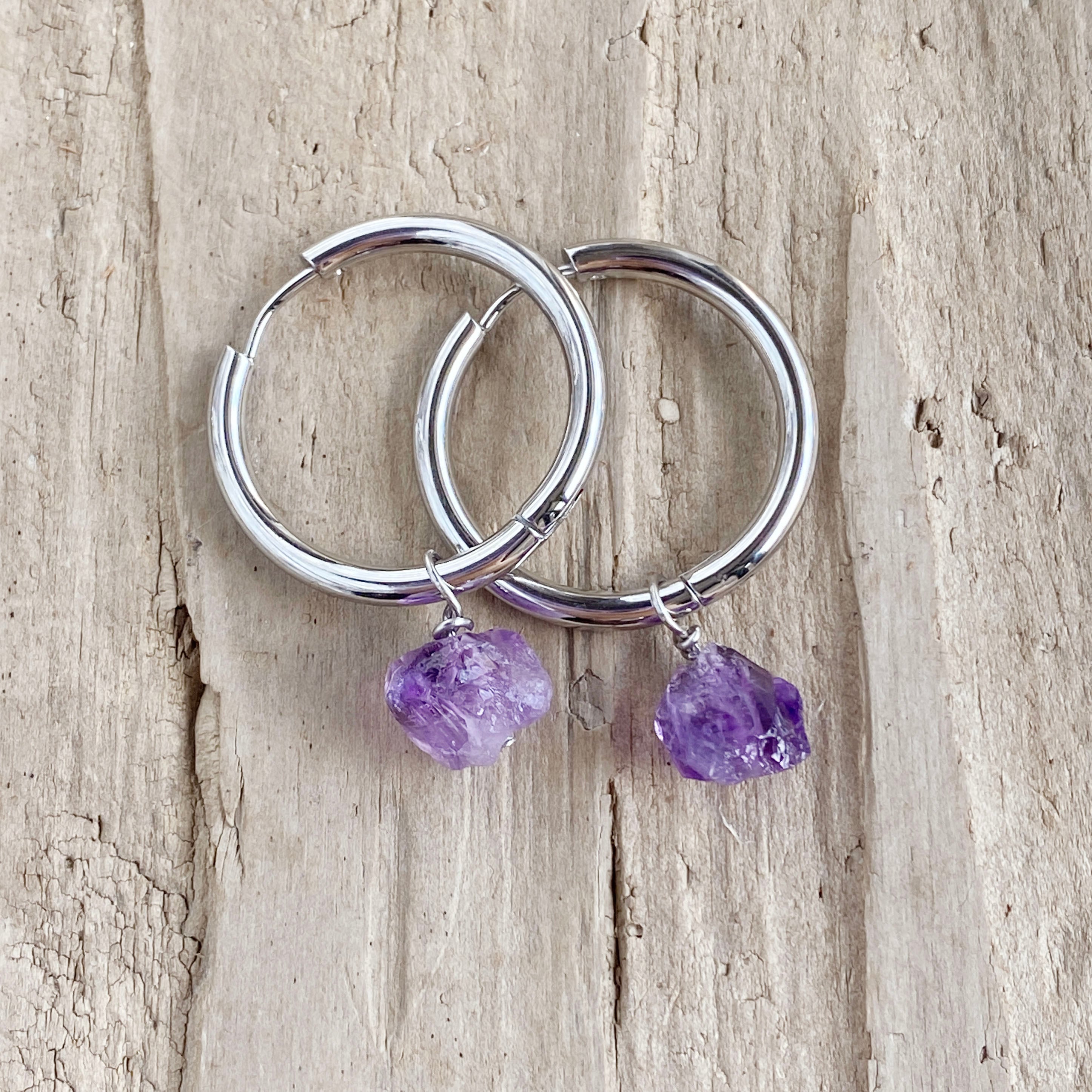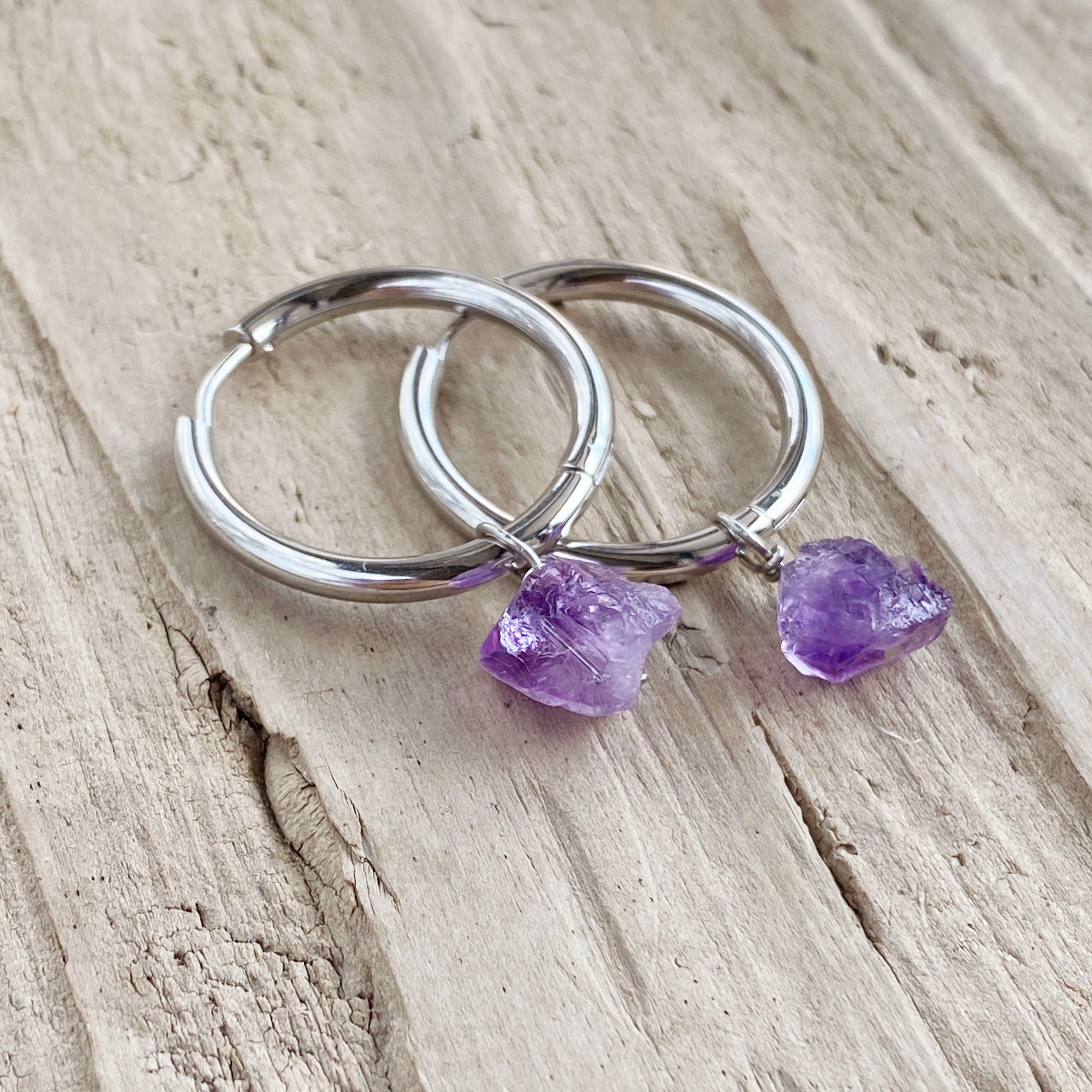 〈✧˖アクティブピアス˖✧〉アメジスト ラフカット / サージカルステンレス