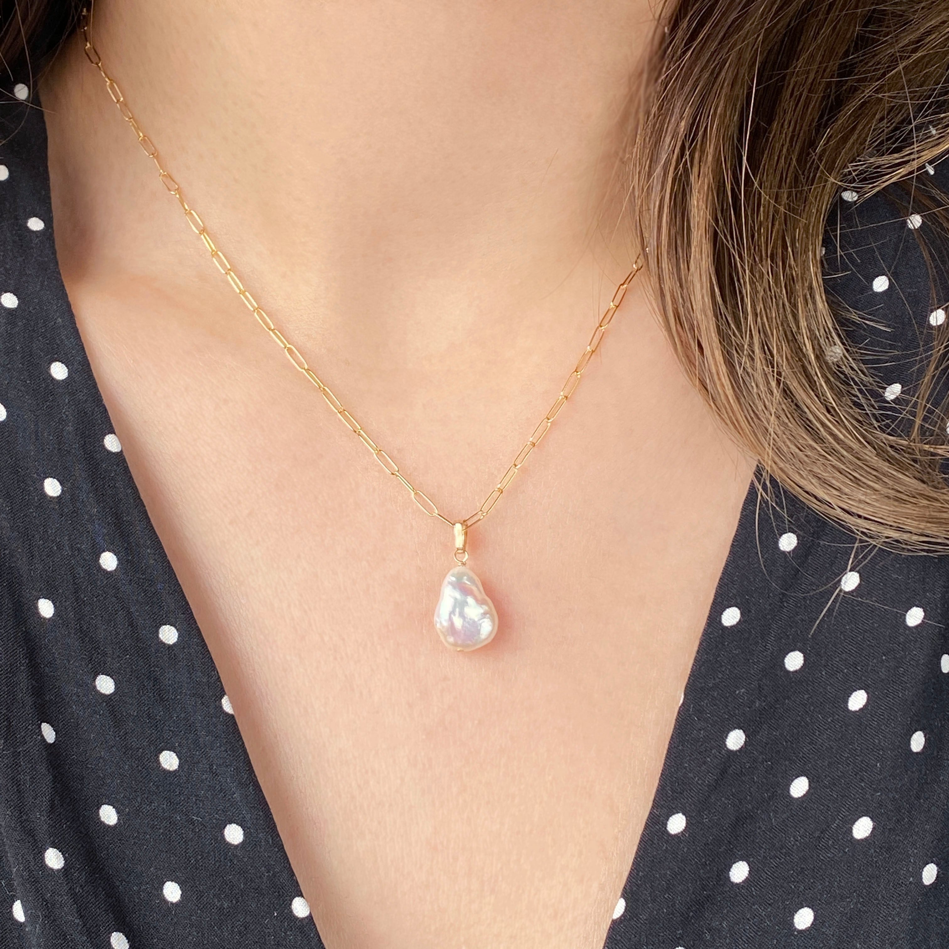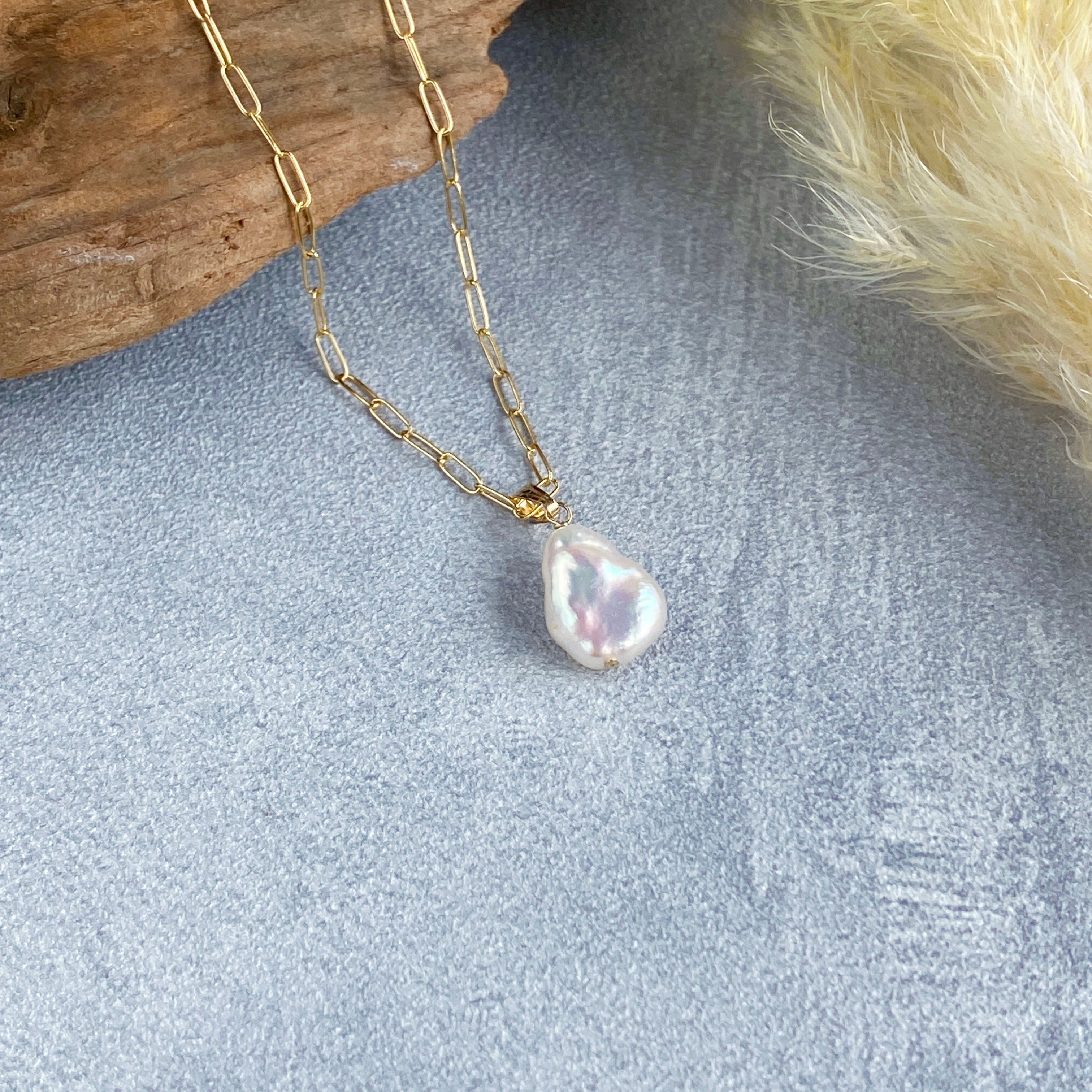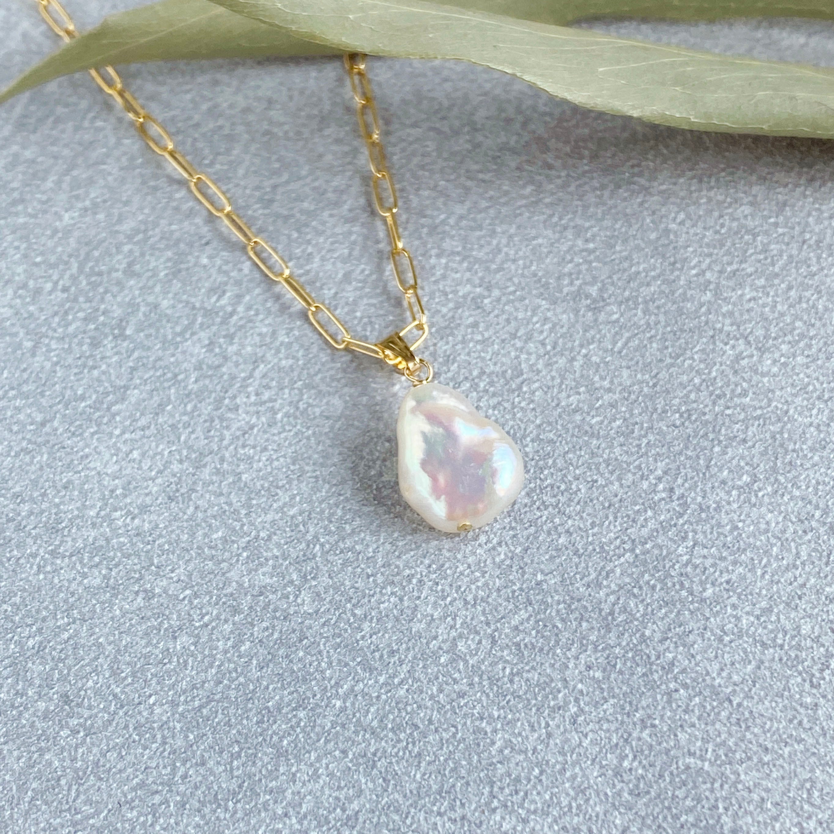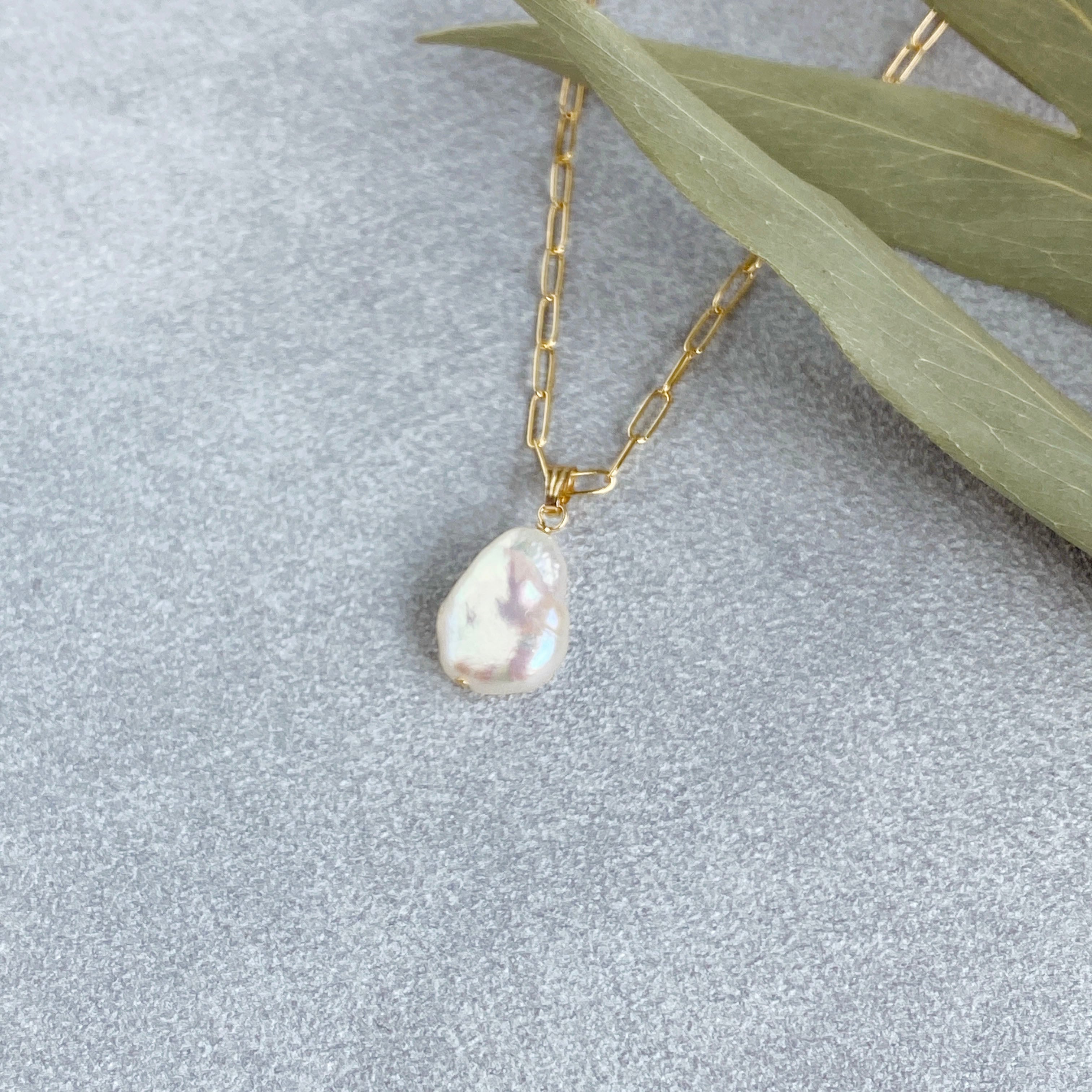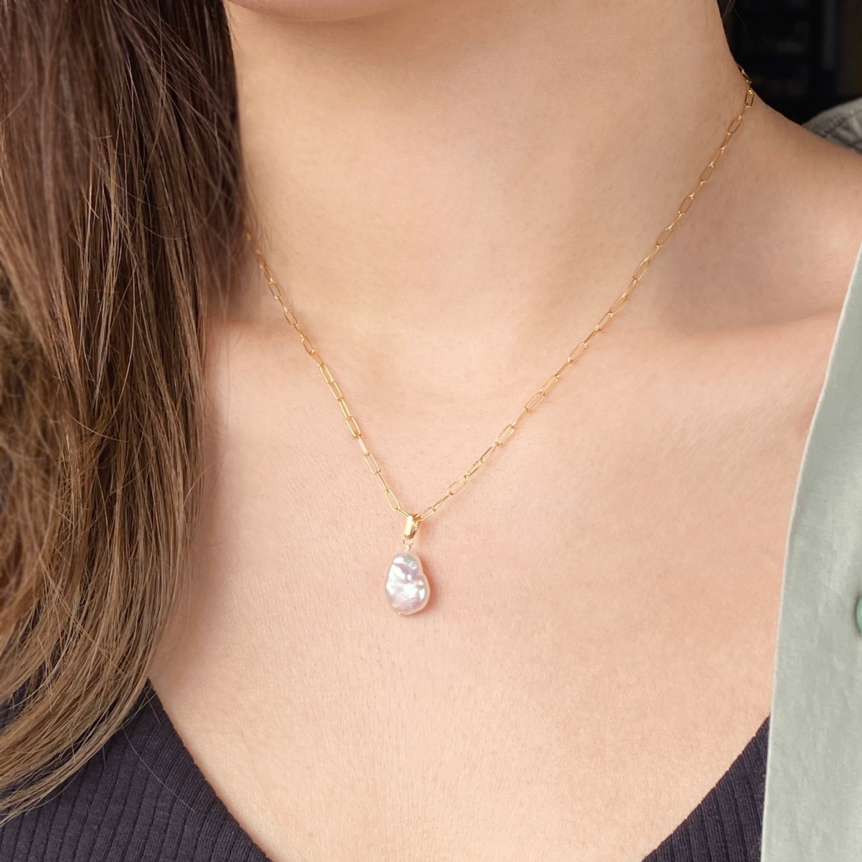 上品なサイズ感の長目小豆チェーンとの組み合わせで、綺麗めにもカジュアルにも合う万能パールネックレス♡