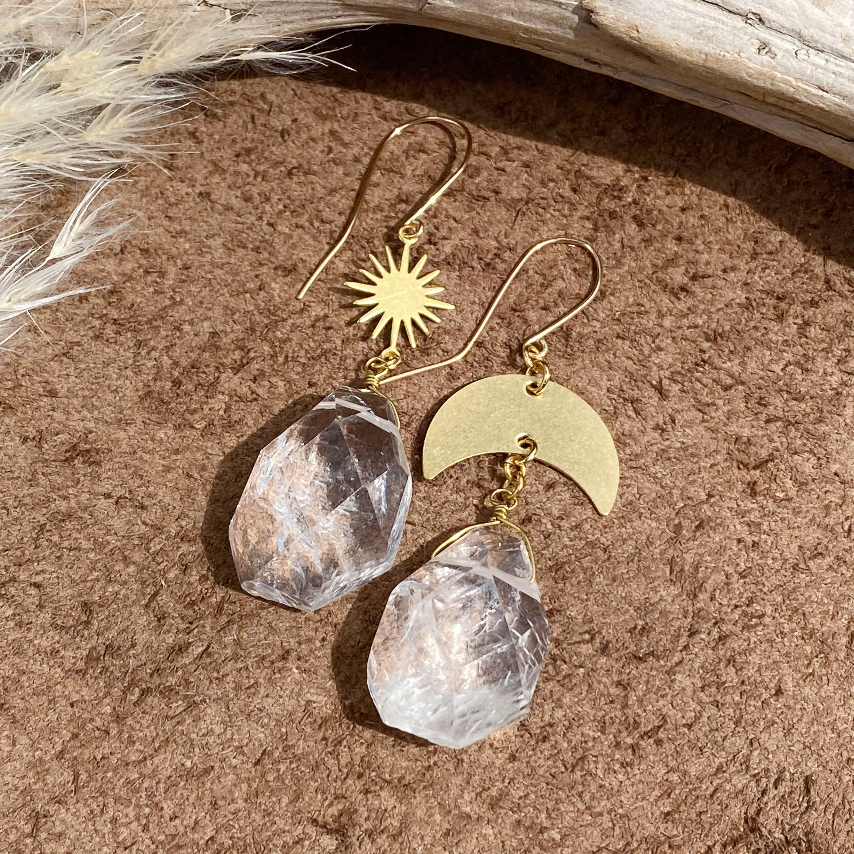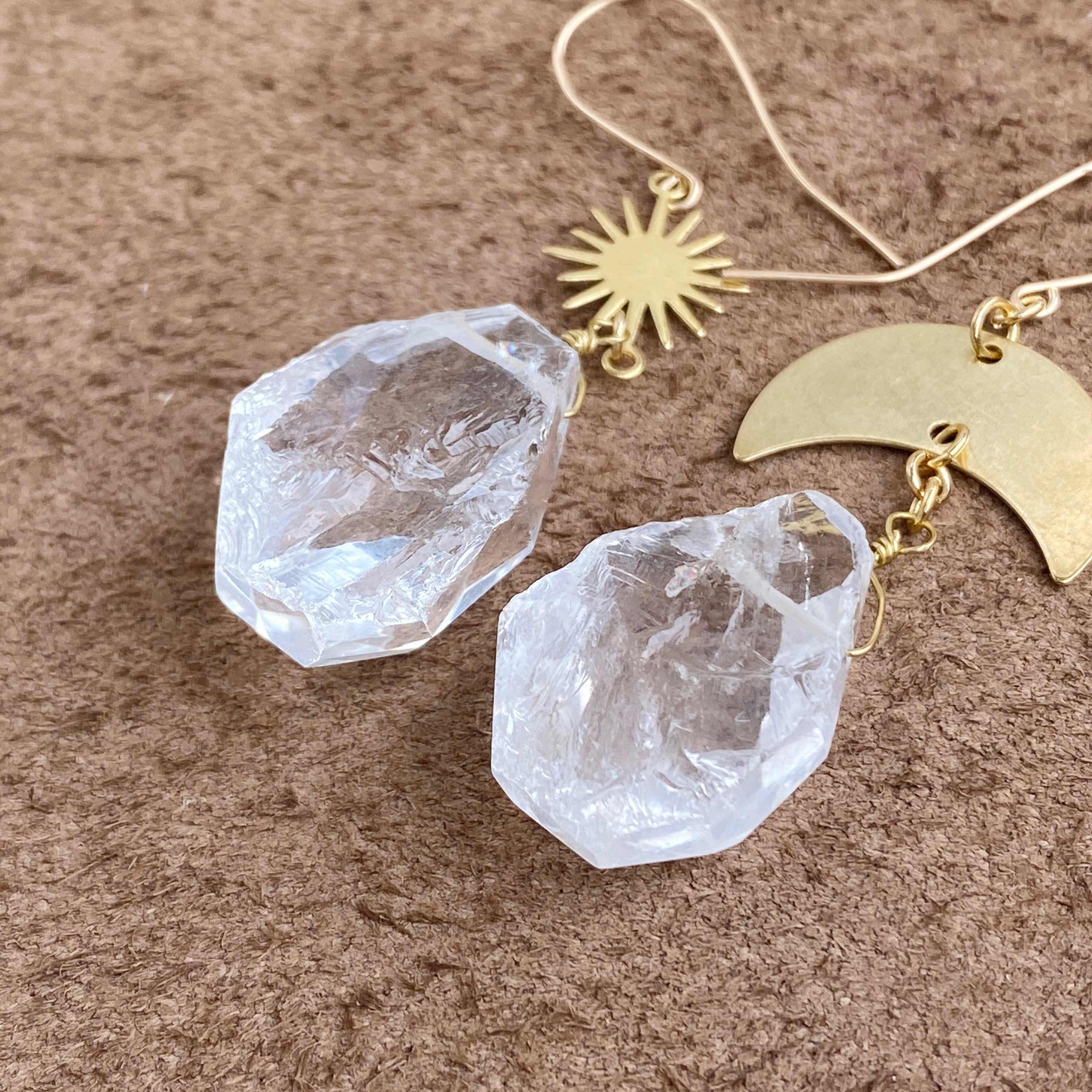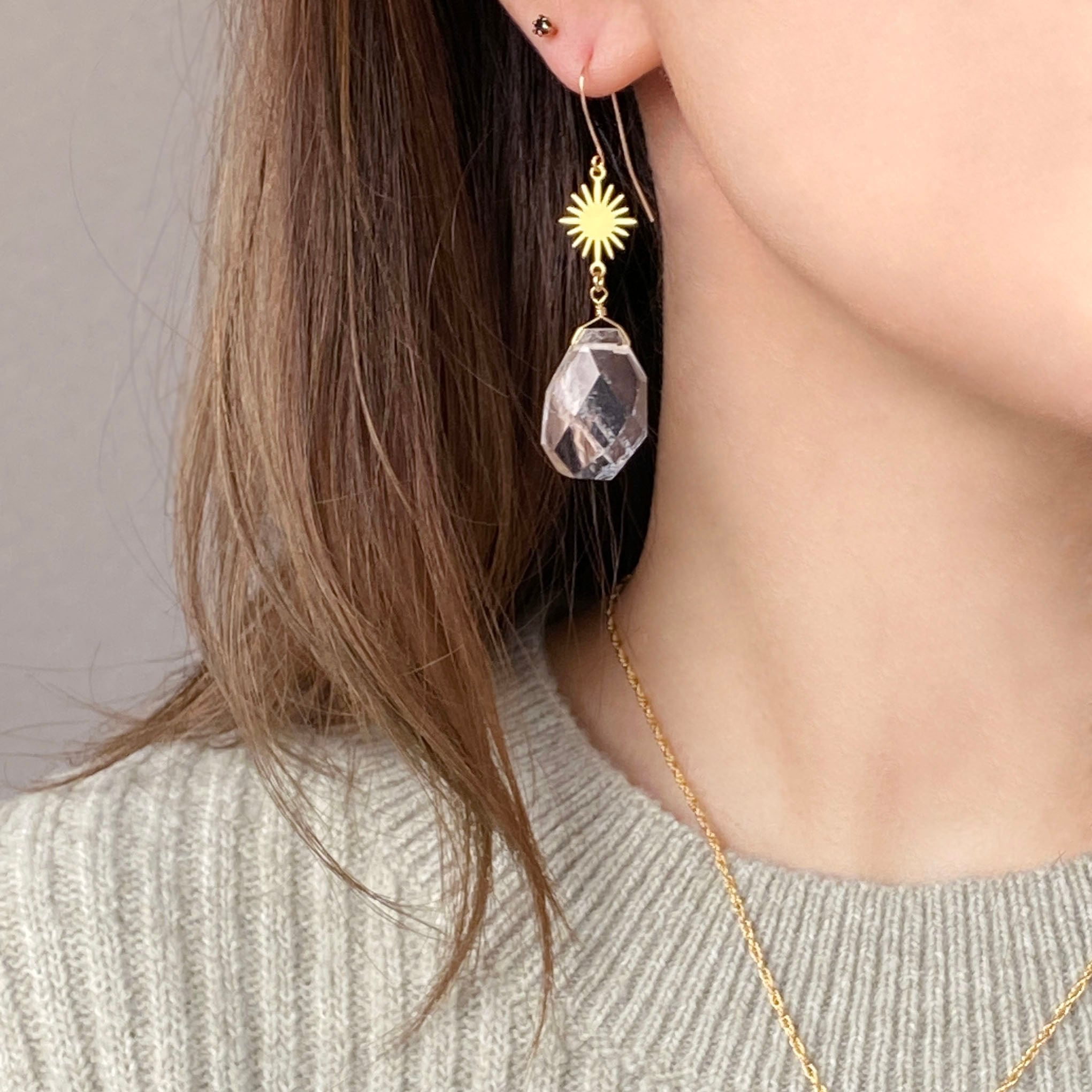 14kgf sun & moon 大粒クリスタル ピアス