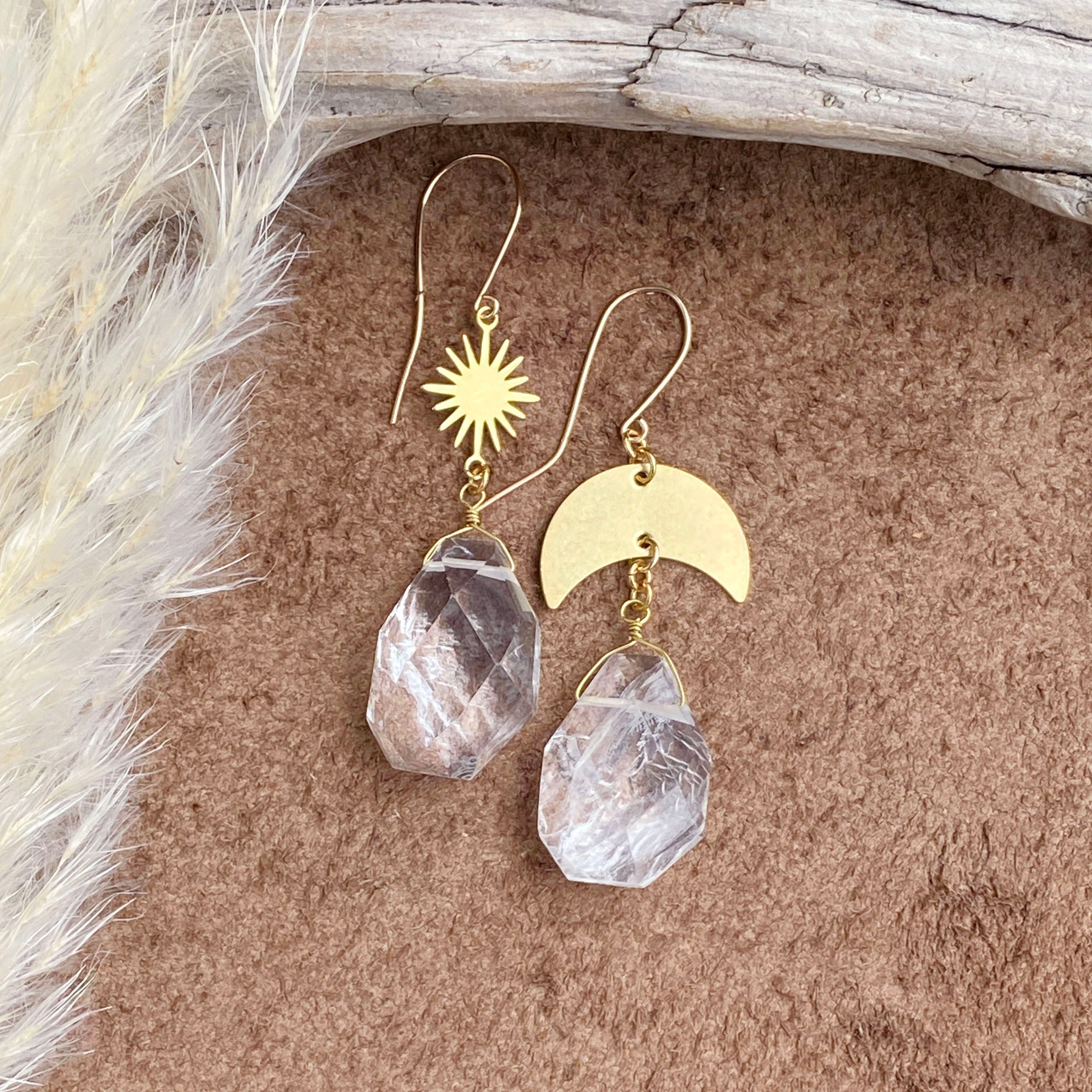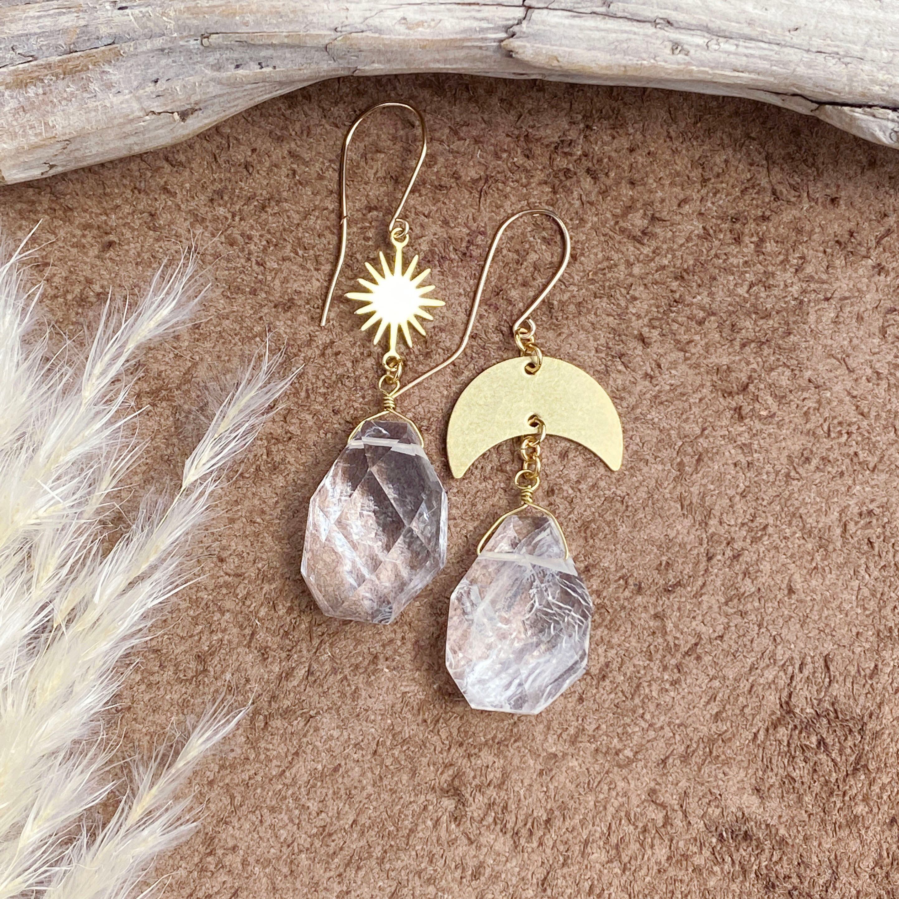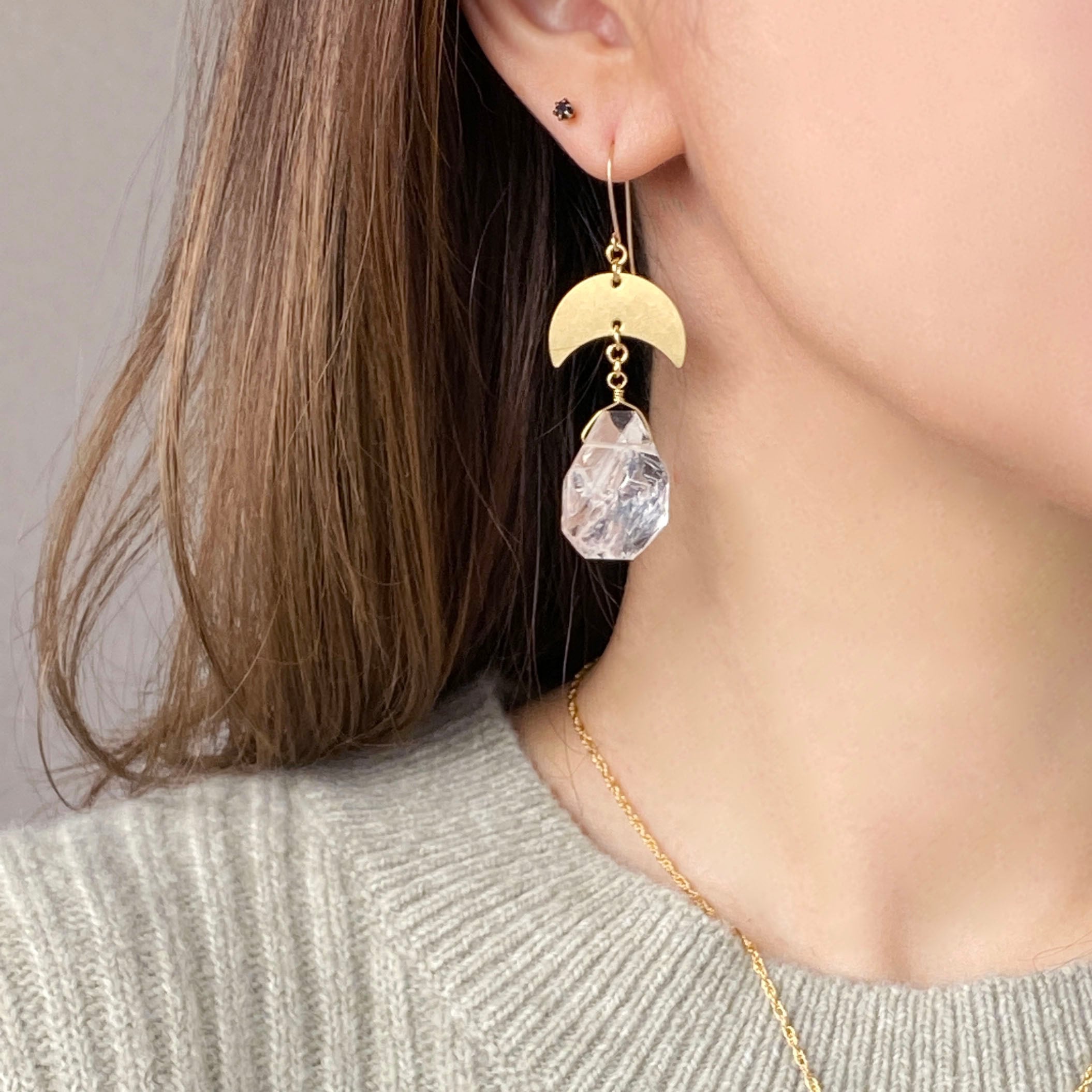 14kgf sun & moon 大粒クリスタル ピアス