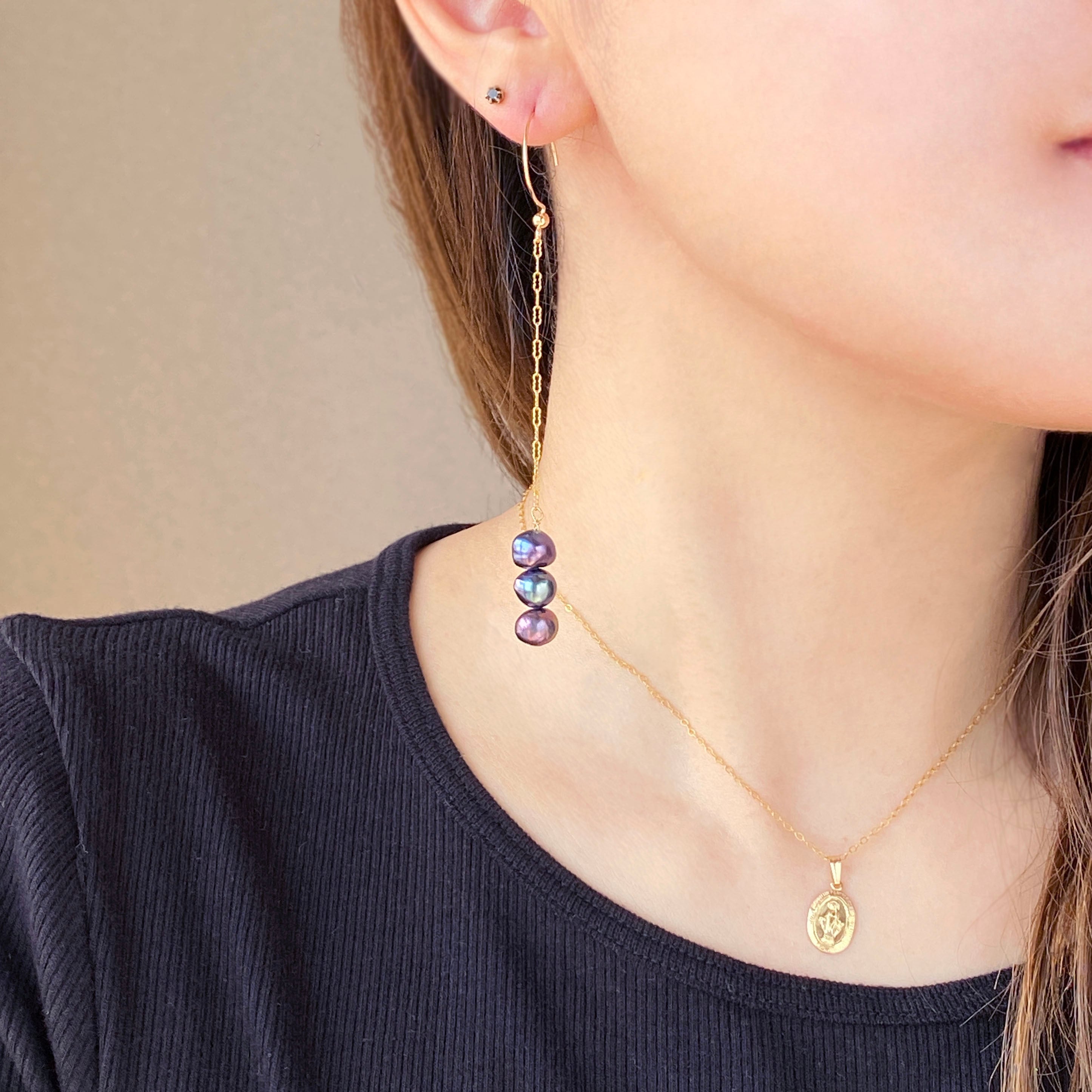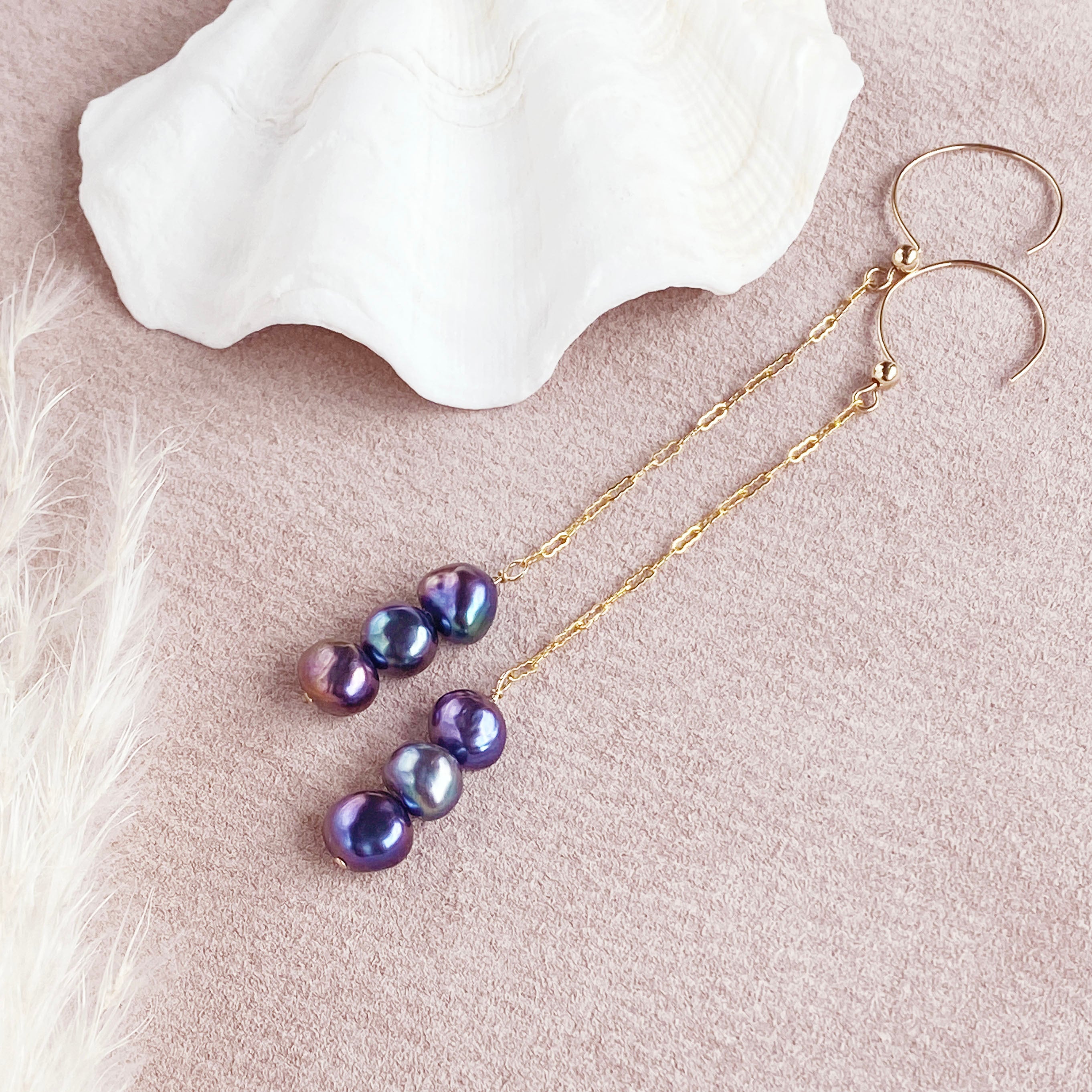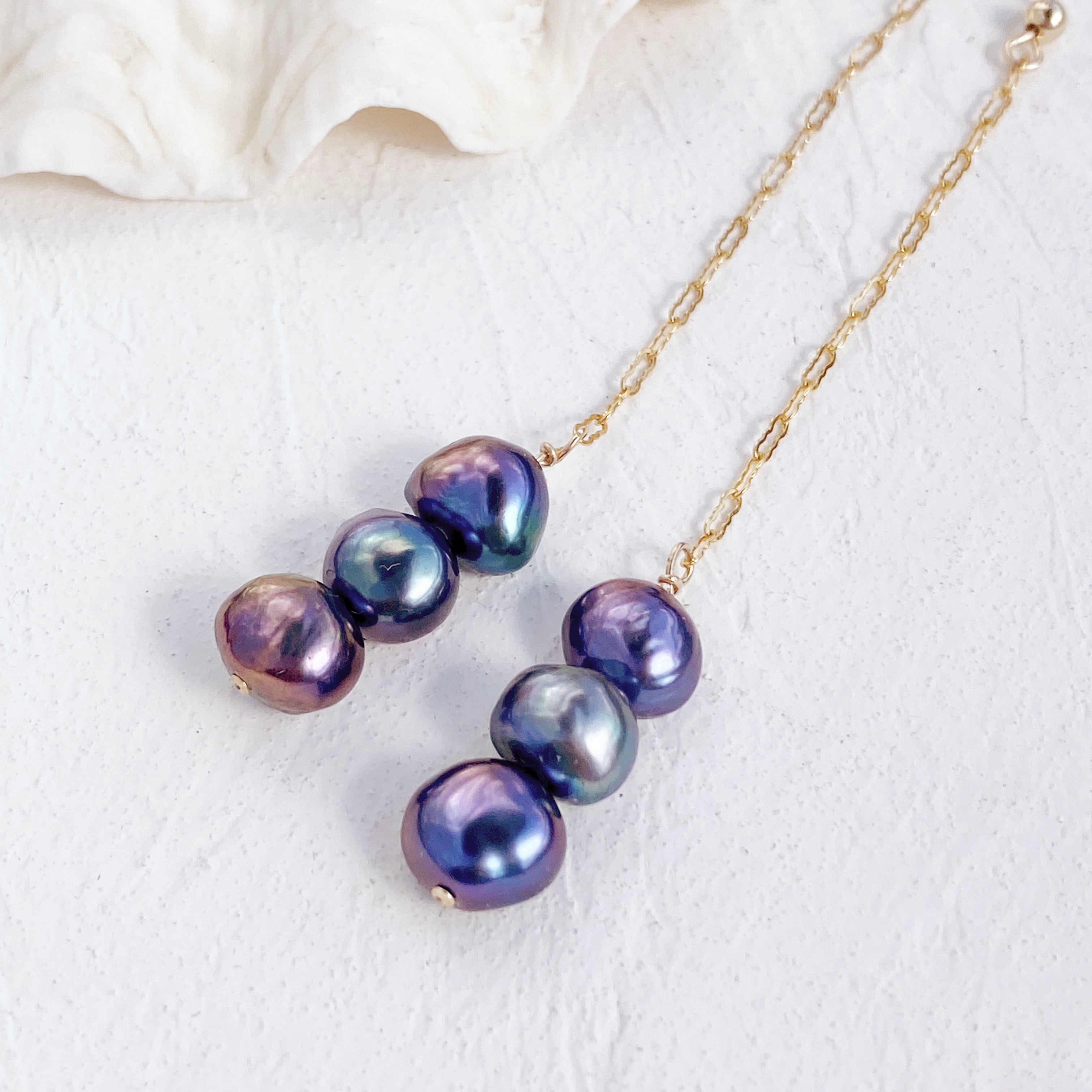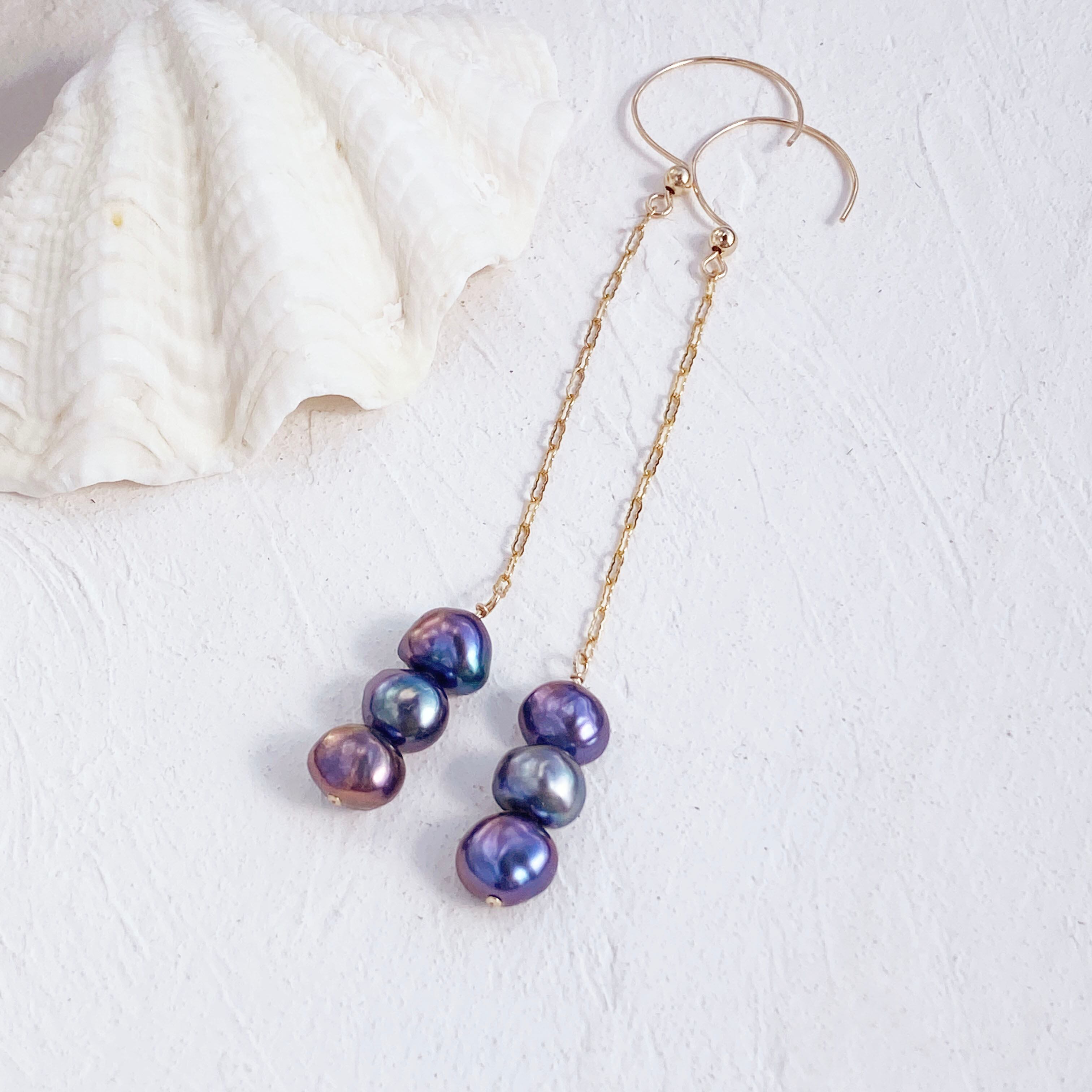 14kgf パープルネイビー 淡水パール ピアス / イヤリング