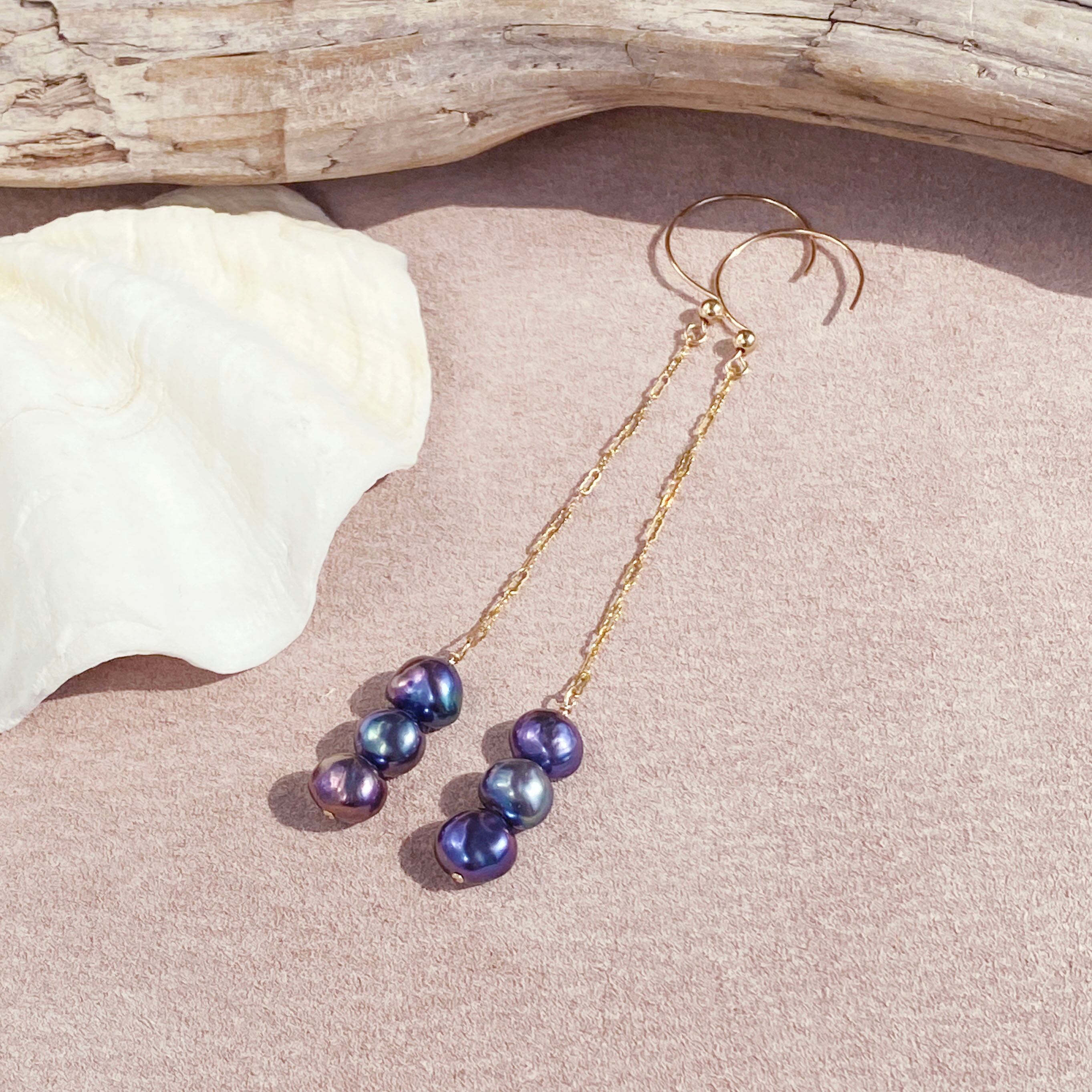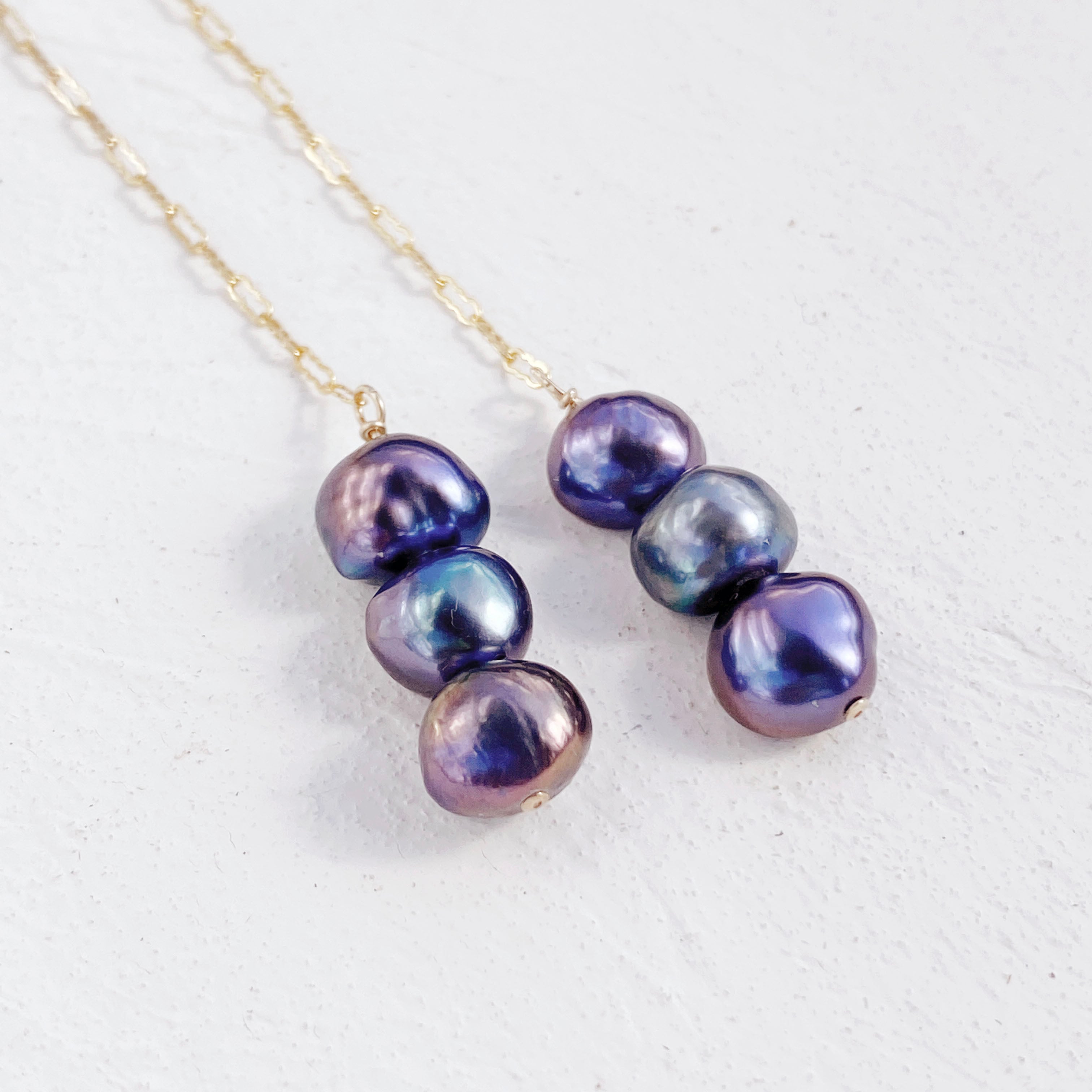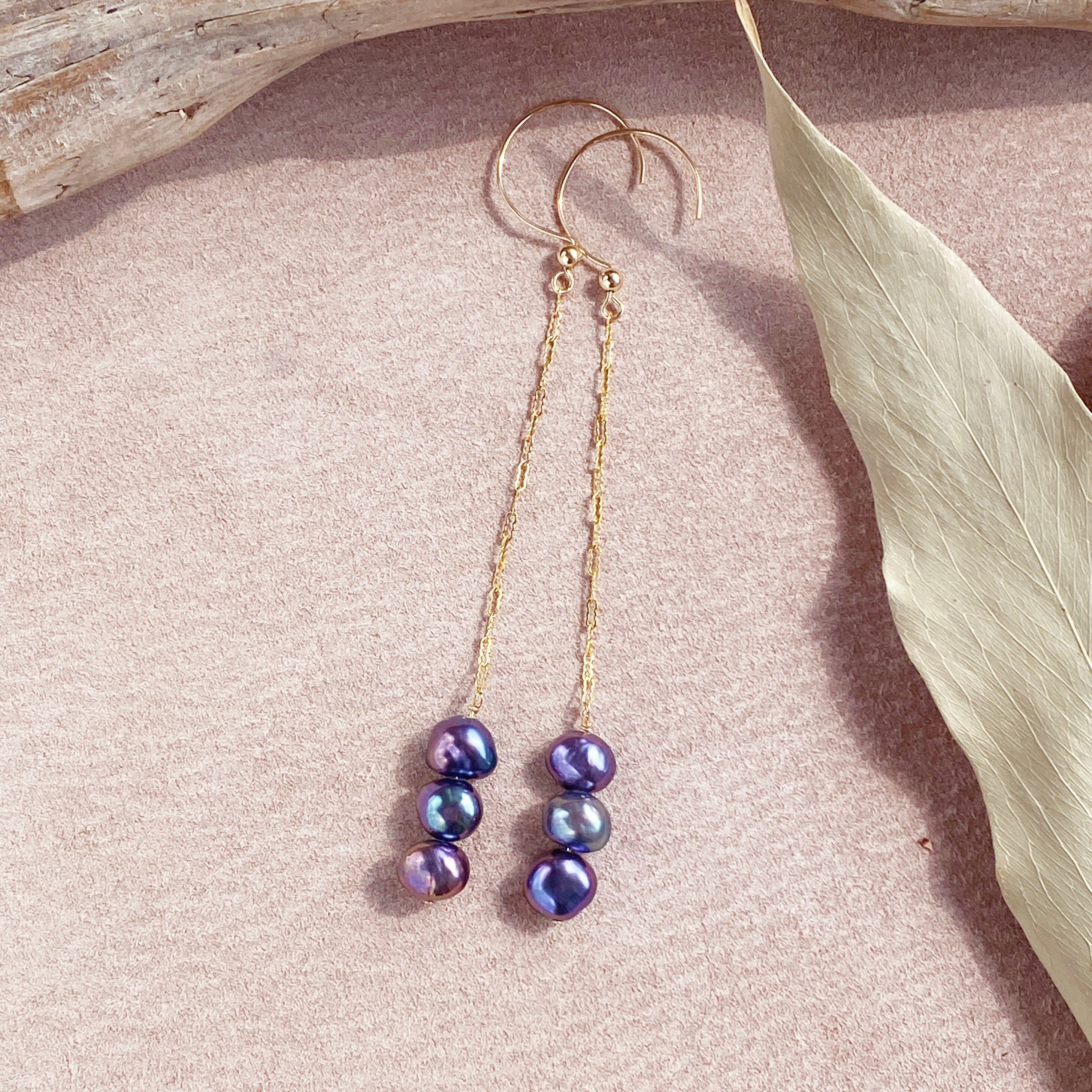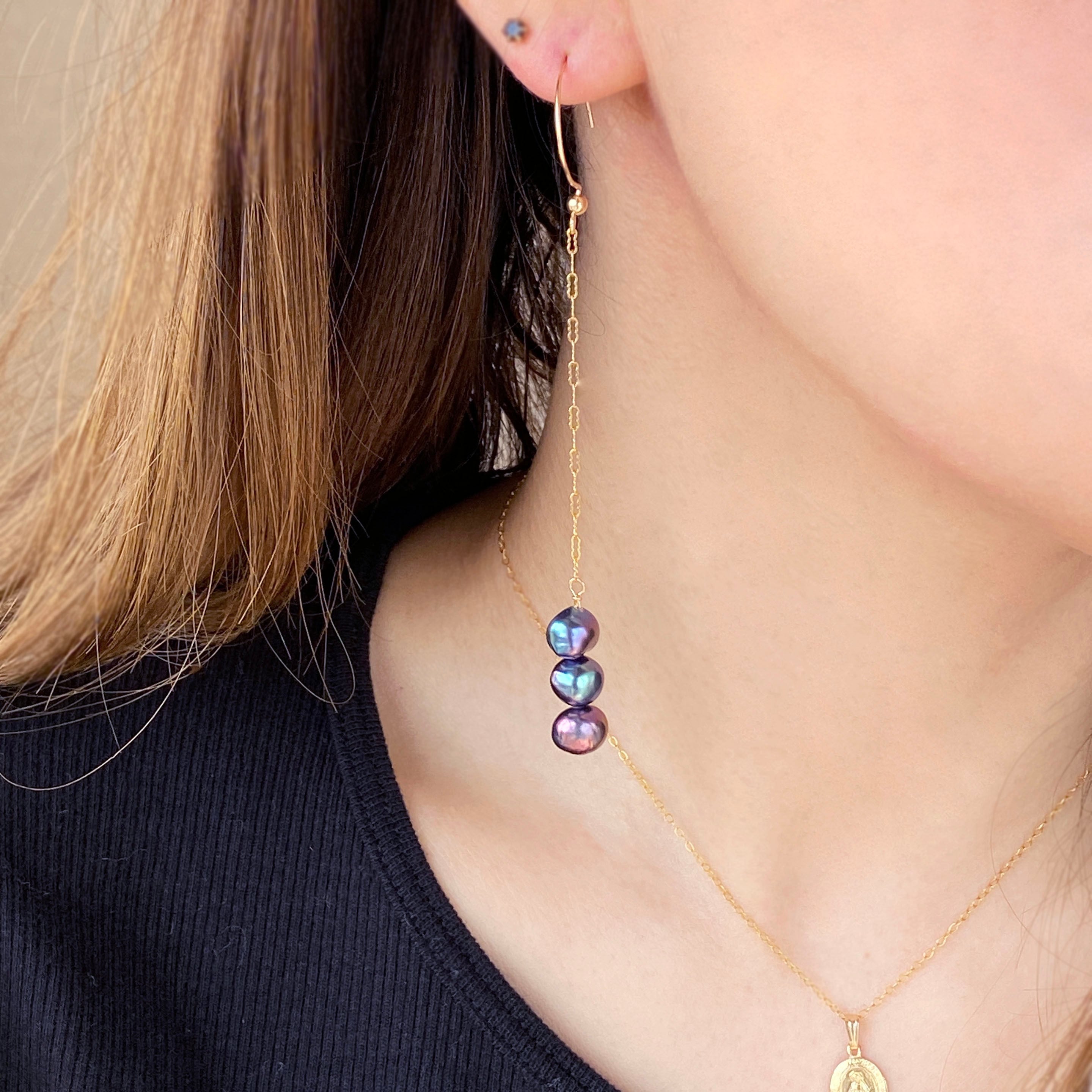 14kgf パープルネイビー 淡水パール ピアス / イヤリング