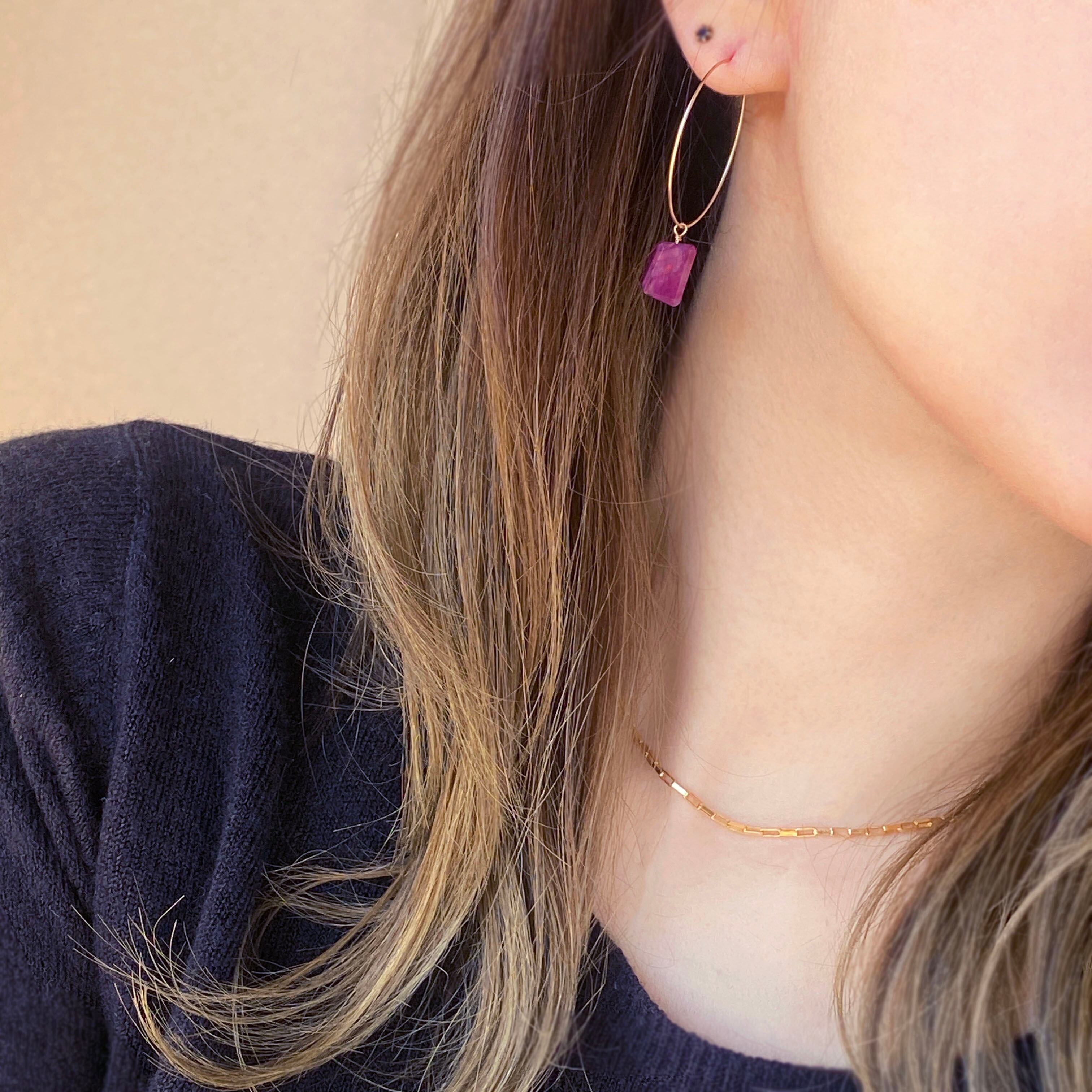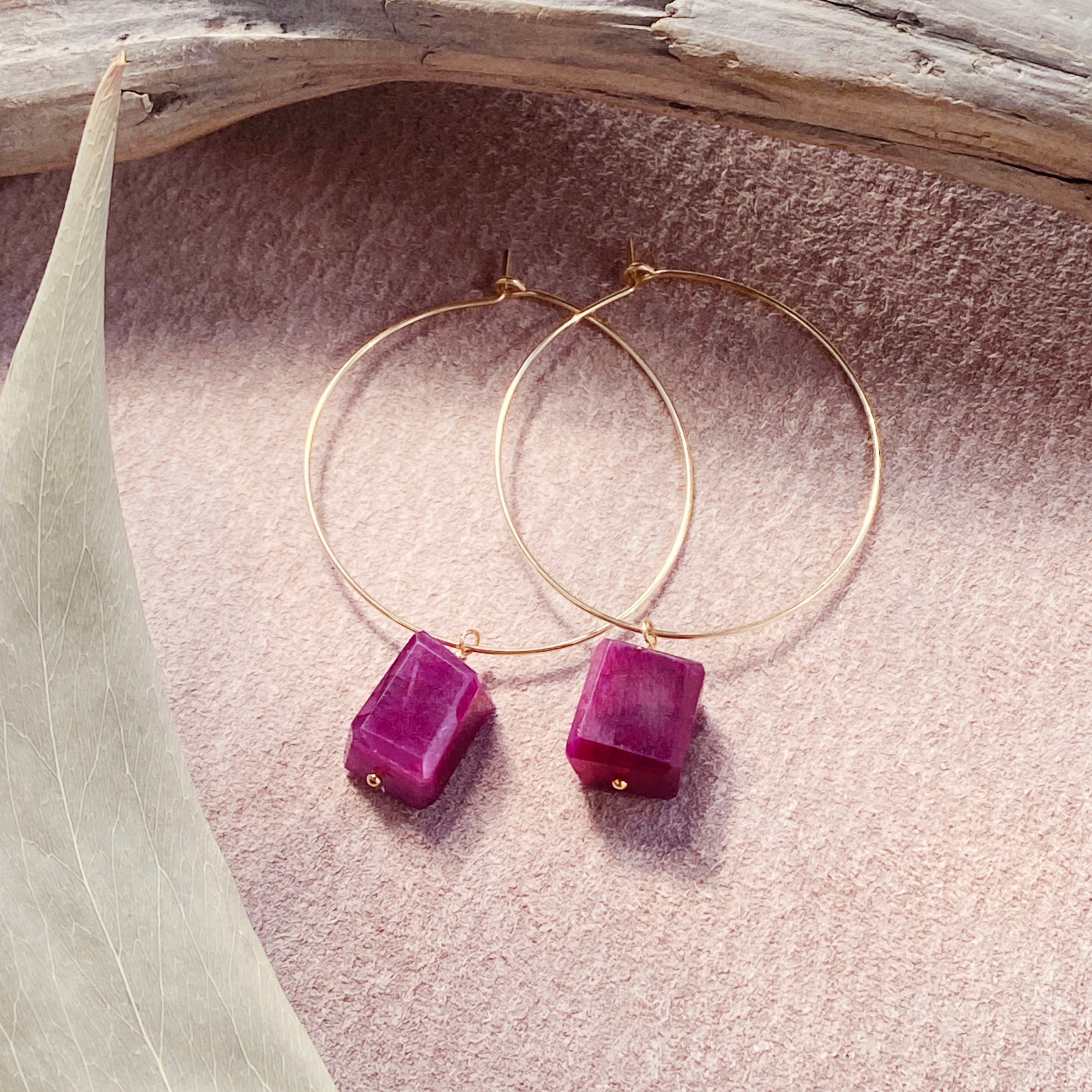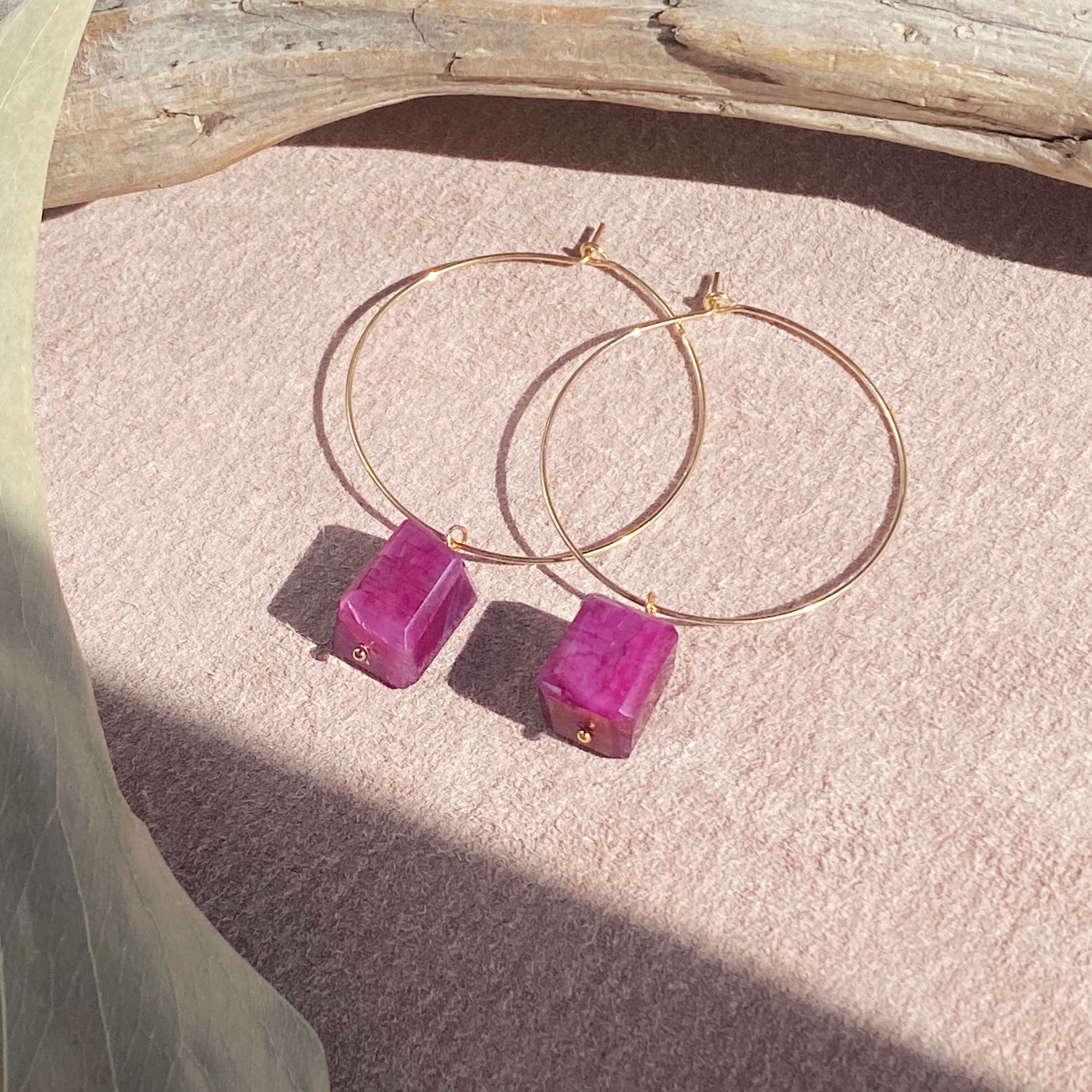 14kgf ワインレッド ムーンストーン フープピアス / イヤリング