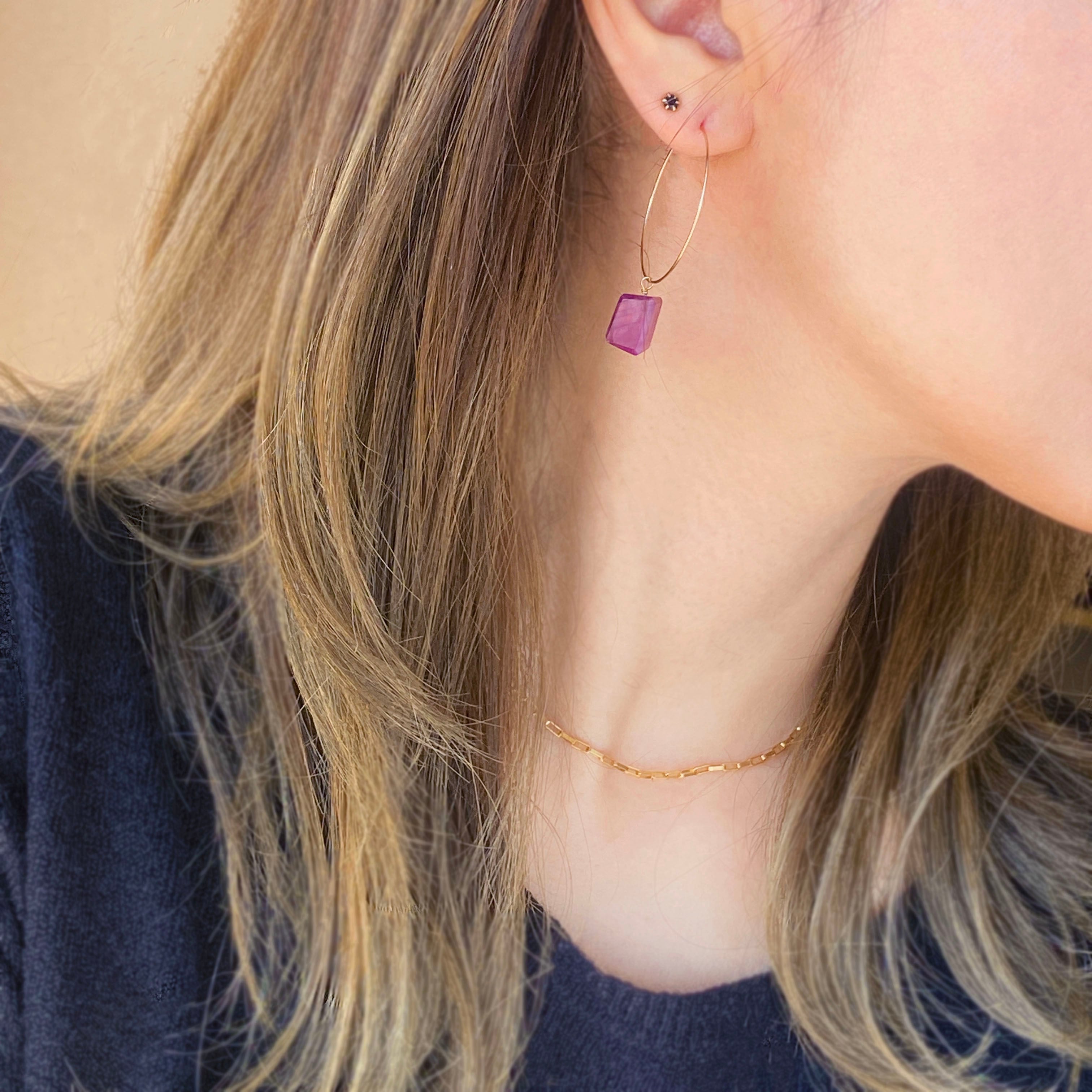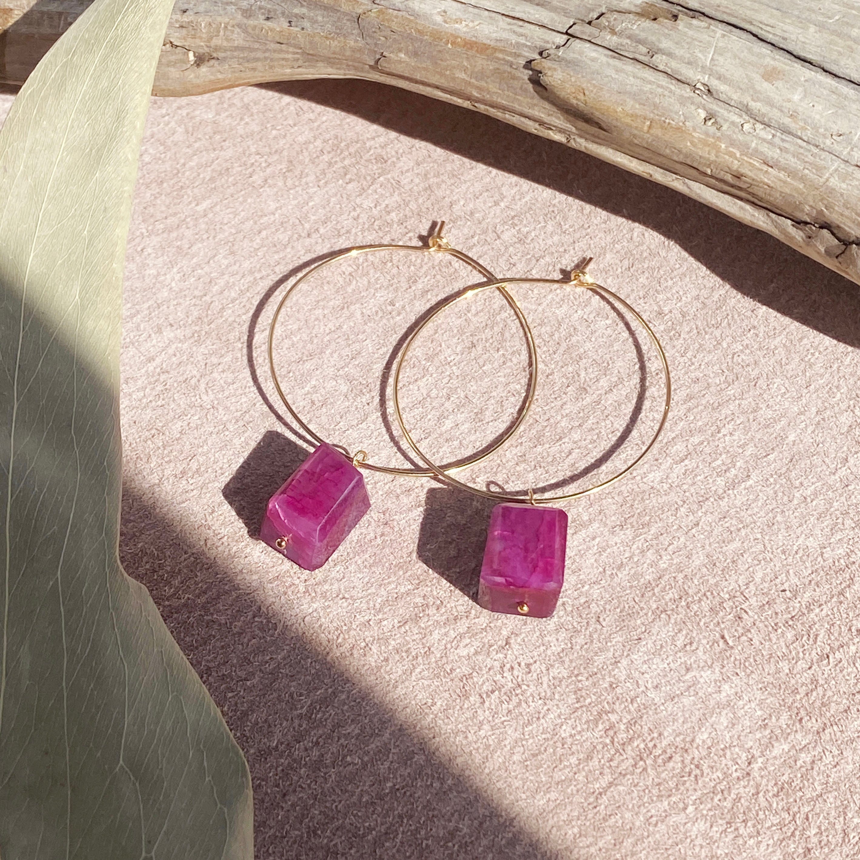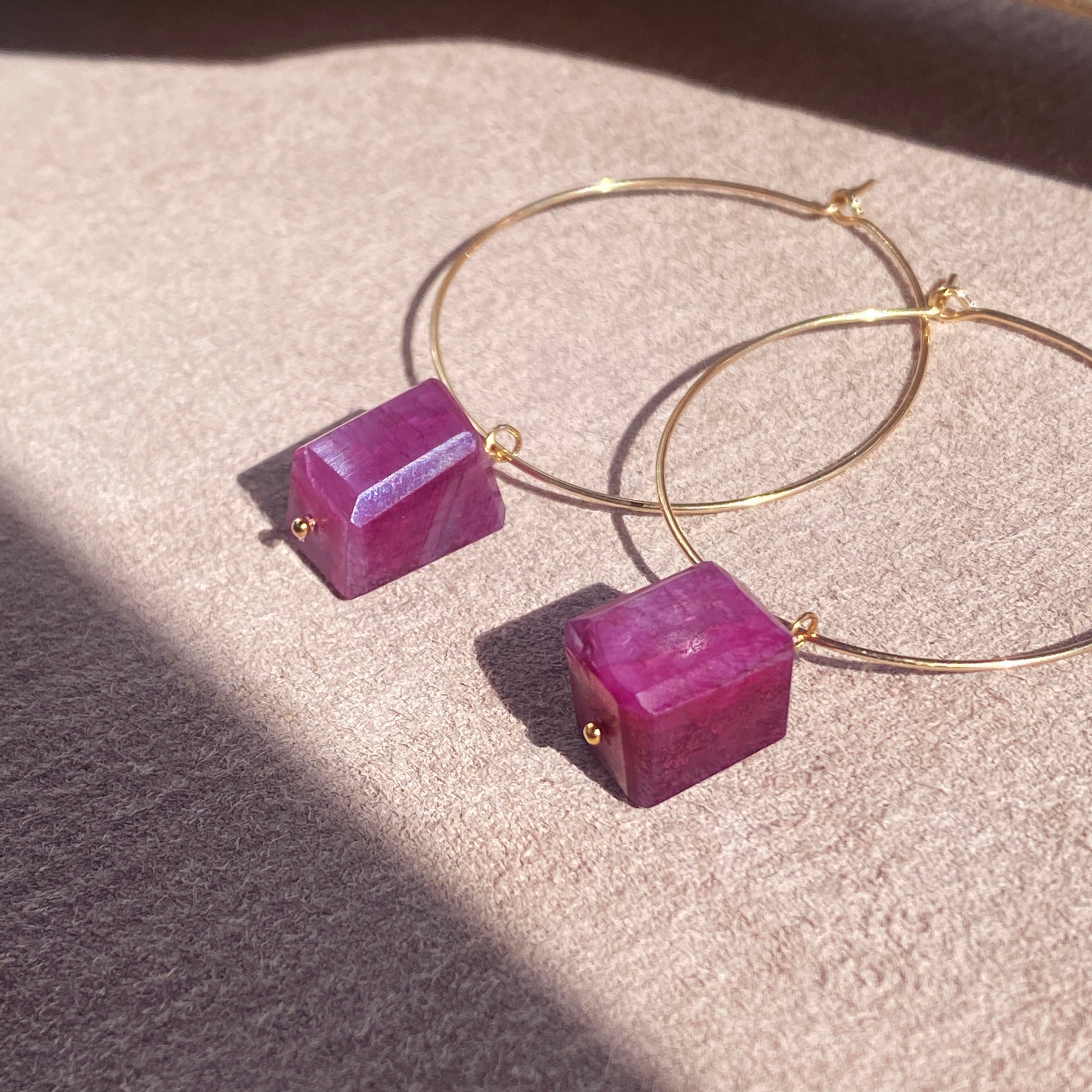 14kgf ワインレッド ムーンストーン フープピアス / イヤリング